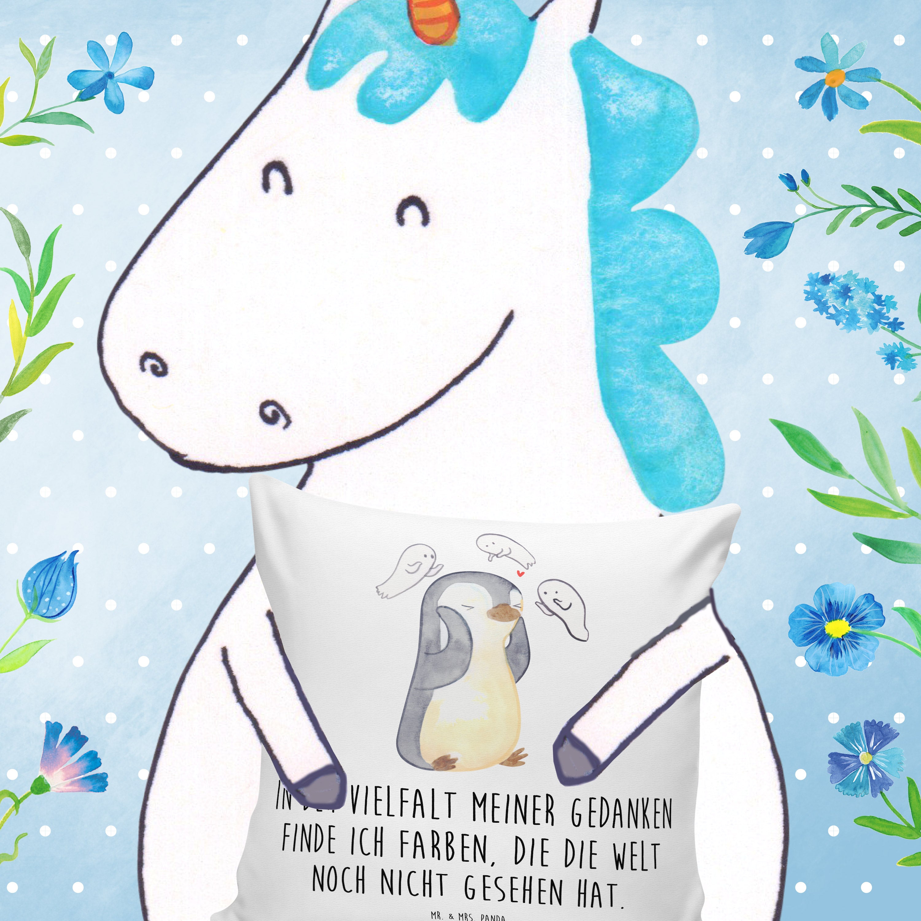 Verleihe deinem Wohnzimmer mit dem 40x40 Kissen von Mr. & Mrs. Panda einen Hauch von Persönlichkeit. Jedes Kissen ist ein Unikat, gefüllt mit der besten Mikrofaser-Füllung und verziert mit handverlesenen Motiven und Sprüchen. Ob als Kopfkissen, Sofakissen oder Dekokissen – es passt perfekt in jeden Raum. Mit den Maßen 400 mmx400 mm und einem pflegeleichten Reißverschluss ausgestattet, ist dieses Kissen das Must-Have für jedes Zuhause. Pflegehinweis: Waschen bei 30° C.