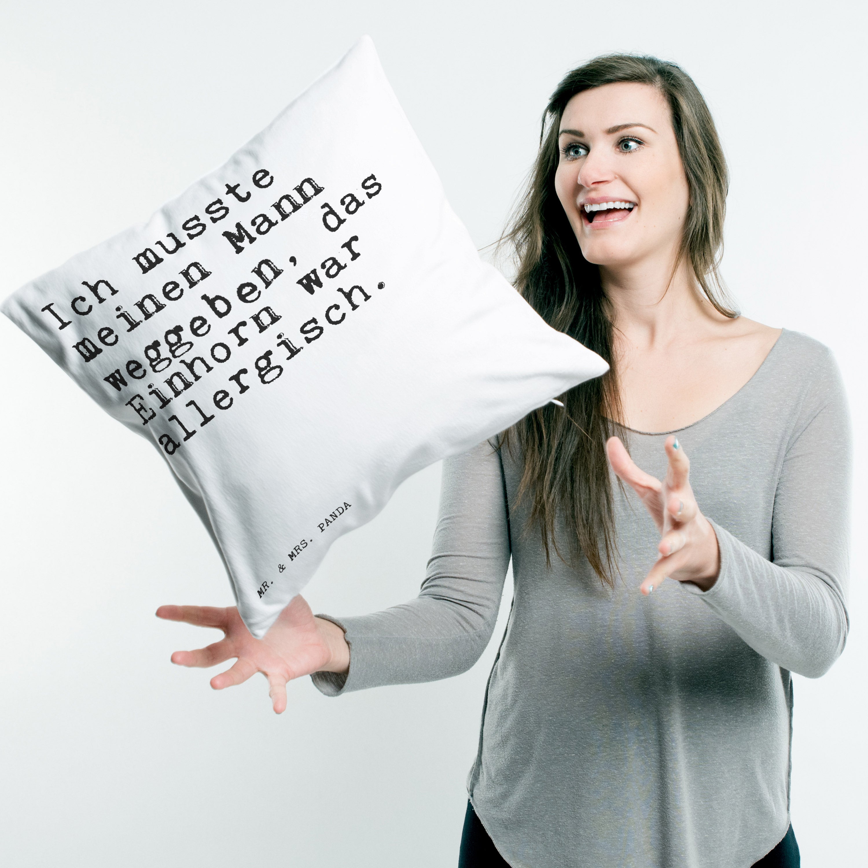 40x40 Kissen Sprüche und Zitate Ich musste meinen Mann weggeben, das Einhorn war allergisch.