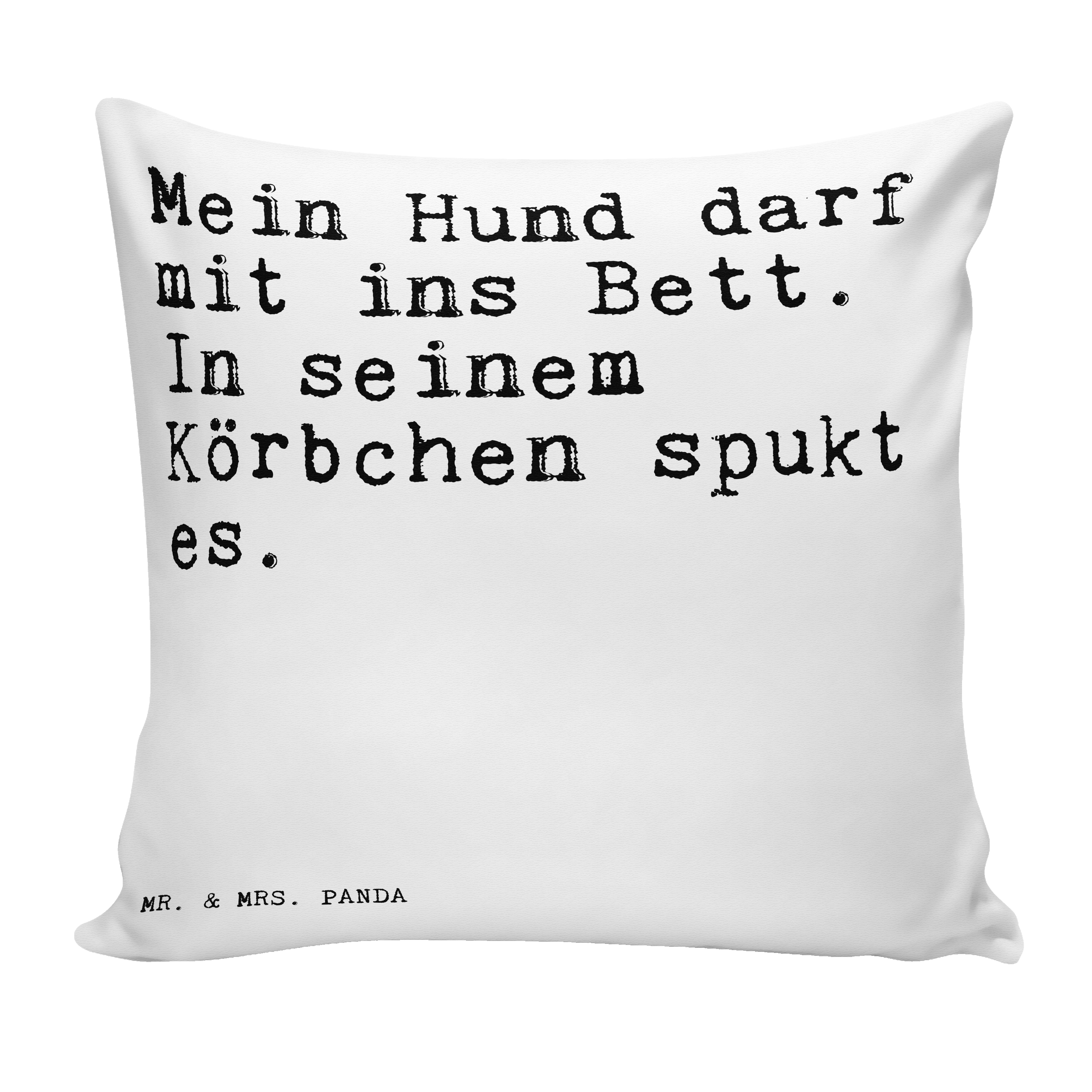 40x40 Kissen Sprüche und Zitate Mein Hund darf mit ins Bett. In seinem Körbchen spukt es.
