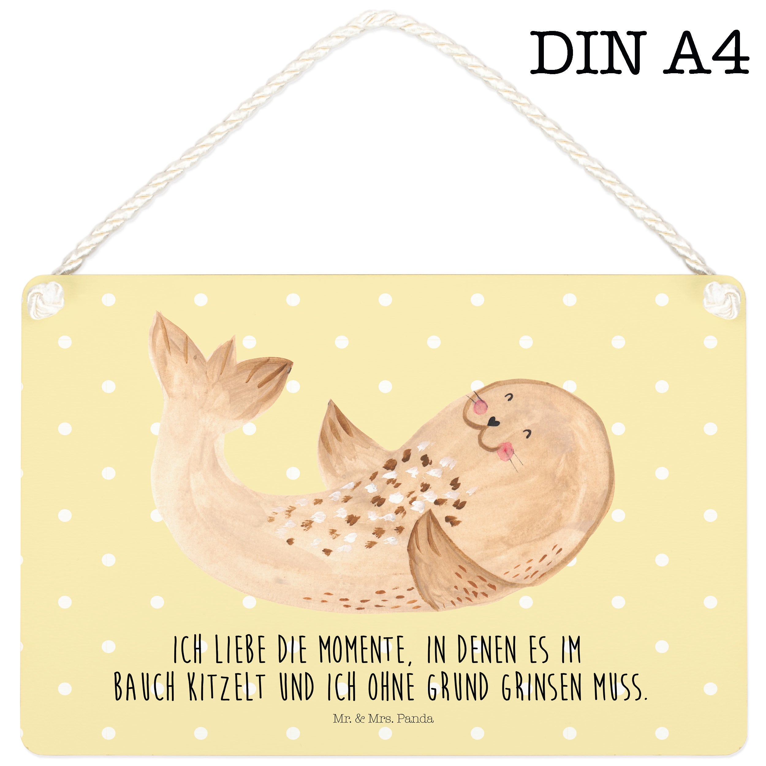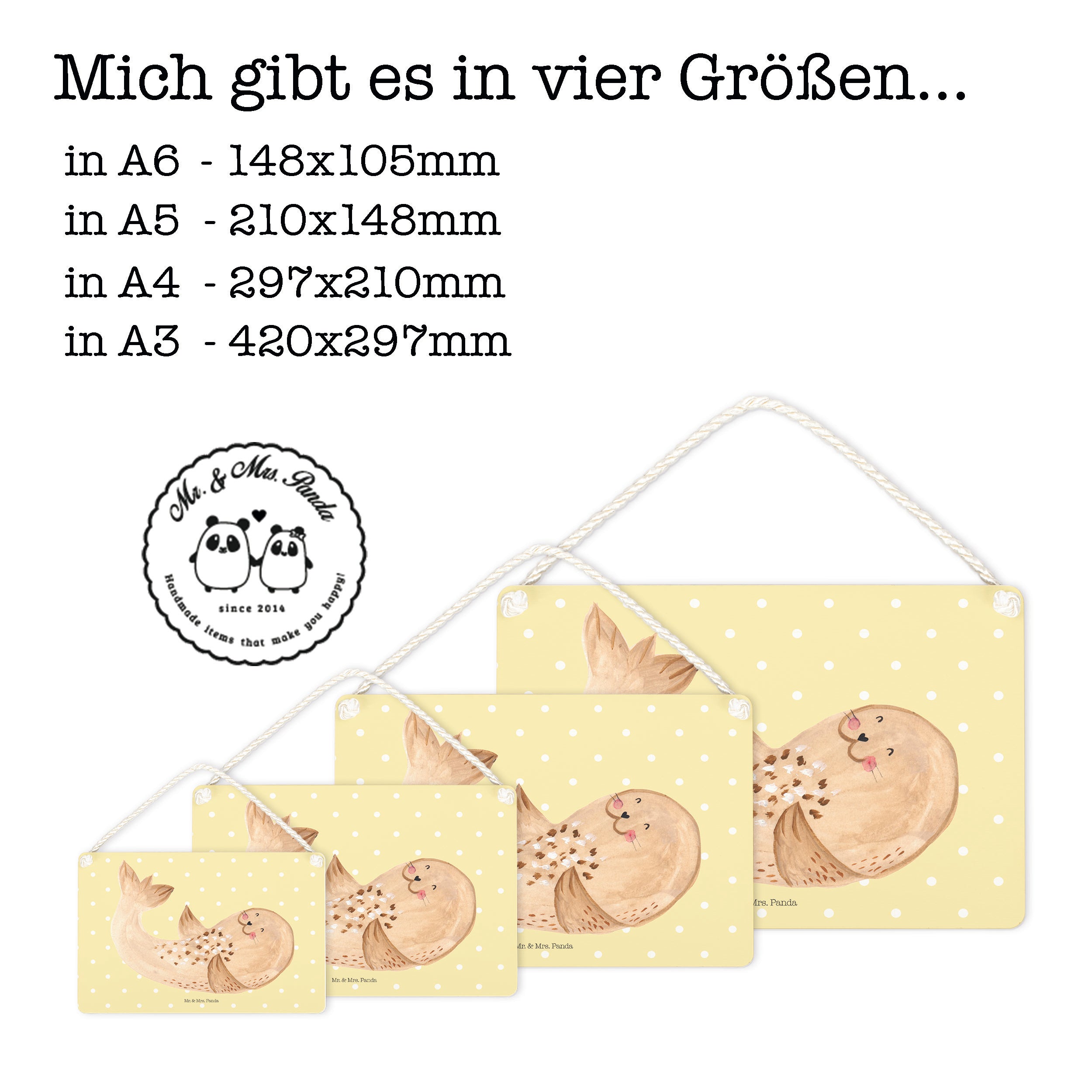 Verzaubere Dein Heim mit einem Stück Individualität, durch das Deko Schild von Mr. & Mrs. Panda. Das Schild, in den Maßen 297 mm x 210 mm, ist nicht nur eine Bereicherung für jede Wand oder Tür, sondern auch eine Botschaft des Herzens. Aus beständiger, beschichteter Holzfaser hergestellt, widersteht es dem Zahn der Zeit und behält den Glanz seiner Botschaft bei jedem Licht. Die Vielseitigkeit des Schildes eröffnet unendliche Möglichkeiten zur Gestaltung, ob als herzliches Willkommen an der Tür oder als inspirierende Wanddeko im Wohnzimmer. Einfach zu befestigen mit der mitgelieferten, kunstvoll gedrehten Kordel, verbindet es Funktionalität mit Schönheit auf eine Weise, die nur Mr. & Mrs. Panda bieten kann.