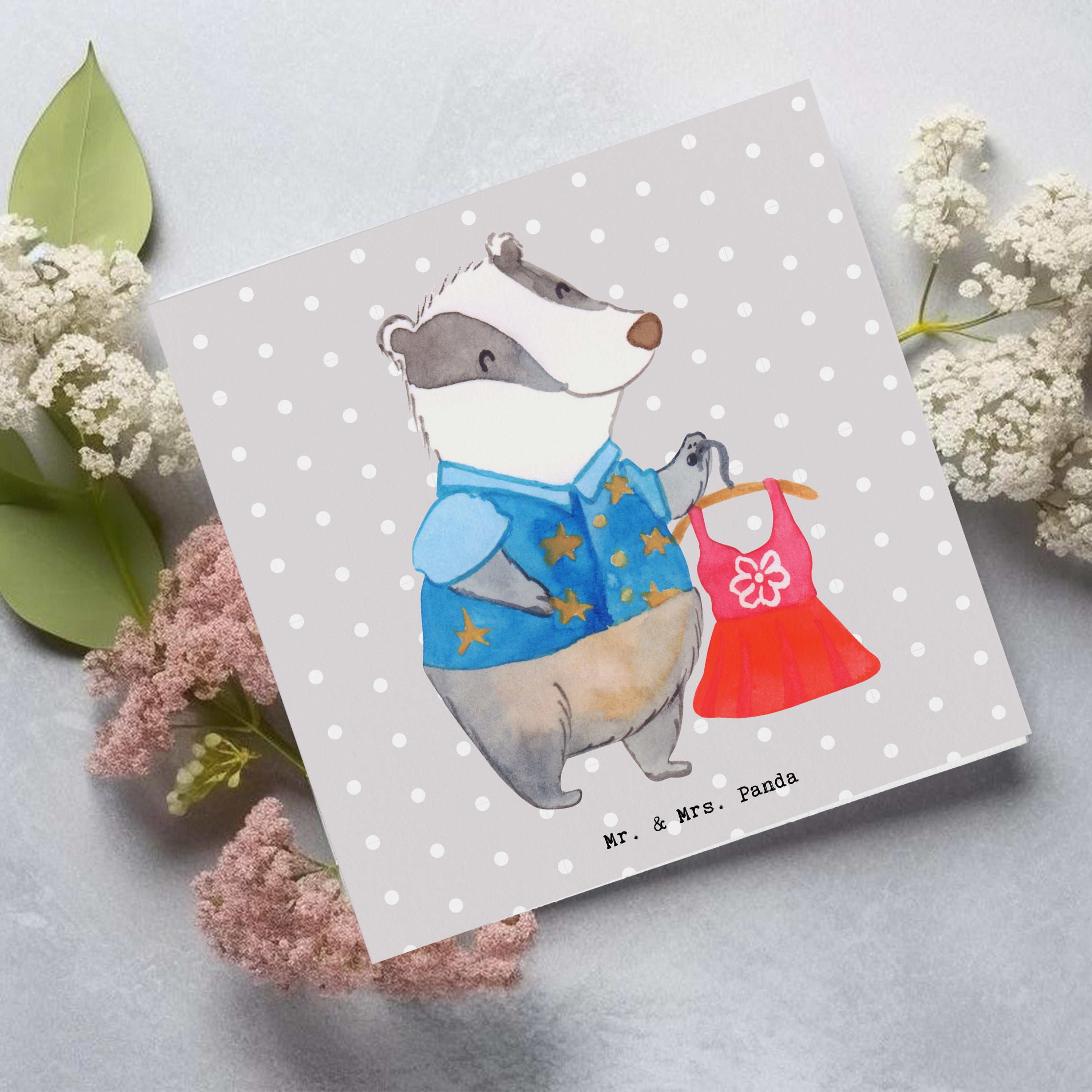 Entdecke die zauberhafte Welt der Gefühle mit der hochwertigen Klappkarte von Mr. & Mrs. Panda. Jede Karte wird in Deutschland auf hochwertigem, 140 mm x 140 mm Karton gedruckt und verzaubert mit liebevoll gestalteten Sprüchen und Motiven. Ganz gleich, ob als Geburtstagskarte, Glückwunschkarte oder einfach so: unsere Karten berühren Herzen und hinterlassen Eindruck. Mit einer hochglänzenden Vorder- und Rückseite sowie einer matten Innenseite, die sich perfekt für persönliche Worte eignet, ist jede Karte ein kleines Kunstwerk.
