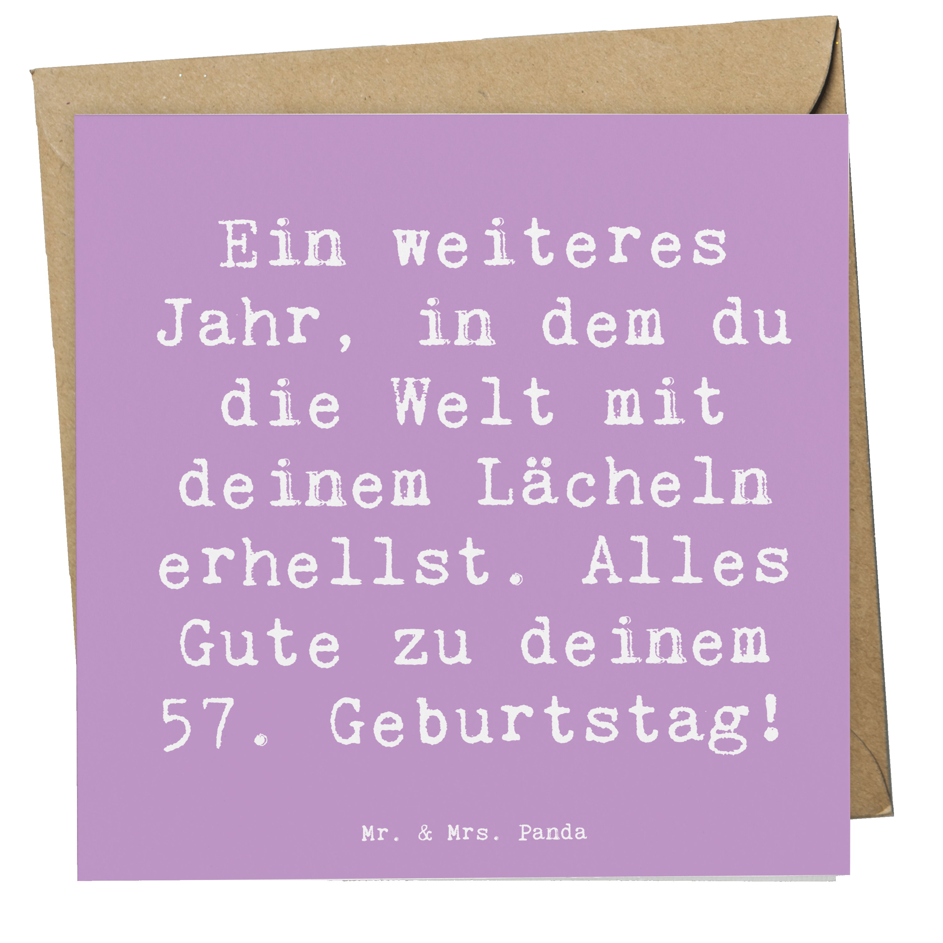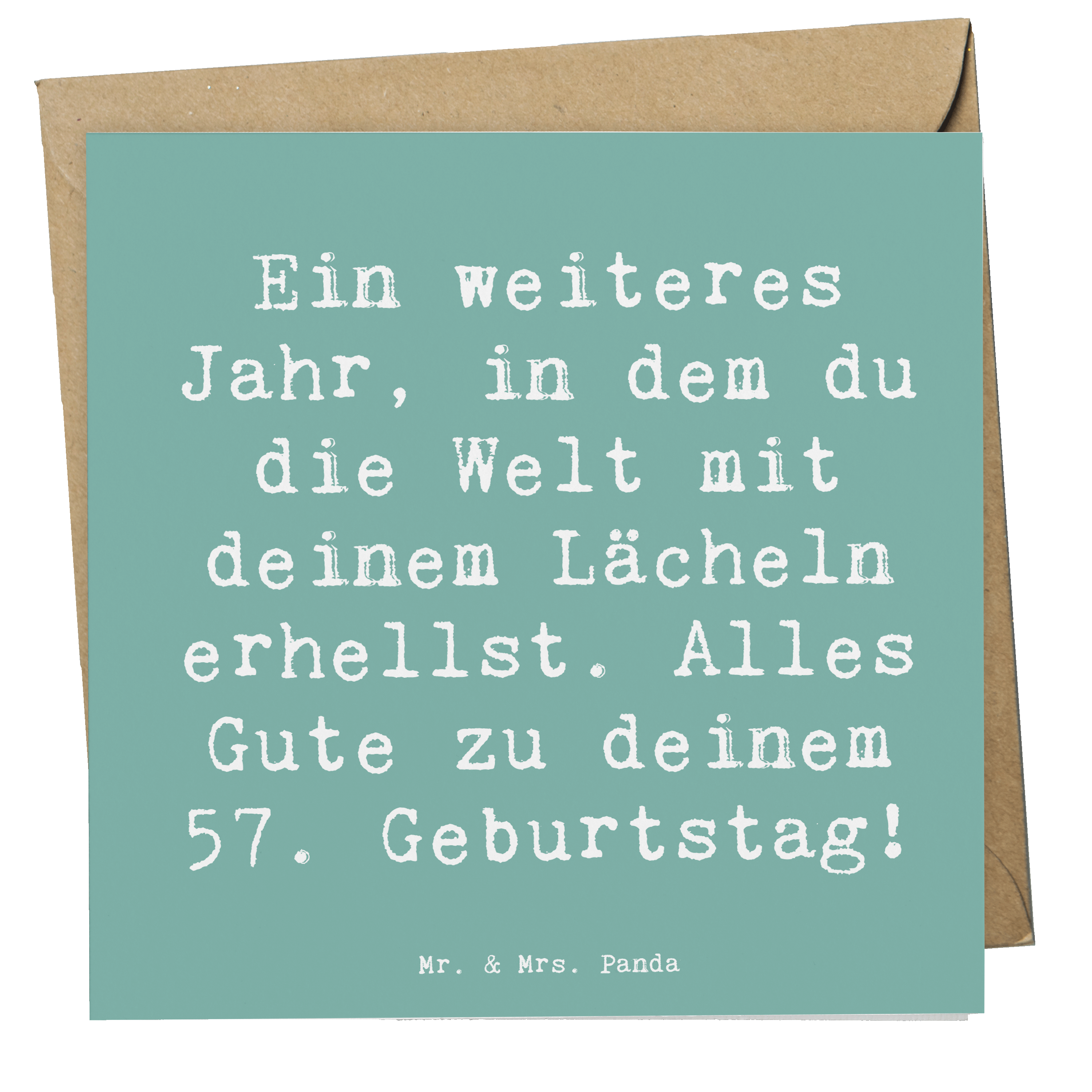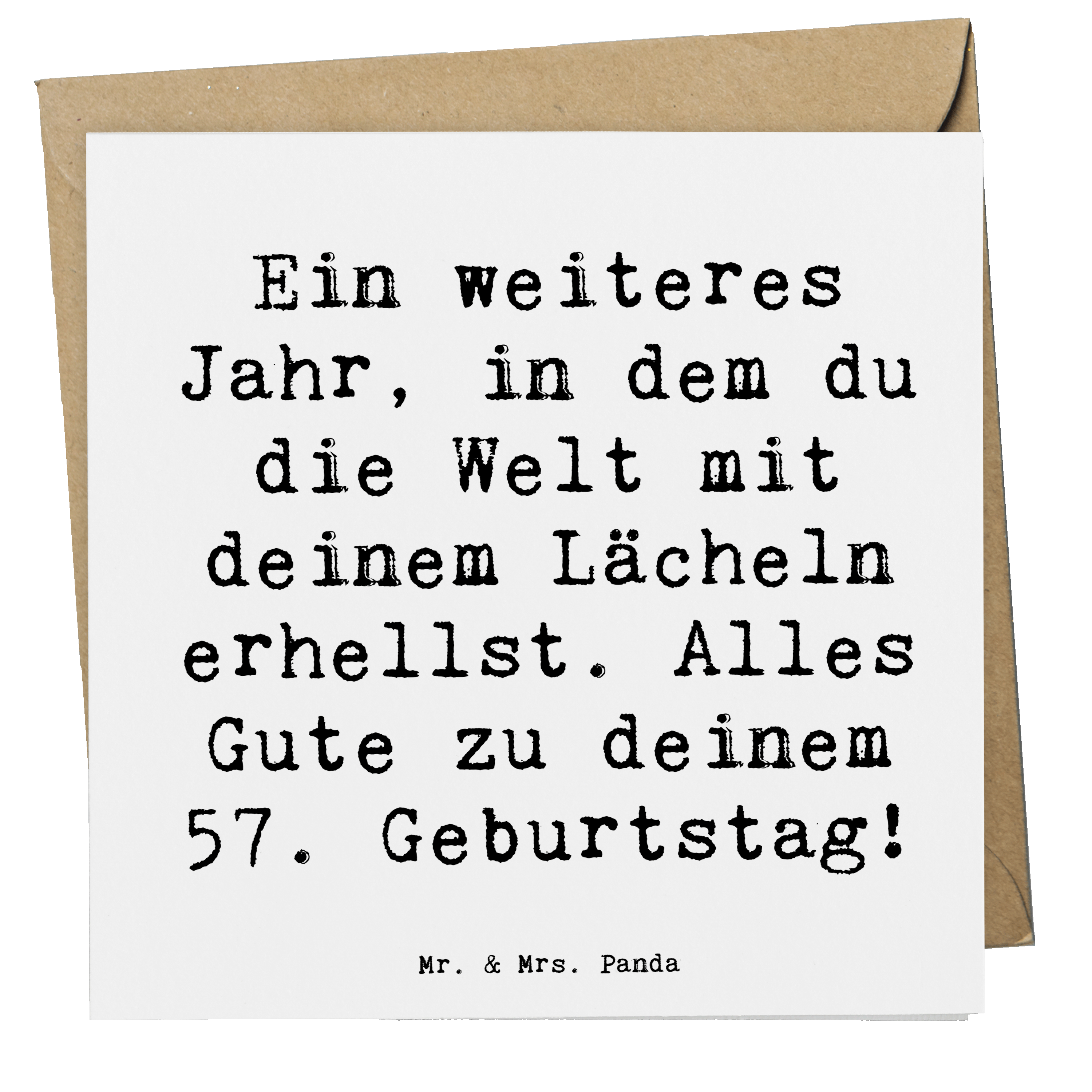 Unsere Panda-Fans suchen auch nach: 57. Geburtstag, alles Gute, die Welt erhellen, Lächeln, herzliche Botschaft, Jubiläum, Lebensgeschichte, Erfahrungen, Wertschätzung, liebevoller Geburtstagsspruch