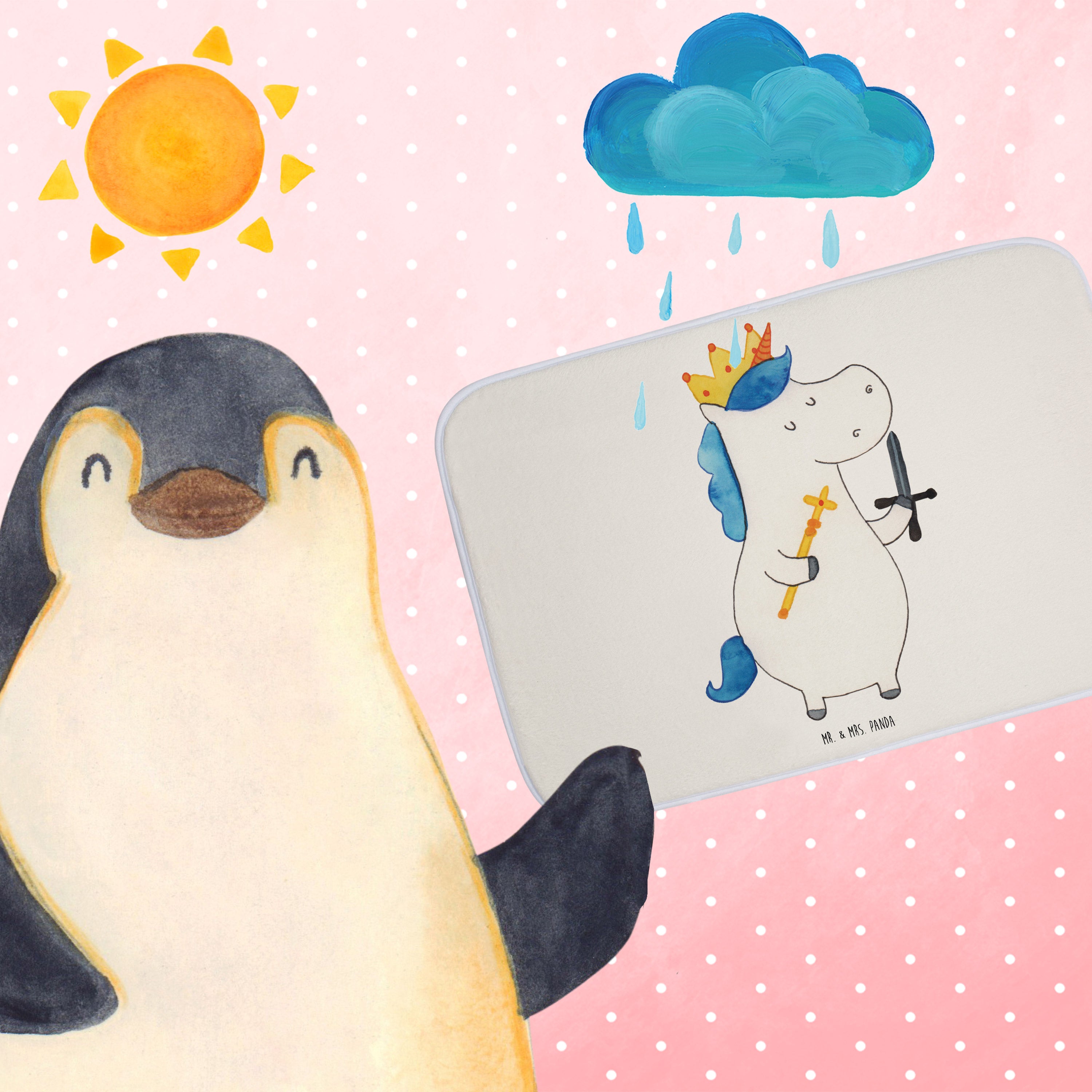 Mach dein Badezimmer zur Wohlfühloase mit der Badezimmermatte von Mr. & Mrs. Panda. 590 mm x 400 mm groß, bietet sie genug Fläche, um nasse Füße sicher und komfortabel abzutrocknen. Jedes Stück ist mit viel Liebe zum Detail gefertigt und verfügt über spritzige Designs, die sofort Stimmung in dein Bad bringen. Die Premium Kunstfaser ist nicht nur besonders flauschig, sondern mit den Anti-Rutsch Gumminoppen auch hochgradig sicher. Leicht zu reinigen bei 30°C, ist dieser Duschvorleger zusätzlich ein Paradebeispiel an Bequemlichkeit und Style.