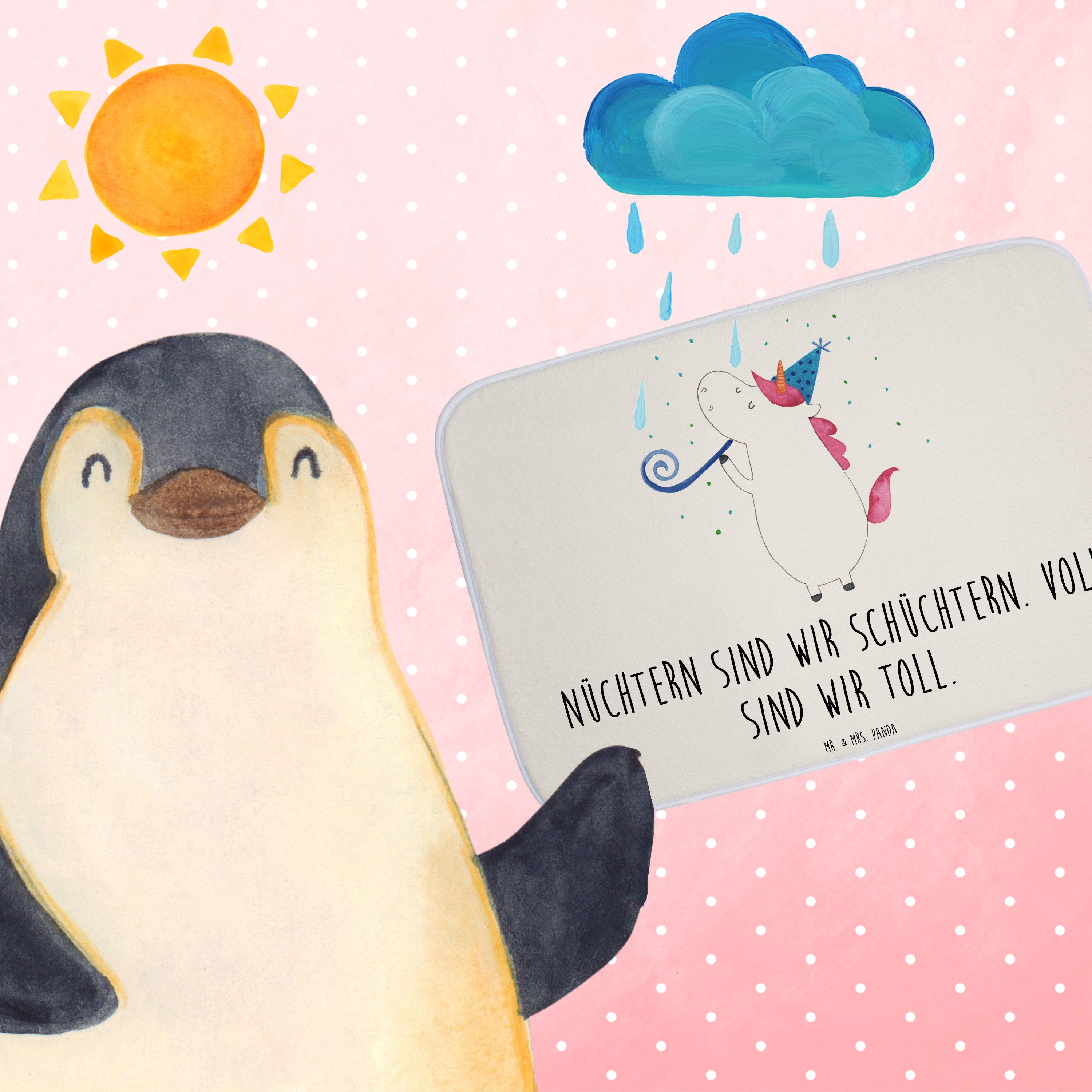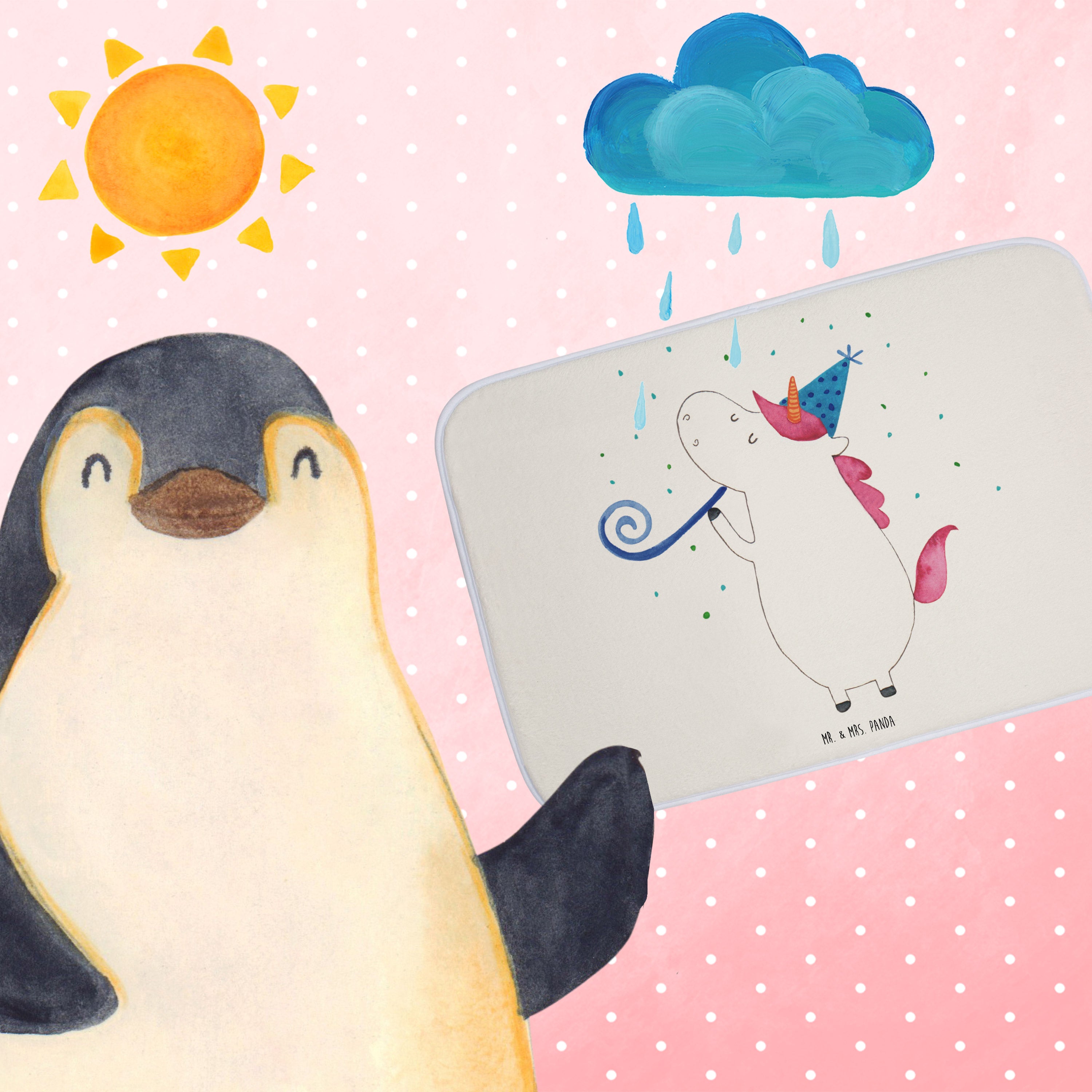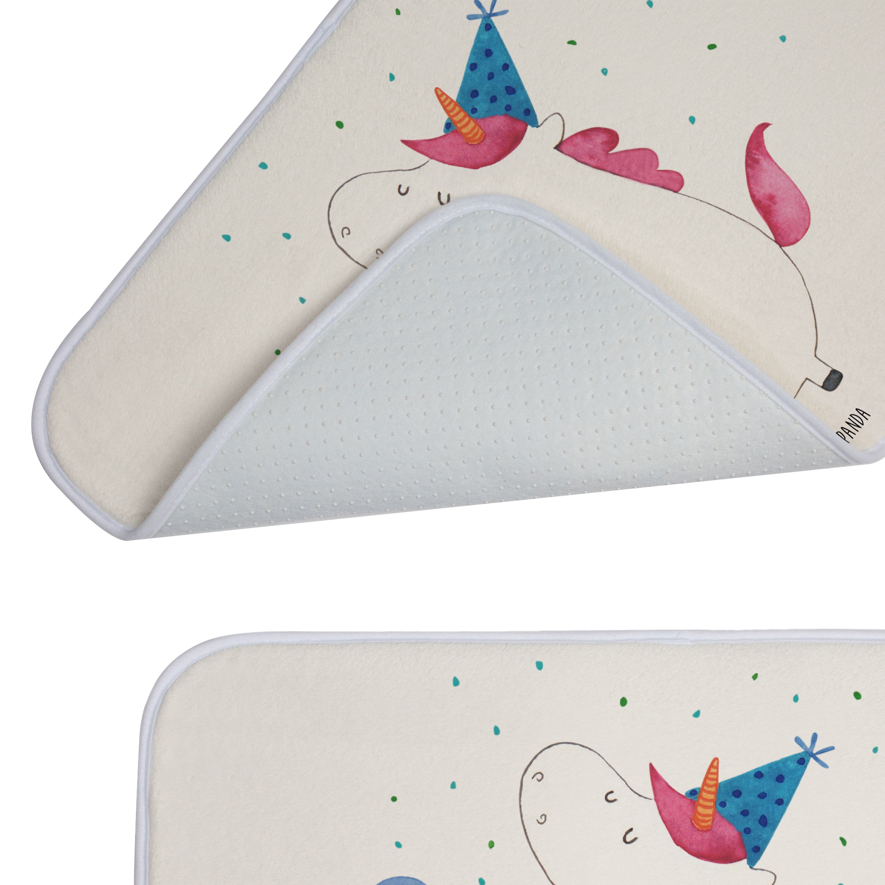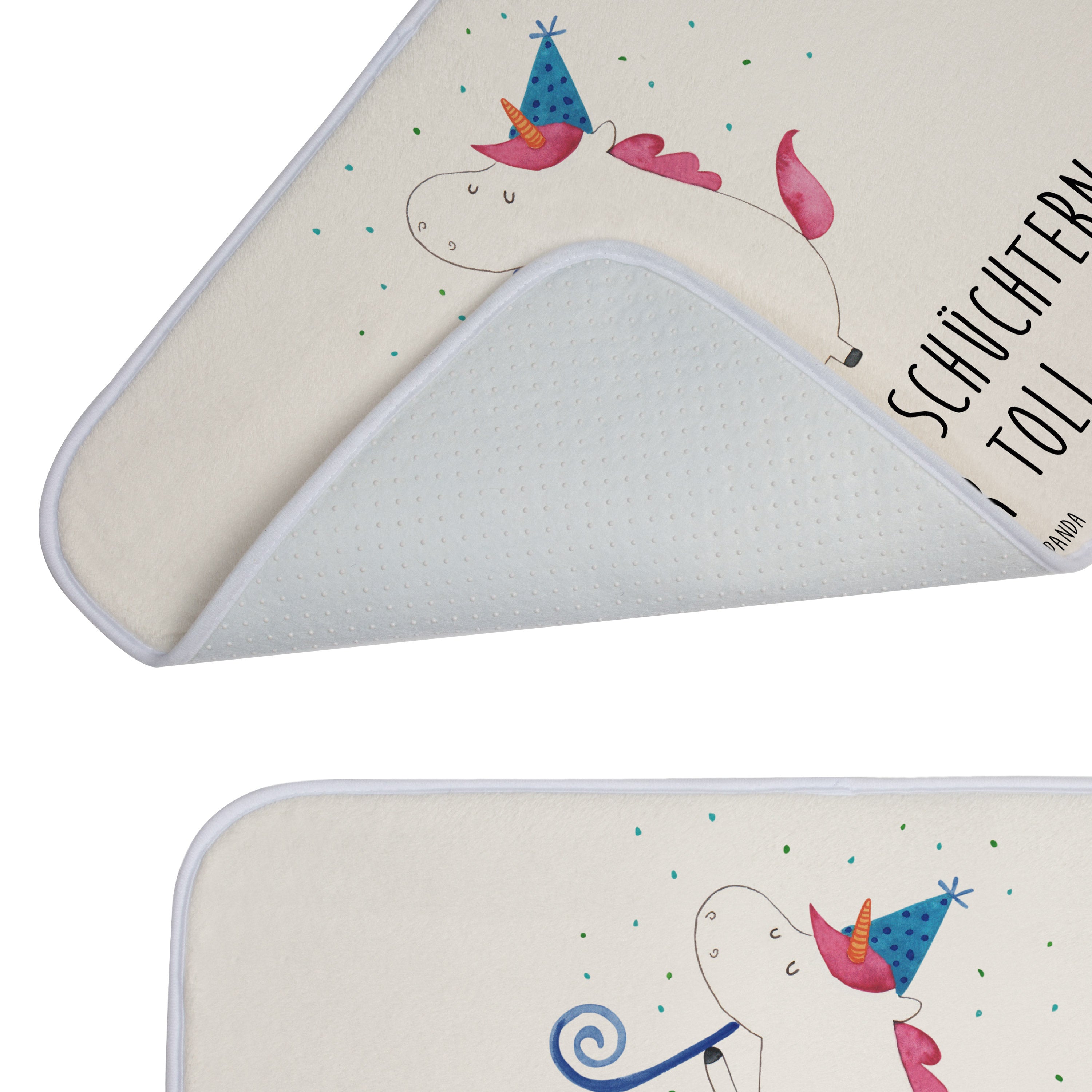 Mach dein Badezimmer zur Wohlfühloase mit der Badezimmermatte von Mr. & Mrs. Panda. 590 mm x 400 mm groß, bietet sie genug Fläche, um nasse Füße sicher und komfortabel abzutrocknen. Jedes Stück ist mit viel Liebe zum Detail gefertigt und verfügt über spritzige Designs, die sofort Stimmung in dein Bad bringen. Die Premium Kunstfaser ist nicht nur besonders flauschig, sondern mit den Anti-Rutsch Gumminoppen auch hochgradig sicher. Leicht zu reinigen bei 30°C, ist dieser Duschvorleger zusätzlich ein Paradebeispiel an Bequemlichkeit und Style.