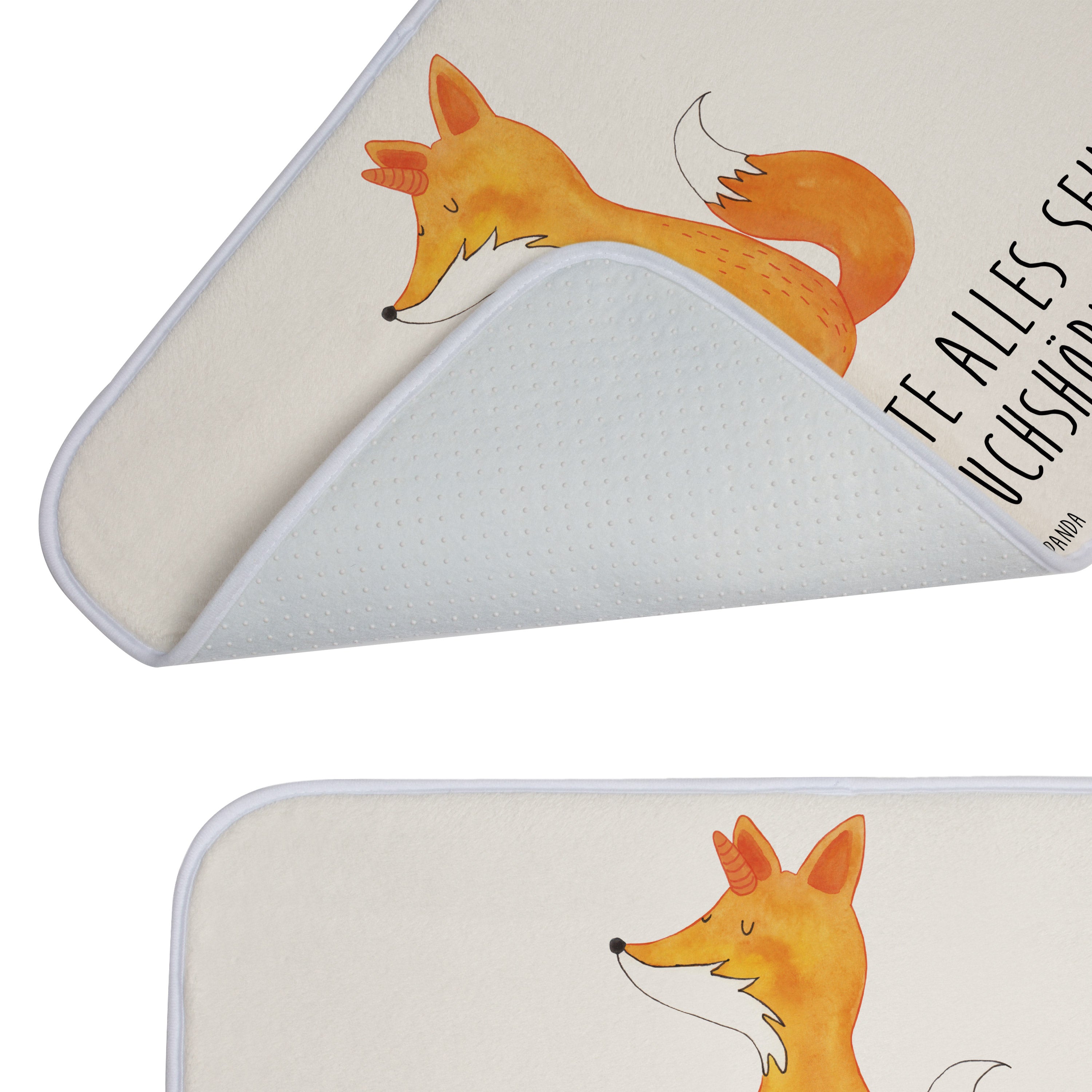 Mach dein Badezimmer zur Wohlfühloase mit der Badezimmermatte von Mr. & Mrs. Panda. 590 mm x 400 mm groß, bietet sie genug Fläche, um nasse Füße sicher und komfortabel abzutrocknen. Jedes Stück ist mit viel Liebe zum Detail gefertigt und verfügt über spritzige Designs, die sofort Stimmung in dein Bad bringen. Die Premium Kunstfaser ist nicht nur besonders flauschig, sondern mit den Anti-Rutsch Gumminoppen auch hochgradig sicher. Leicht zu reinigen bei 30°C, ist dieser Duschvorleger zusätzlich ein Paradebeispiel an Bequemlichkeit und Style.