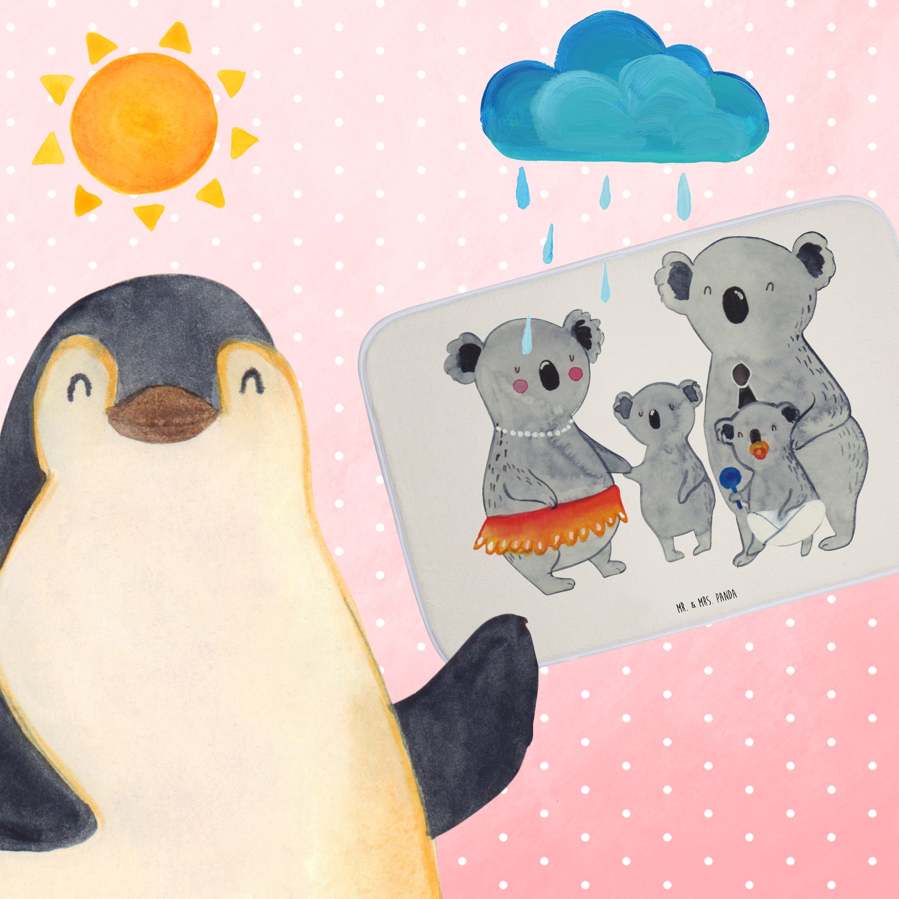 Mach dein Badezimmer zur Wohlfühloase mit der Badezimmermatte von Mr. & Mrs. Panda. 590 mm x 400 mm groß, bietet sie genug Fläche, um nasse Füße sicher und komfortabel abzutrocknen. Jedes Stück ist mit viel Liebe zum Detail gefertigt und verfügt über spritzige Designs, die sofort Stimmung in dein Bad bringen. Die Premium Kunstfaser ist nicht nur besonders flauschig, sondern mit den Anti-Rutsch Gumminoppen auch hochgradig sicher. Leicht zu reinigen bei 30°C, ist dieser Duschvorleger zusätzlich ein Paradebeispiel an Bequemlichkeit und Style.