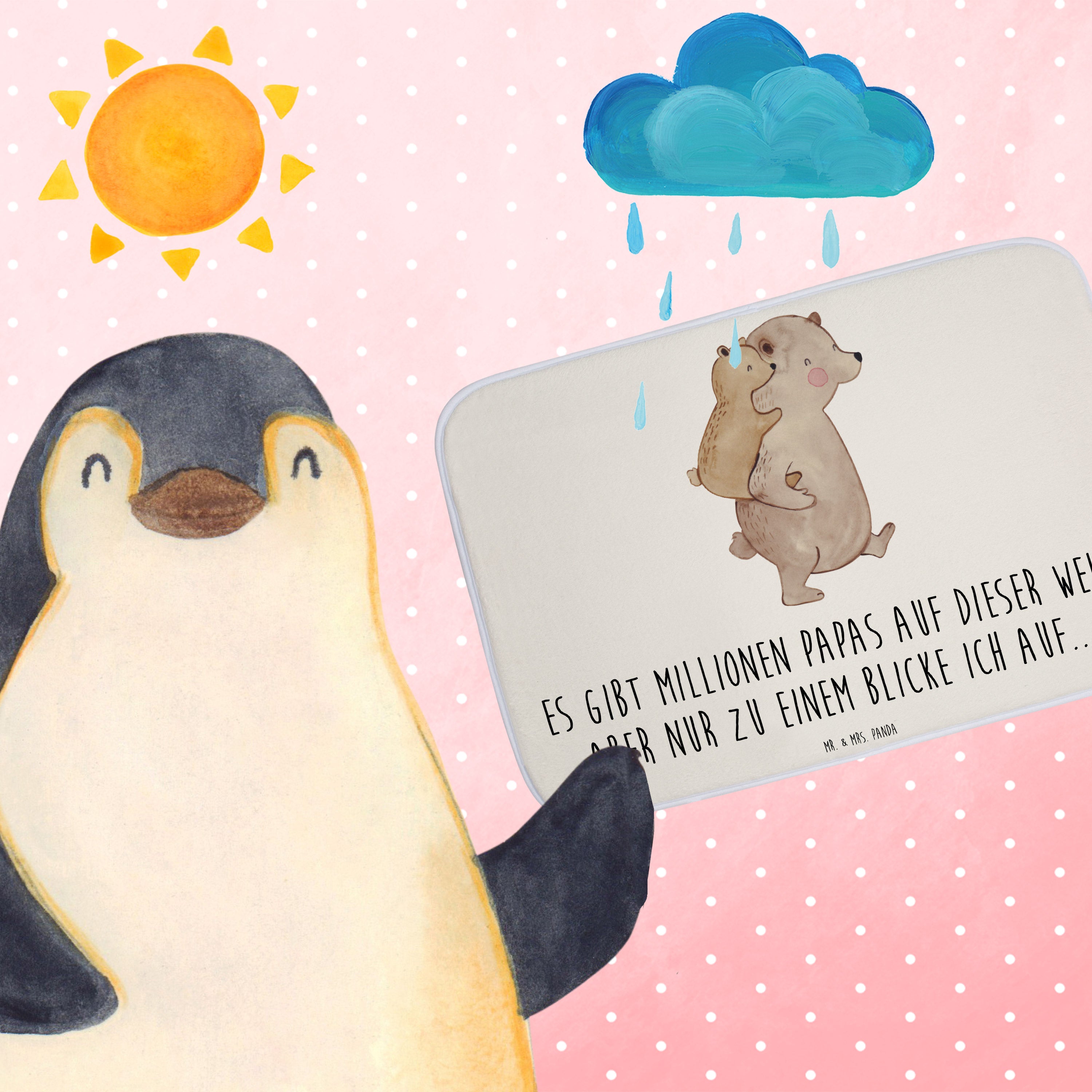 Mach dein Badezimmer zur Wohlfühloase mit der Badezimmermatte von Mr. & Mrs. Panda. 590 mm x 400 mm groß, bietet sie genug Fläche, um nasse Füße sicher und komfortabel abzutrocknen. Jedes Stück ist mit viel Liebe zum Detail gefertigt und verfügt über spritzige Designs, die sofort Stimmung in dein Bad bringen. Die Premium Kunstfaser ist nicht nur besonders flauschig, sondern mit den Anti-Rutsch Gumminoppen auch hochgradig sicher. Leicht zu reinigen bei 30°C, ist dieser Duschvorleger zusätzlich ein Paradebeispiel an Bequemlichkeit und Style.