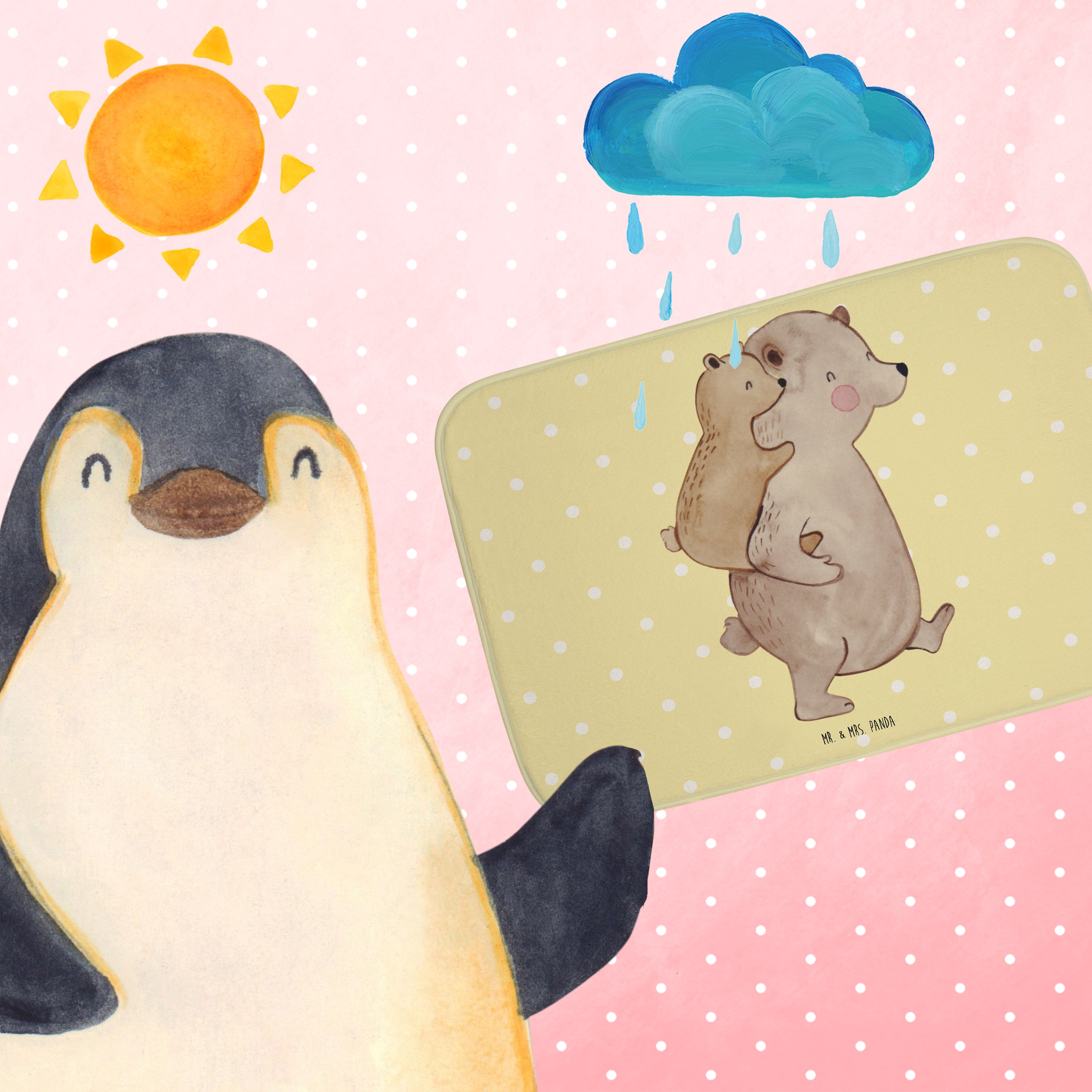 Belebe dein Badezimmer mit dem charmanten Duschvorleger von Mr. & Mrs. Panda. Auf 590 mm x 400 mm, verleiht dieser flauschige Badteppich jedem Raum das gewisse Etwas. Jedes Design erzählt eine Geschichte und macht aus einer simplen Matte eine Quelle der Freude. Dank der Antirutsch Gummibeschichtung und der besonders saugstarken Kunstfaser fühlen sich deine Füße sicher und geborgen. Zusätzlich ist die Matte leicht bei 30°C waschbar, was Pflege zum Kinderspiel macht. Ein Stück, das Design und Funktionalität meisterhaft vereinigt.