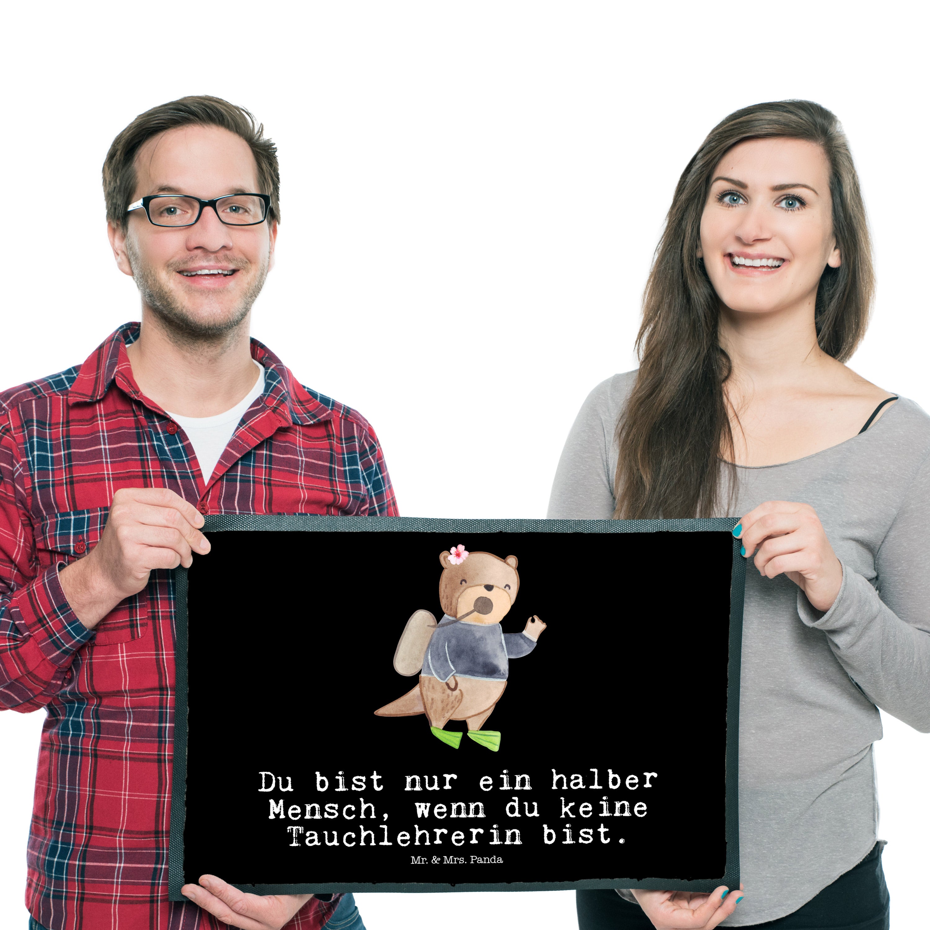 Mit der Mr. & Mrs. Panda Fußmatte empfängst Du Deine Besucher auf stilvolle Weise. Die Maße von 500 mm x 780 mm x 5 mm machen sie zur perfekten Wahl für den Eingangsbereich. Der Polyesterfilz an der Vorderseite ziert sich mit schönen Motiven und Botschaften, während die Unterseite aus Gummi den Matten einen festen Stand verleiht. Ideal, um Schmutz und Feuchte fernzuhalten, erweist sie sich durch ihre Abriebfestigkeit und Wetterbeständigkeit als sehr praktisch. Leicht zu pflegen, steht einer Wäsche bei 30°C nichts im Weg. Der breite Gummirand sorgt nicht nur für eine ansprechende Optik, sondern auch für zusätzliche Haltbarkeit.