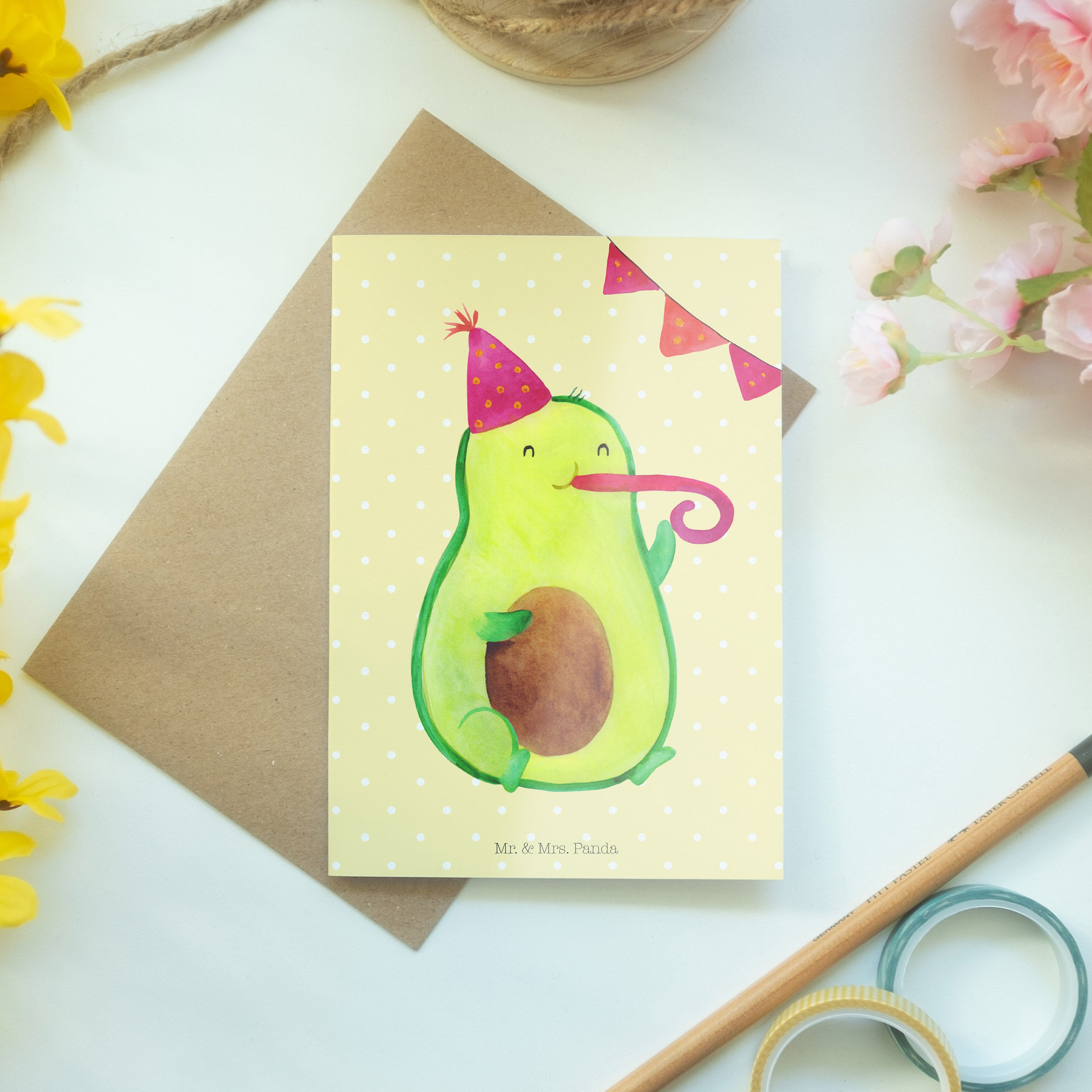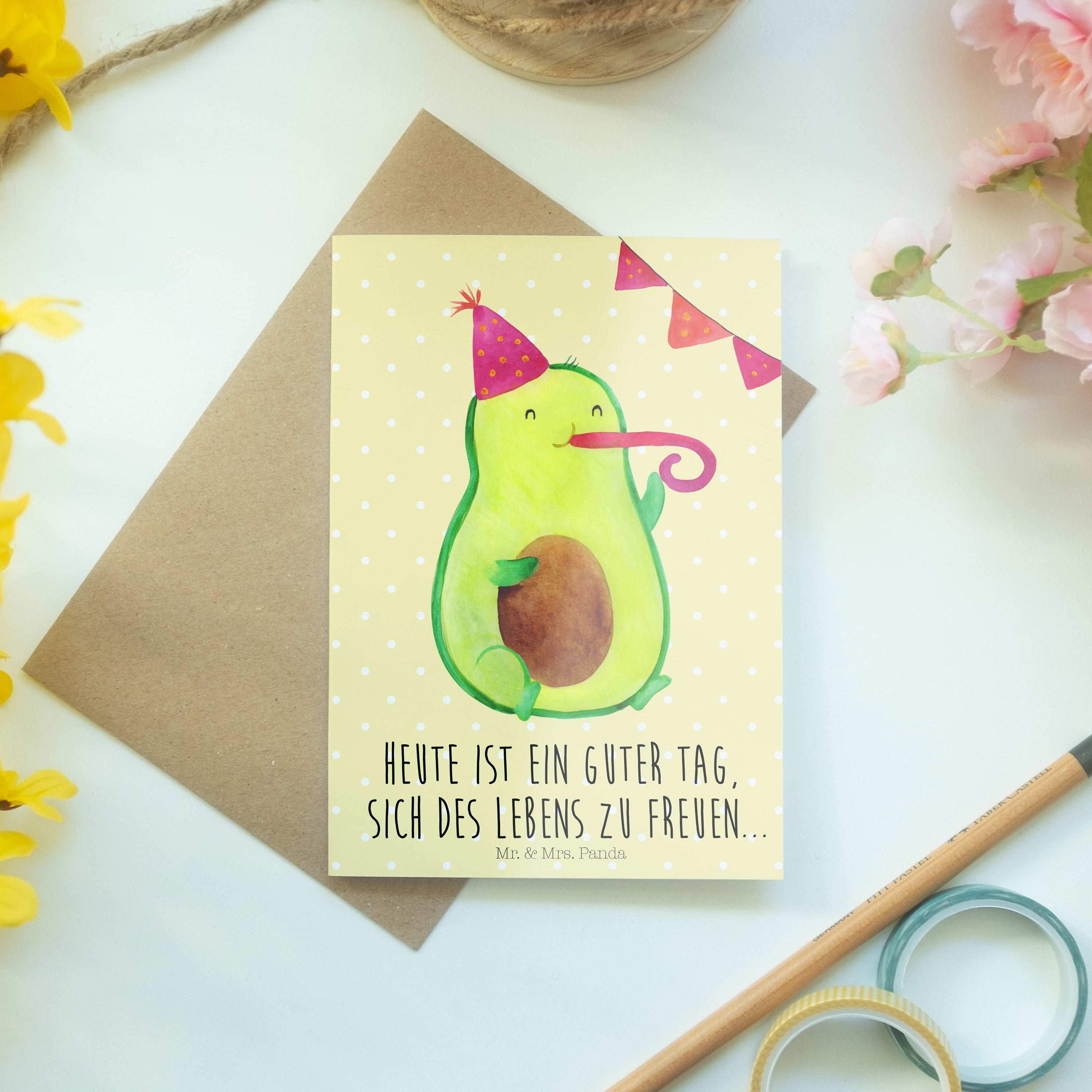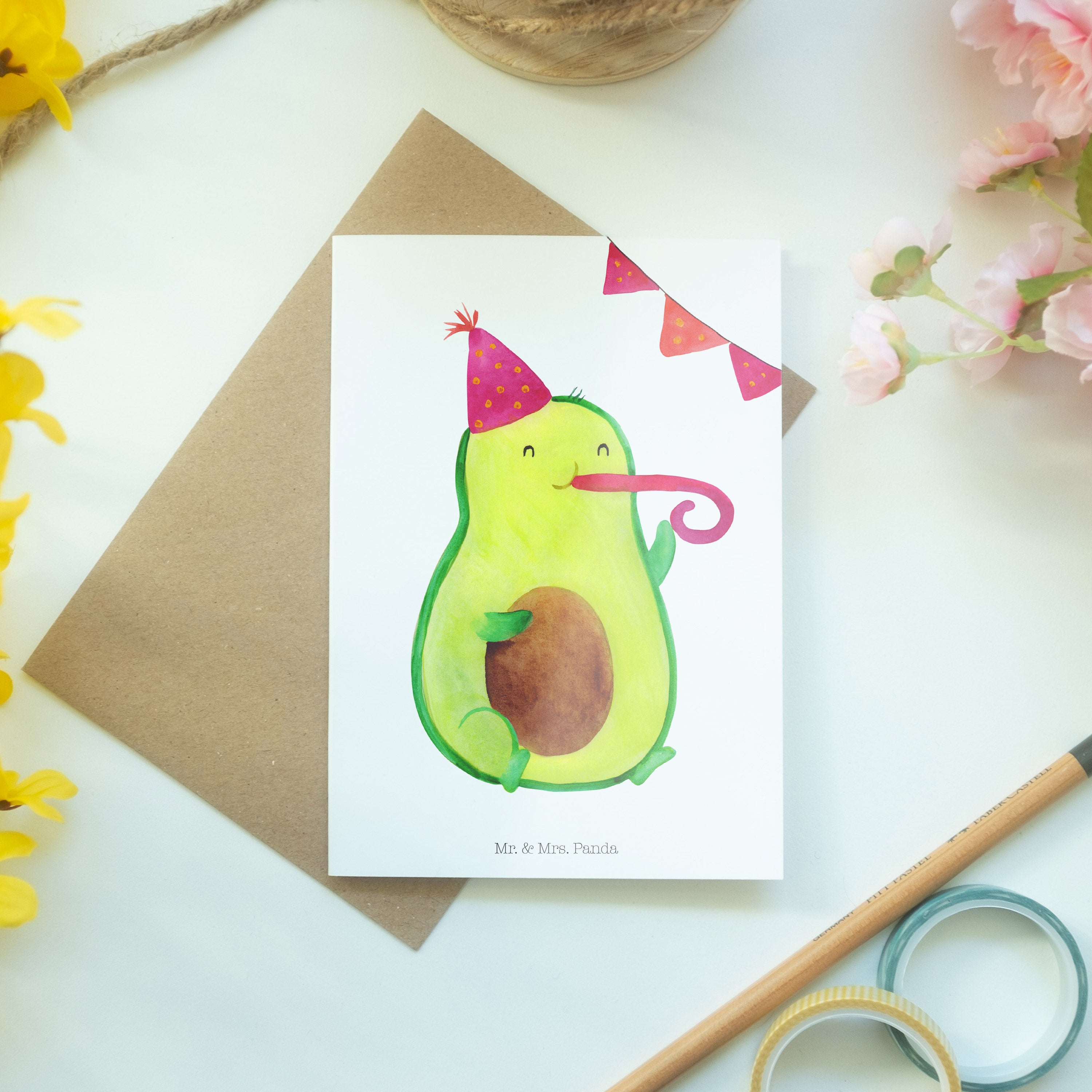 Pflegehinweis: Vermeide langanhaltende direkte Sonneneinstrahlung und Feuchtigkeit, um die Qualität deiner Mr. & Mrs. Panda Grußkarte zu schützen.