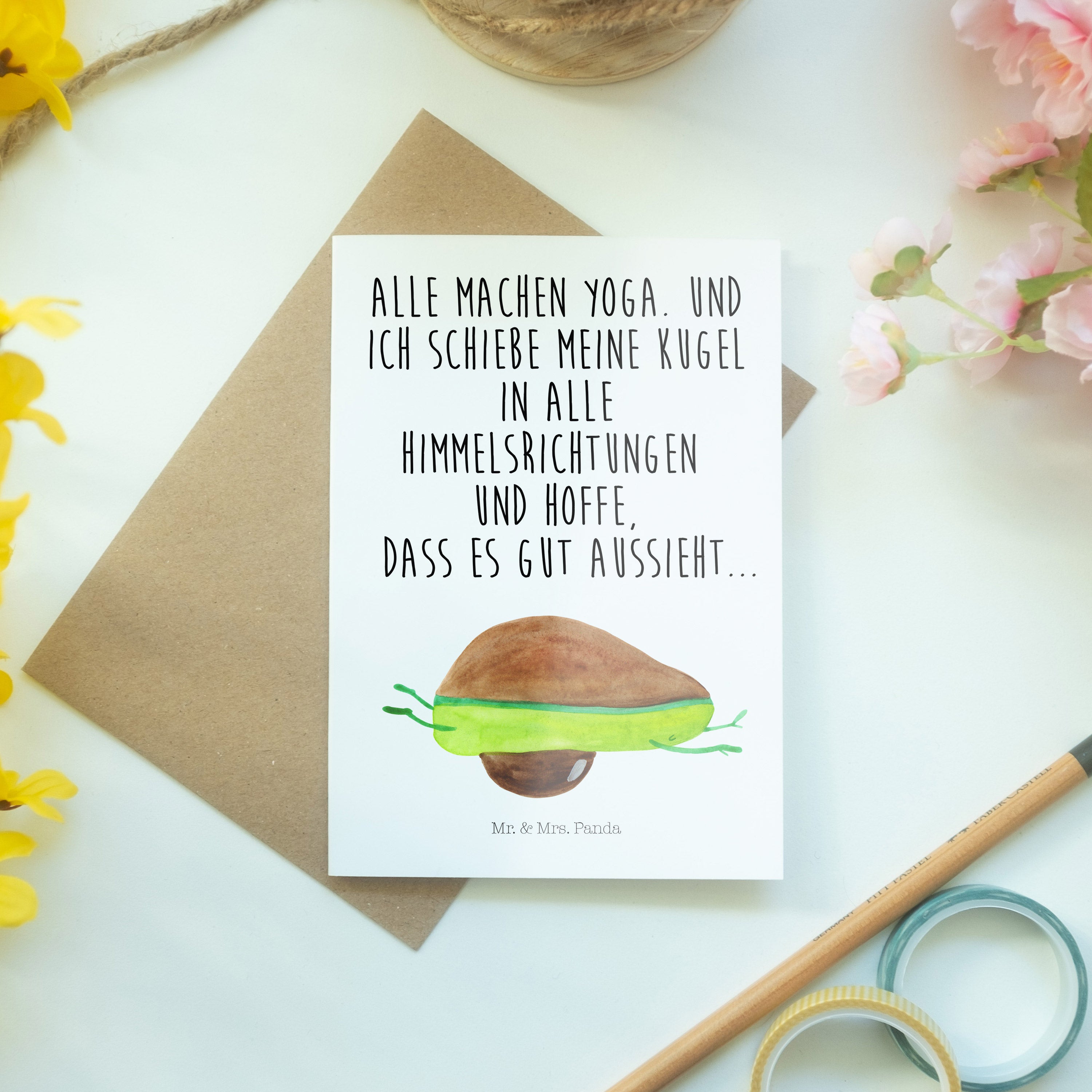 Pflegehinweis: Vermeide langanhaltende direkte Sonneneinstrahlung und Feuchtigkeit, um die Qualität deiner Mr. & Mrs. Panda Grußkarte zu schützen.