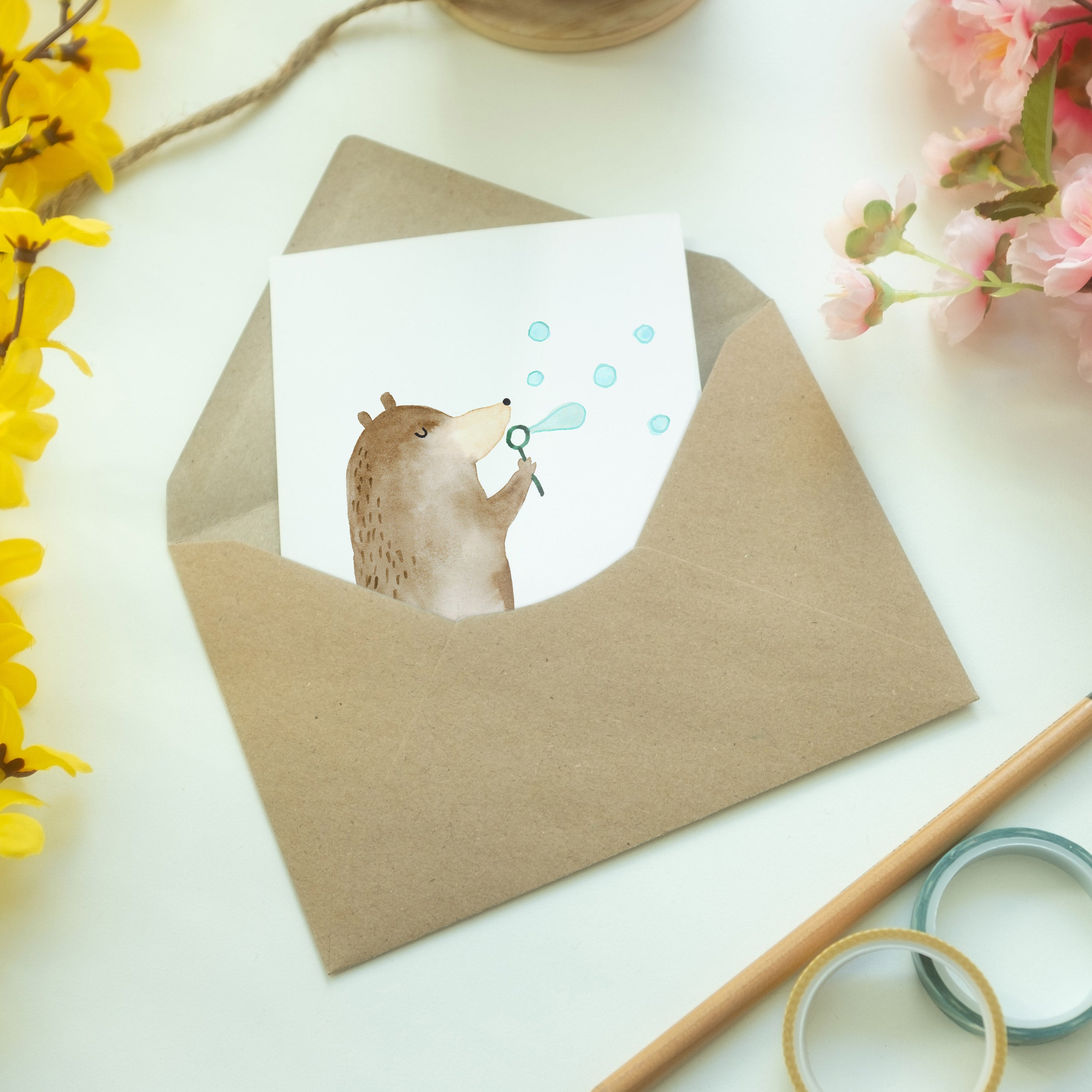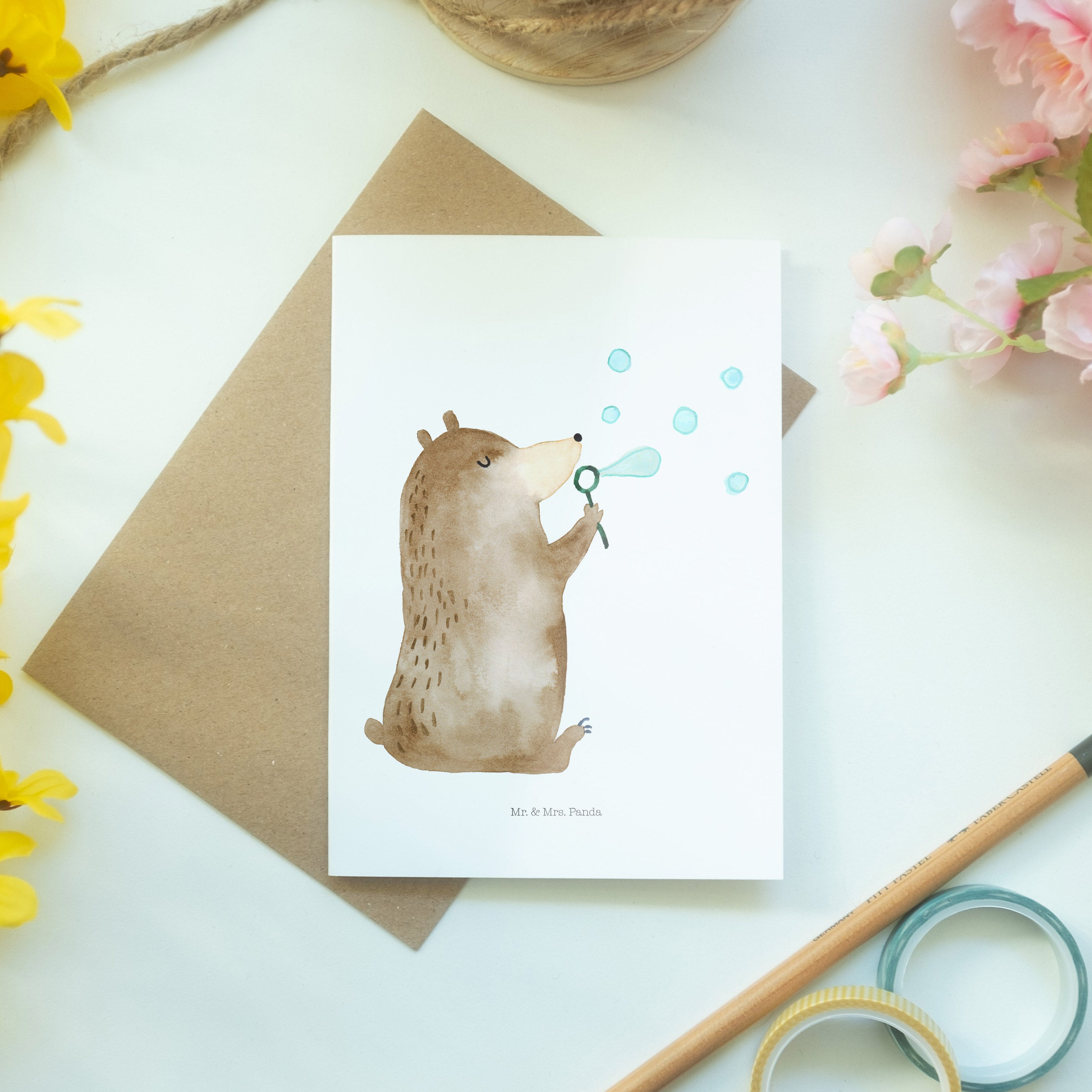 Grußkarte Bär Seifenblasen