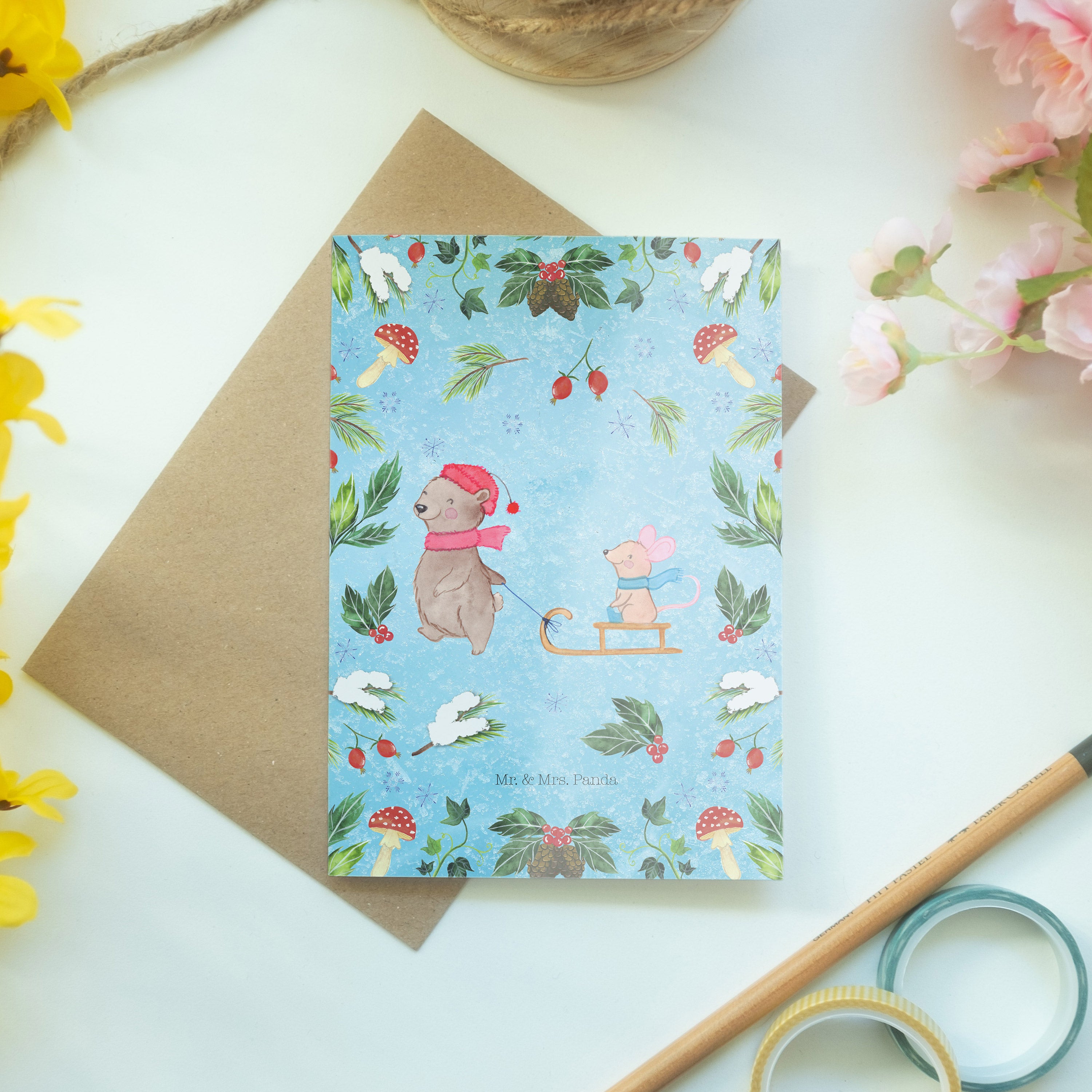Pflegehinweis: Vermeide langanhaltende direkte Sonneneinstrahlung und Feuchtigkeit, um die Qualität deiner Mr. & Mrs. Panda Grußkarte zu schützen.