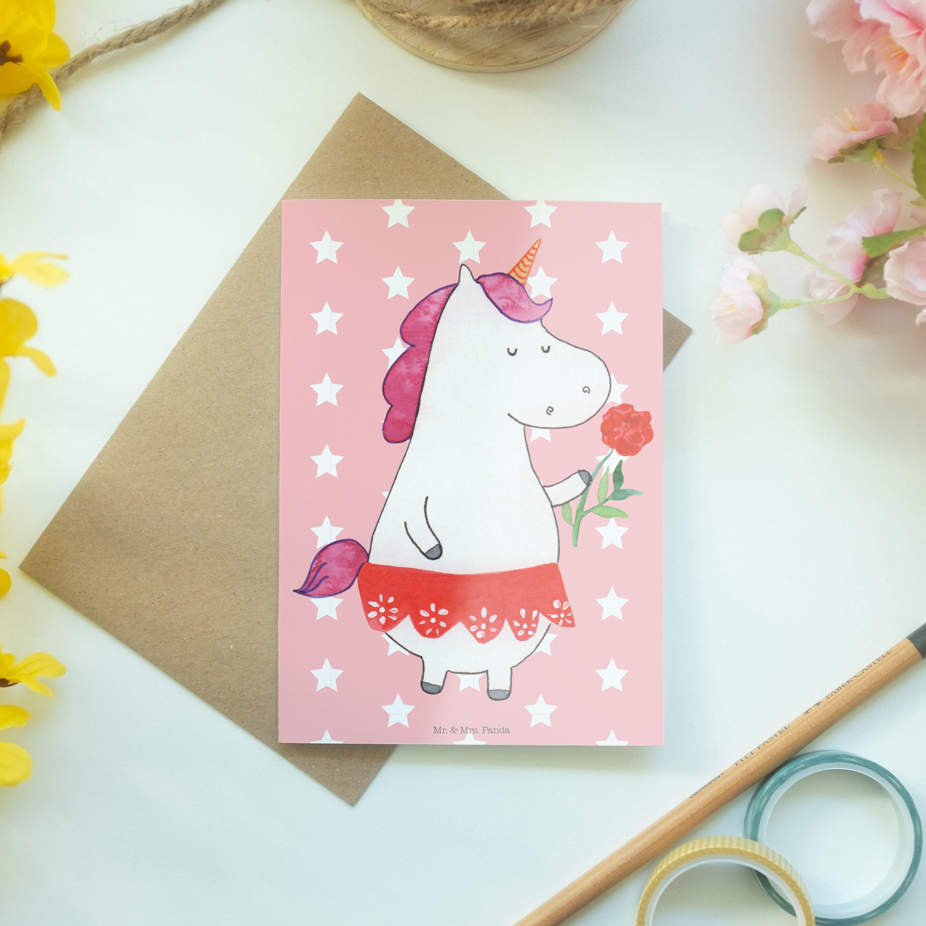 Pflegehinweis: Um die strahlenden Farben und die hohe Qualität deiner Mr. & Mrs. Panda Klappkarte zu bewahren, halte sie fern von direktem Sonnenlicht und Feuchtigkeit.