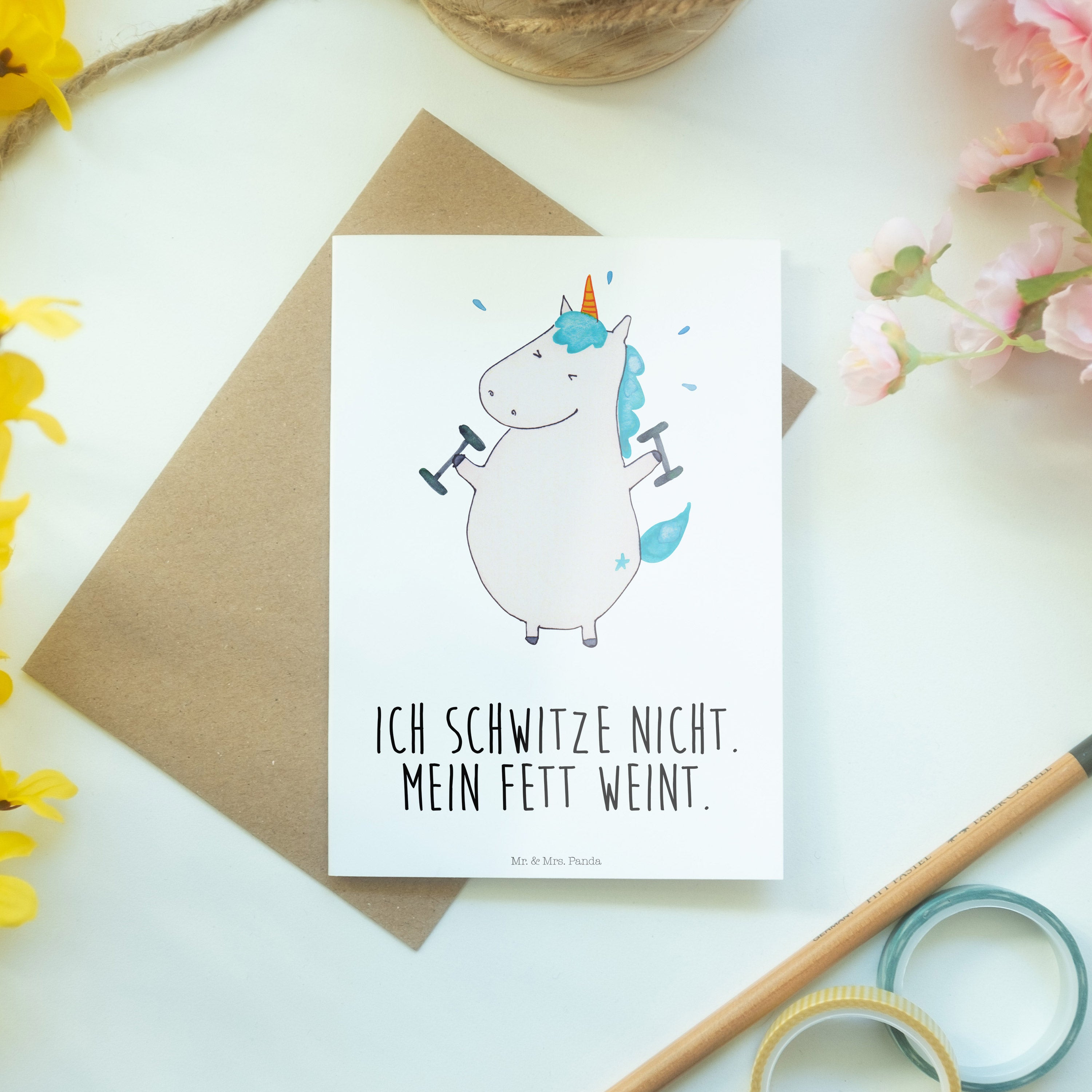 Grußkarte Einhorn Fitness