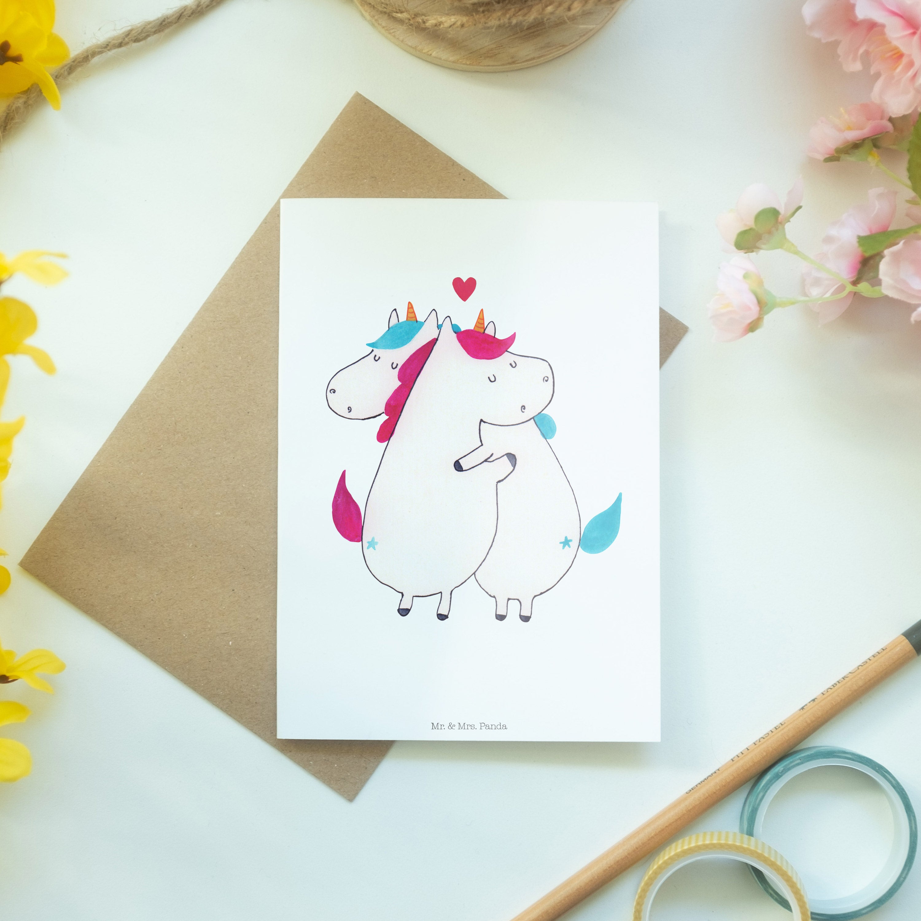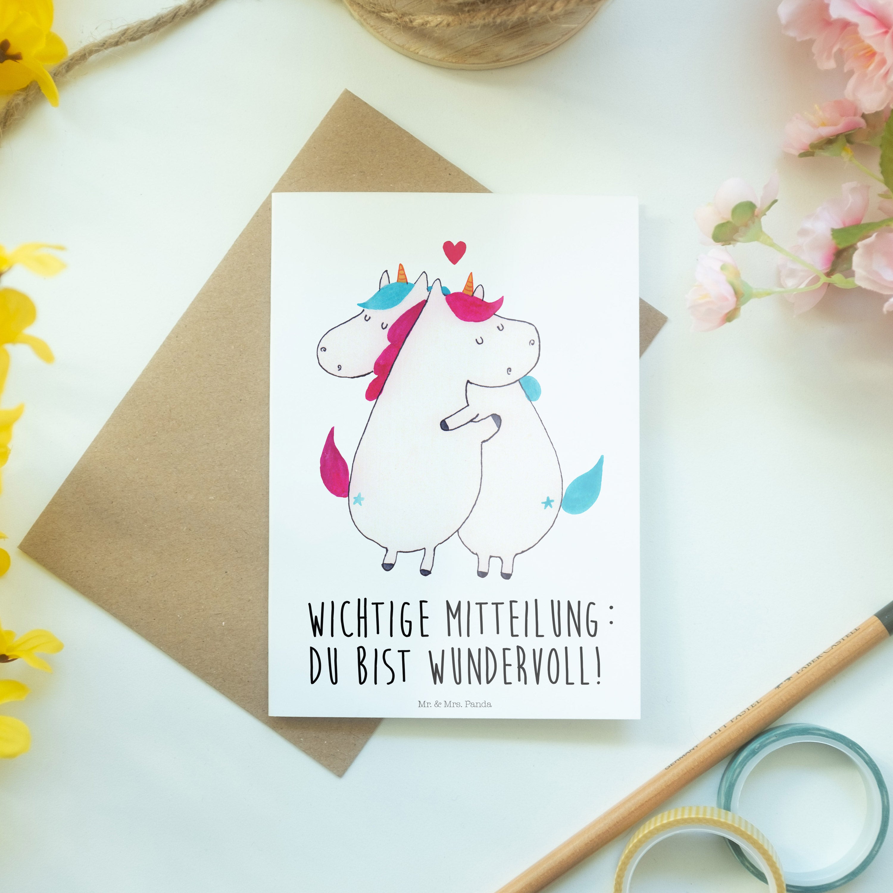 Pflegehinweis: Vermeide langanhaltende direkte Sonneneinstrahlung und Feuchtigkeit, um die Qualität deiner Mr. & Mrs. Panda Grußkarte zu schützen.