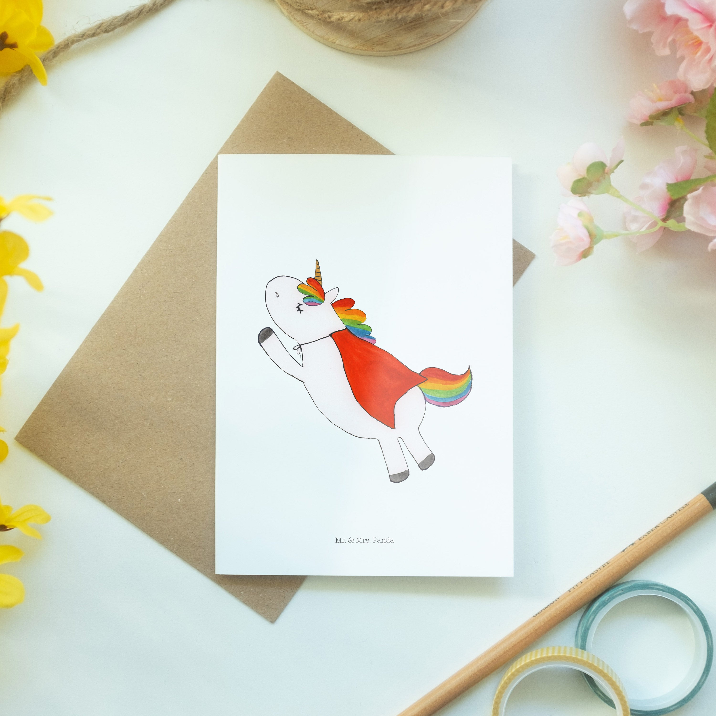 Pflegehinweis: Um die strahlenden Farben und die hohe Qualität deiner Mr. & Mrs. Panda Klappkarte zu bewahren, halte sie fern von direktem Sonnenlicht und Feuchtigkeit.