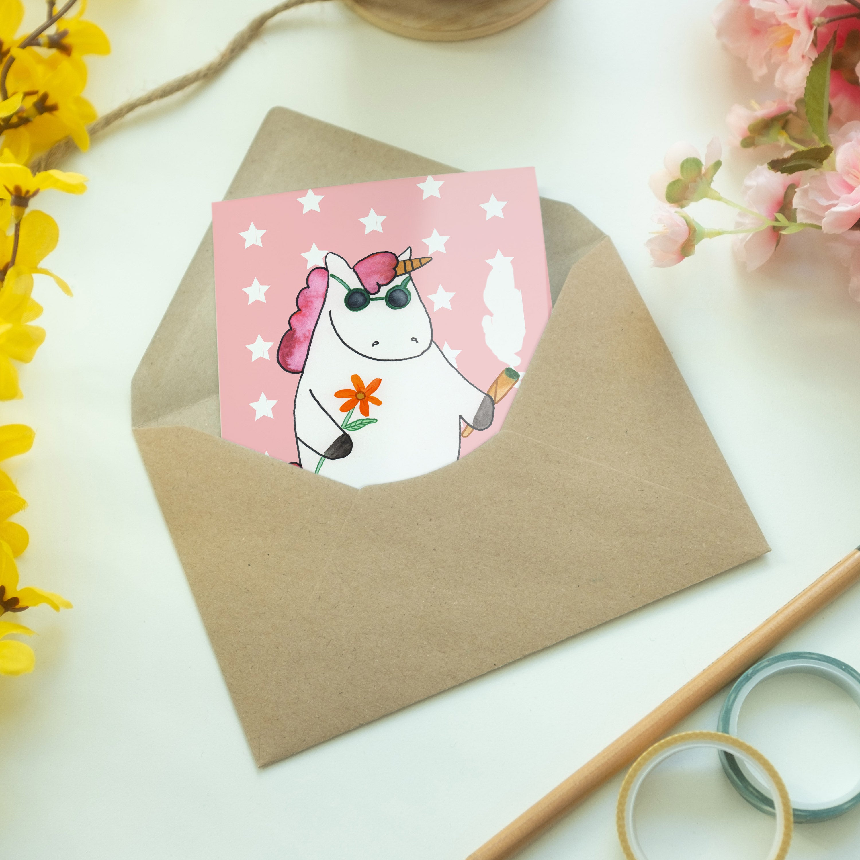 Pflegehinweis: Vermeide langanhaltende direkte Sonneneinstrahlung und Feuchtigkeit, um die Qualität deiner Mr. & Mrs. Panda Grußkarte zu schützen.