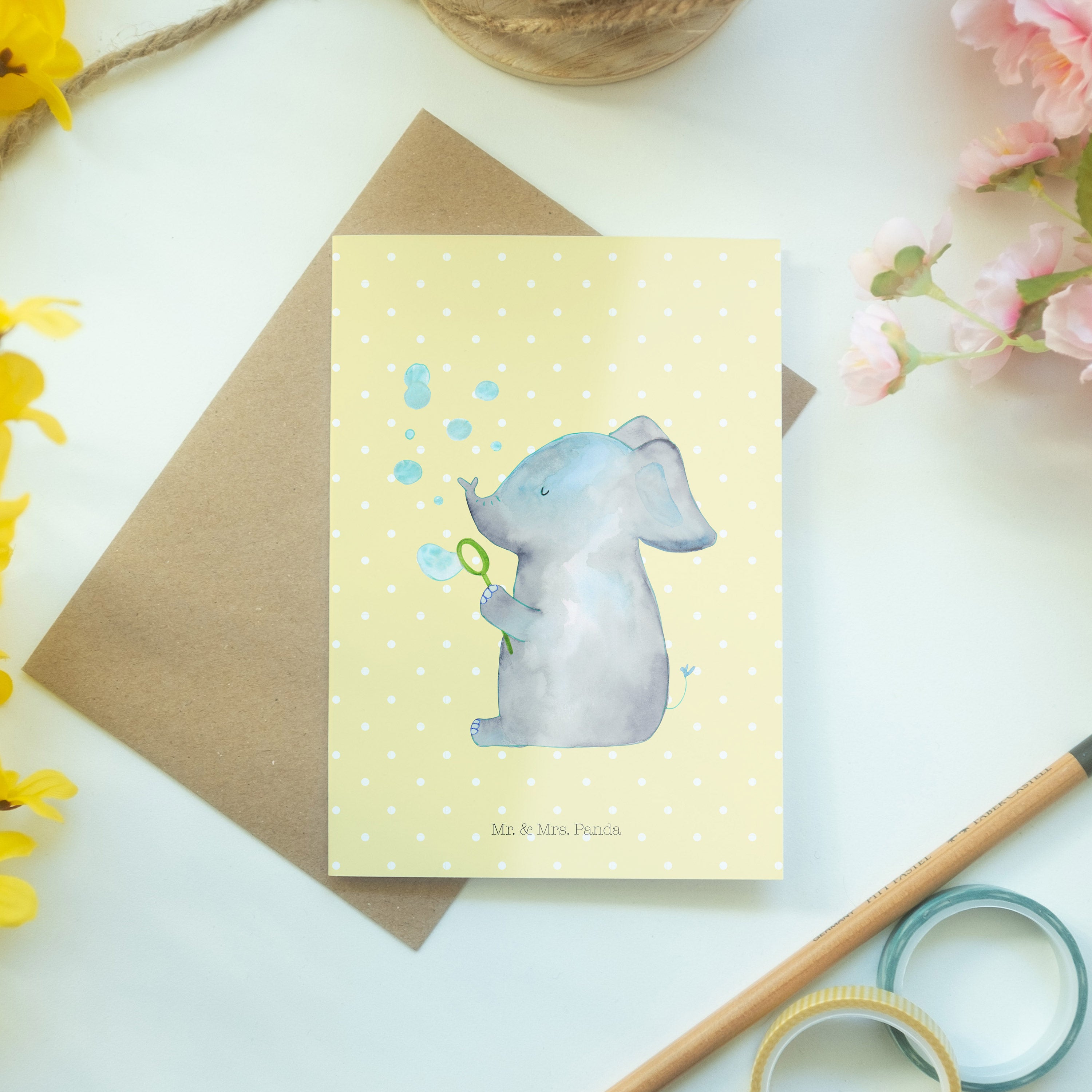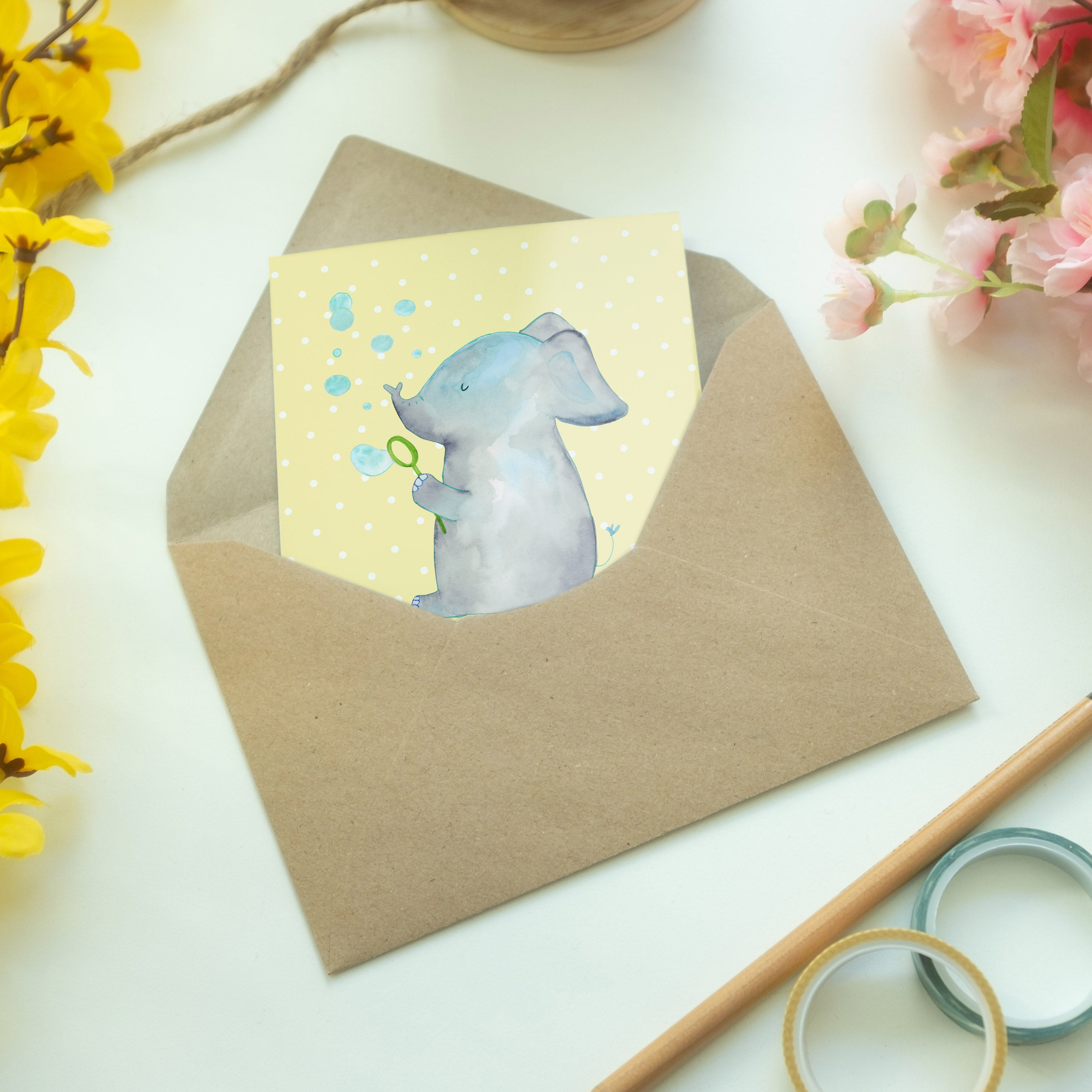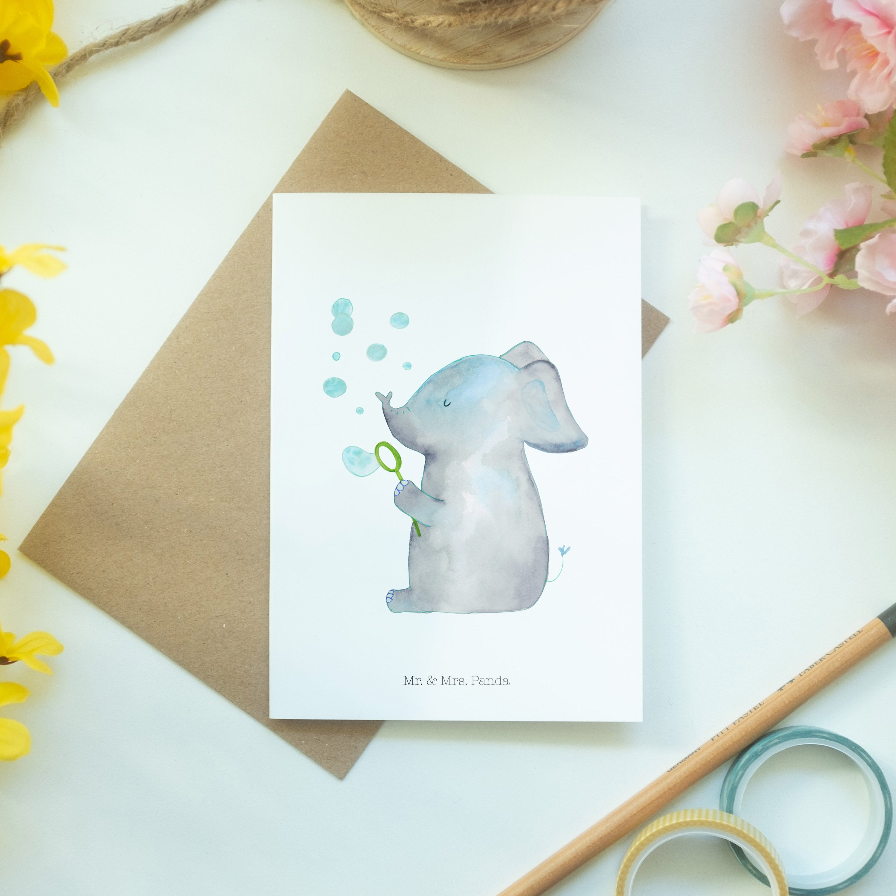 Grußkarte Elefant Seifenblasen