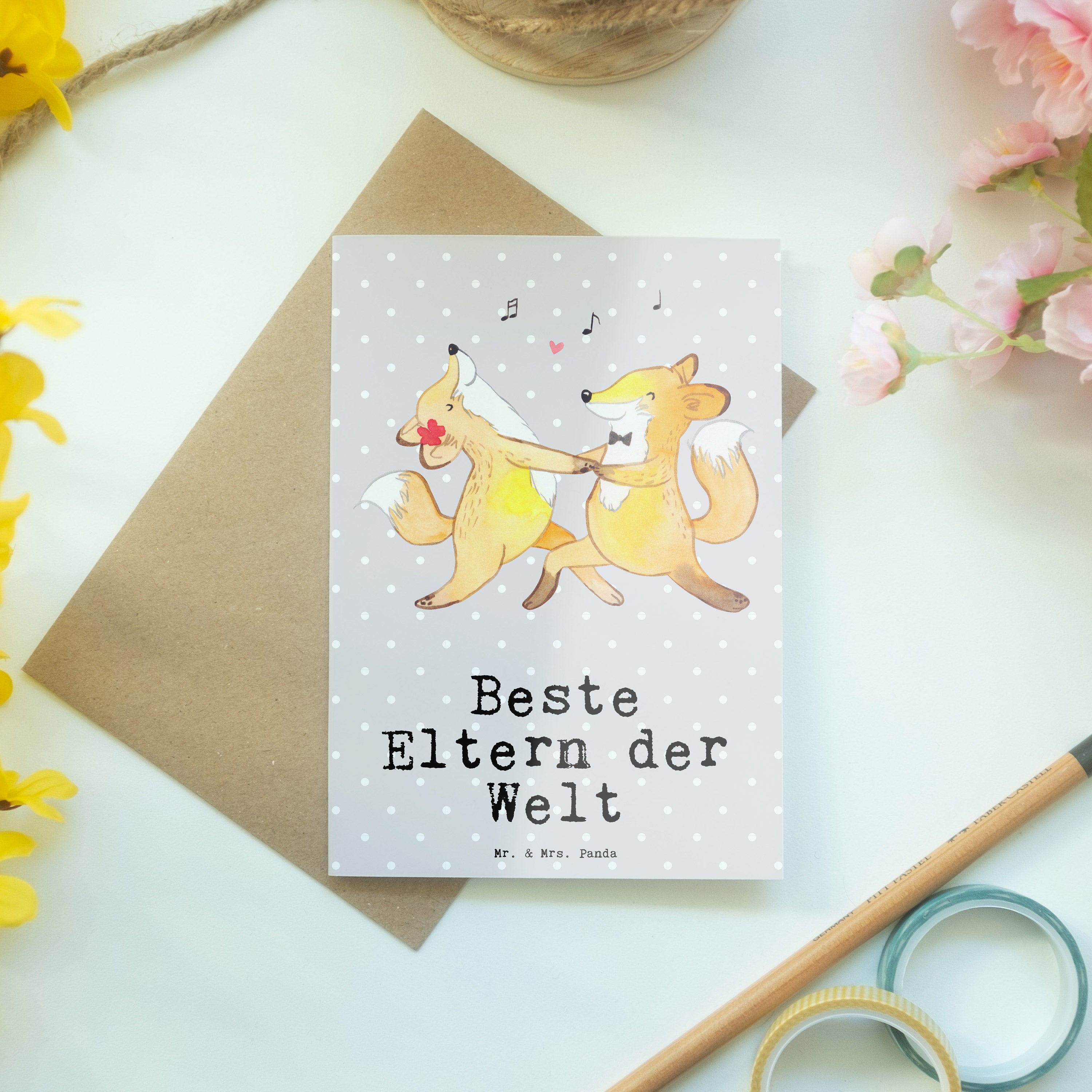 Pflegehinweis: Vermeide langanhaltende direkte Sonneneinstrahlung und Feuchtigkeit, um die Qualität deiner Mr. & Mrs. Panda Grußkarte zu schützen.