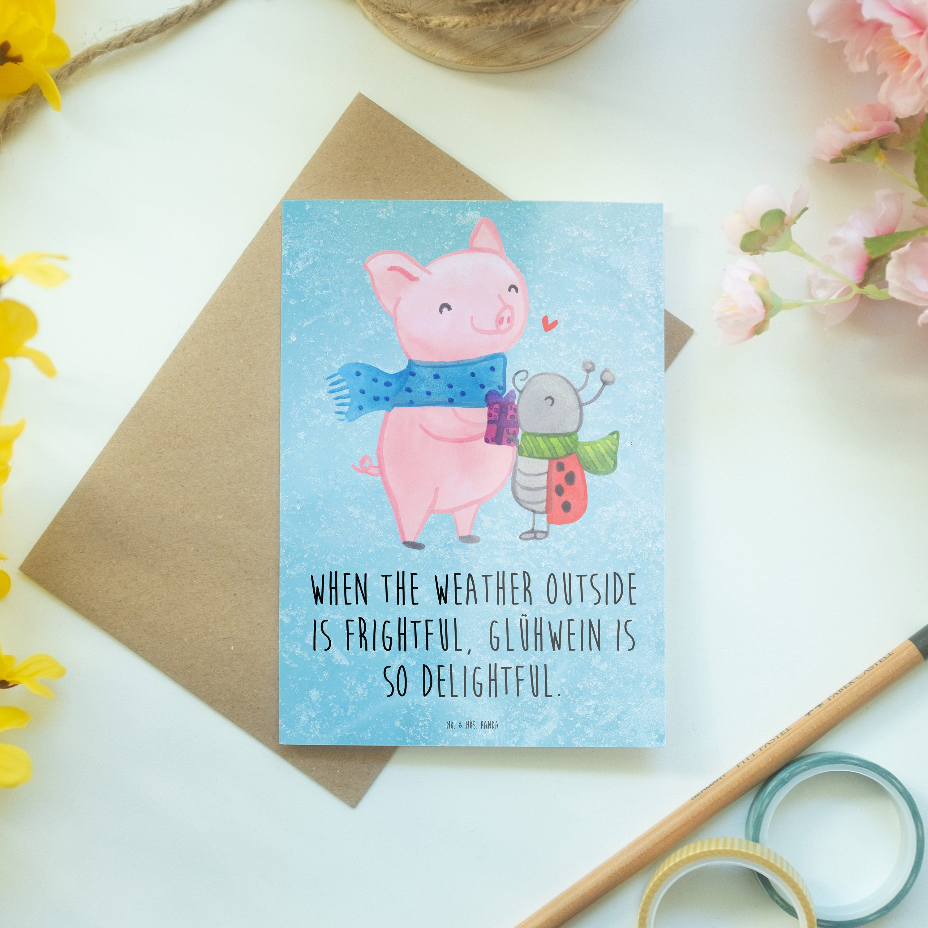 Pflegehinweis: Vermeide langanhaltende direkte Sonneneinstrahlung und Feuchtigkeit, um die Qualität deiner Mr. & Mrs. Panda Grußkarte zu schützen.