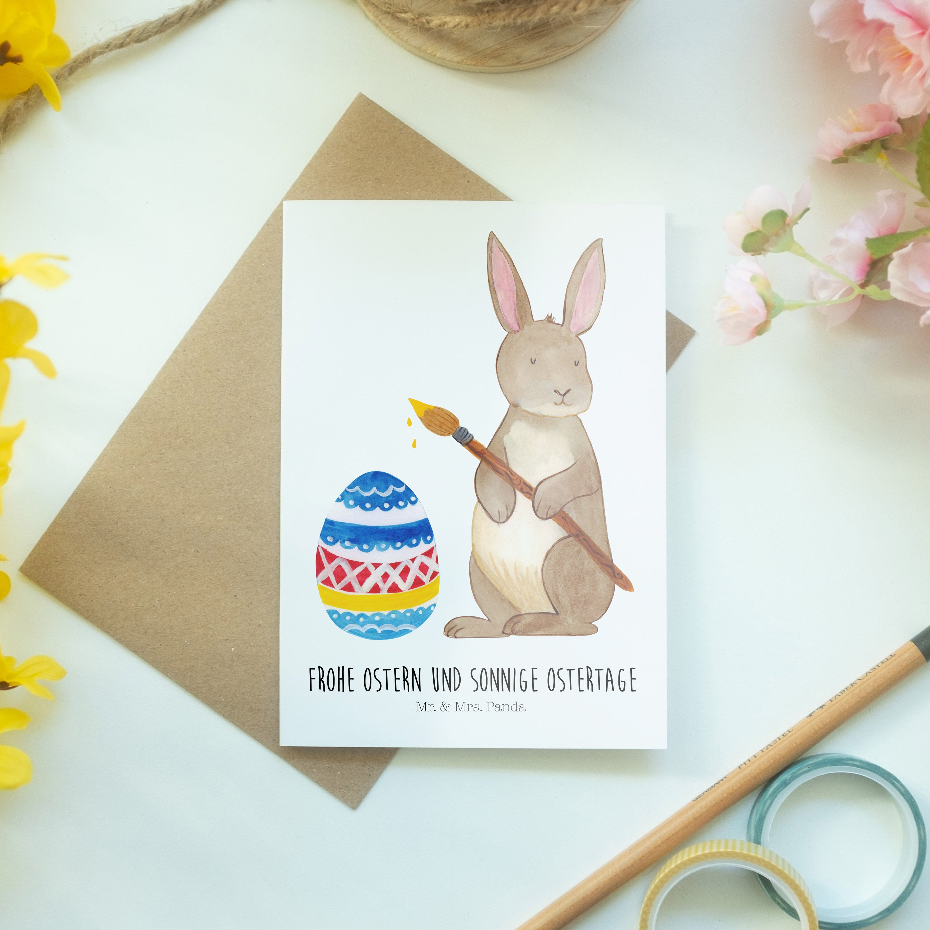Grußkarte Hase Eiermalen