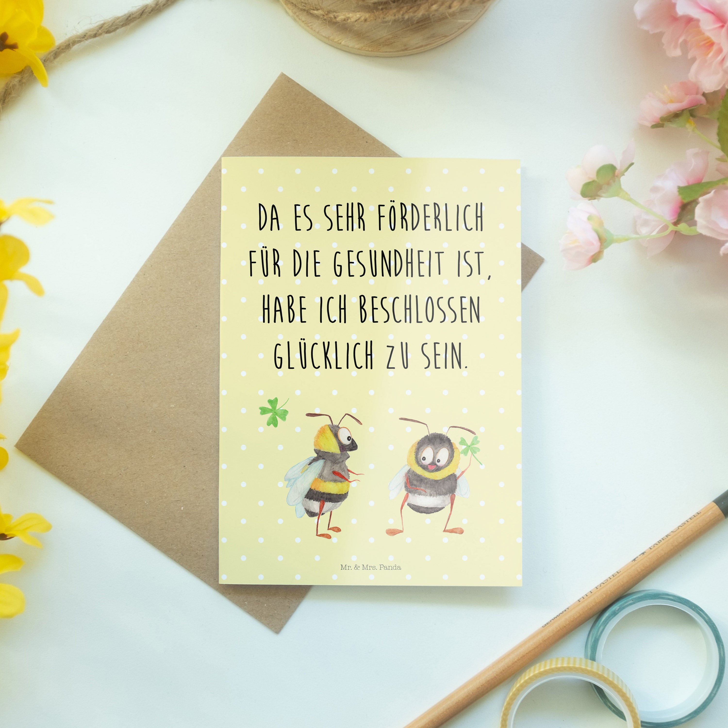 Entdecke die Magie individueller Grüße mit der exklusiven Grußkarte von Mr. & Mrs. Panda. Diese Klappkarte, bedruckt mit liebevollen Sprüchen und süßen Motiven, wird dein persönlicher Botschafter für Zuneigung und Freude. Das Format von 148 mm x 105 mm bietet ausreichend Platz für deine individuellen Worte, während der hochwertige Karton und die hochglänzend veredelte Vorderseite die Karte zu einem echten Hingucker machen. Die matte Innenseite sorgt dafür, dass deine Botschaft leicht aufgetragen werden kann, und der edle Umschlag rundet das Ganze perfekt ab. Ob für Geburtstage, Hochzeiten oder einfach als Zeichen der Wertschätzung – mit dieser Karte zeigst du Gefühl und Geschmack. Die einmaligen Designs von Mr. & Mrs. Panda machen jede Karte zu etwas ganz Besonderem und unterstreichen deine persönliche Note.