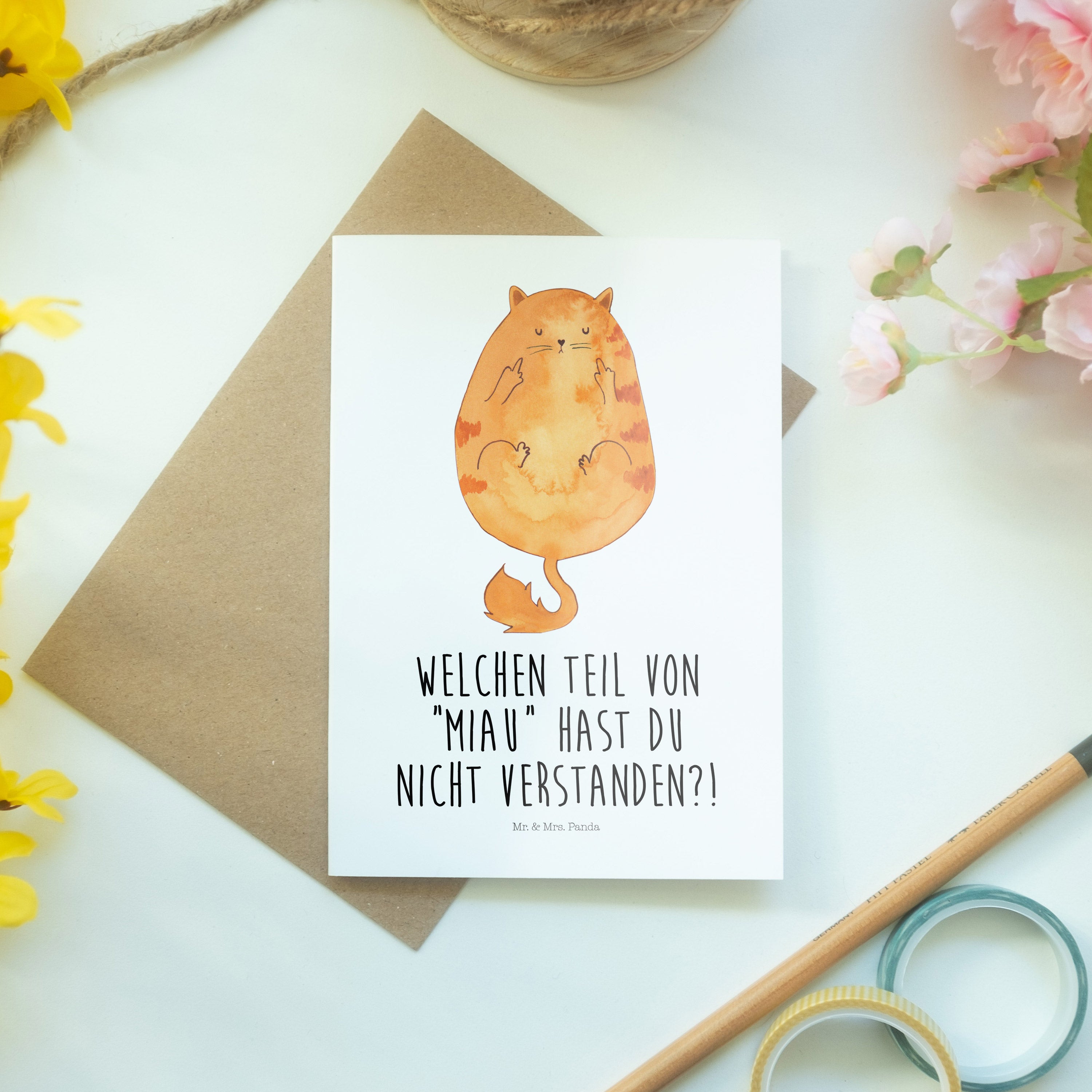 Pflegehinweis: Um die strahlenden Farben und die hohe Qualität deiner Mr. & Mrs. Panda Klappkarte zu bewahren, halte sie fern von direktem Sonnenlicht und Feuchtigkeit.