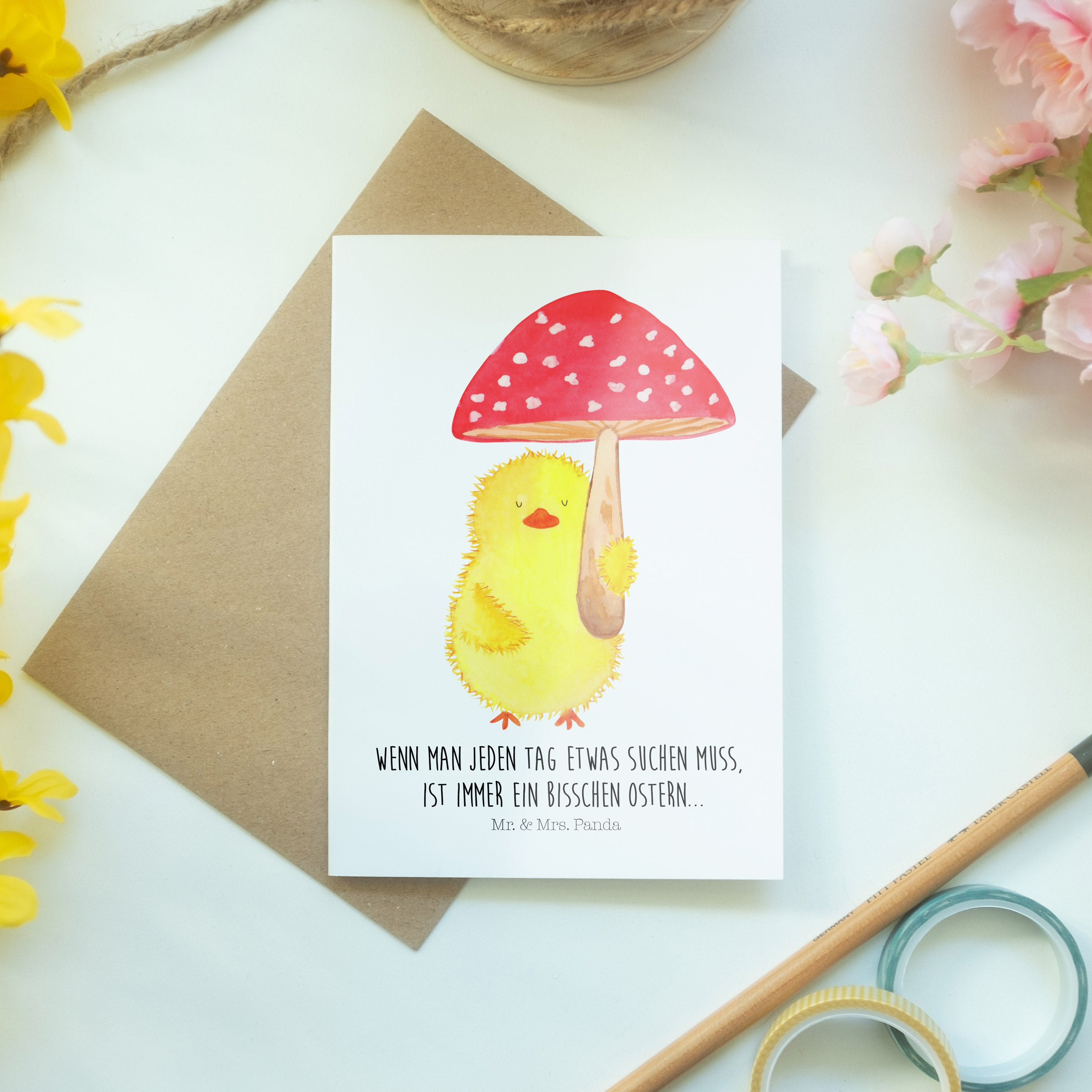 Pflegehinweis: Um die strahlenden Farben und die hohe Qualität deiner Mr. & Mrs. Panda Klappkarte zu bewahren, halte sie fern von direktem Sonnenlicht und Feuchtigkeit.