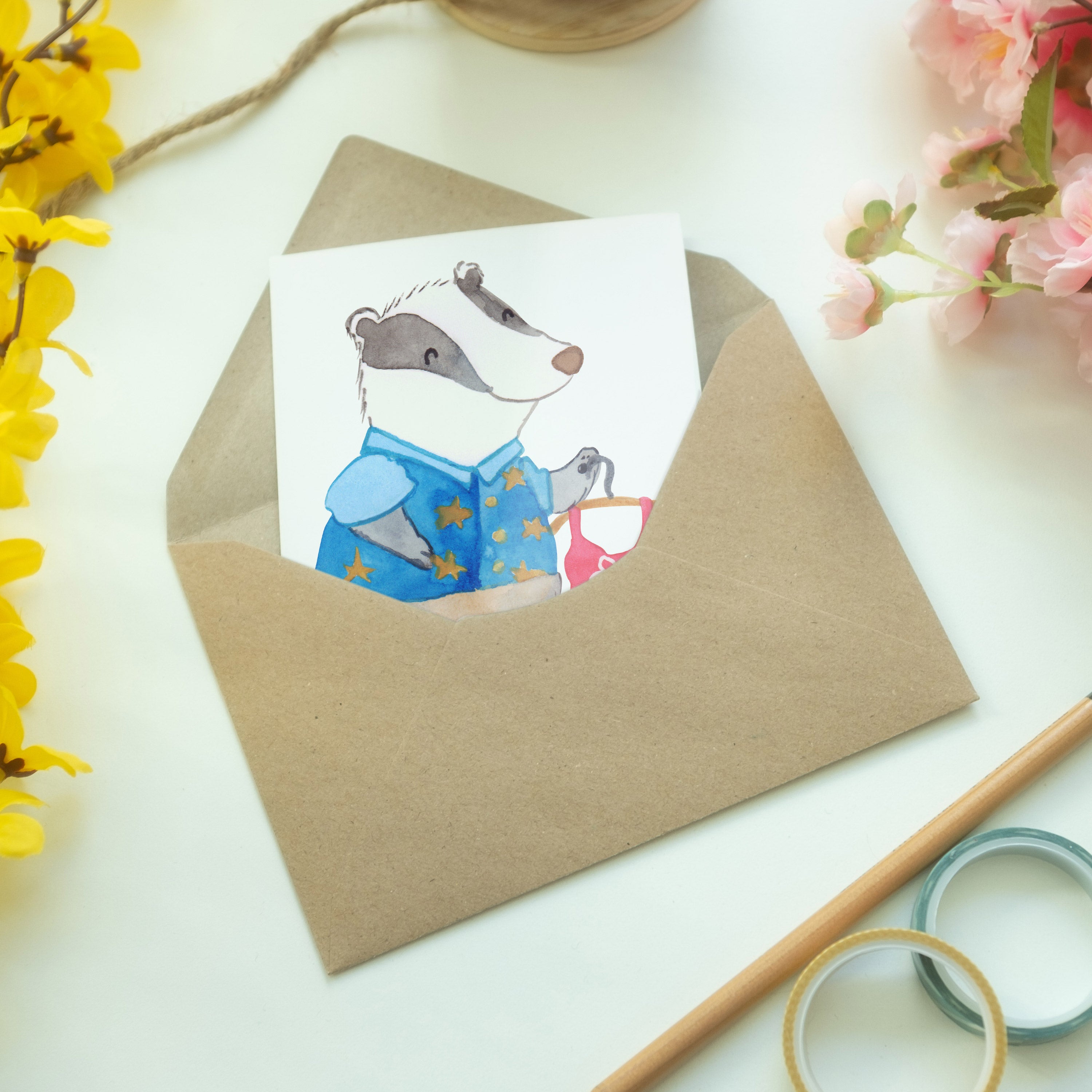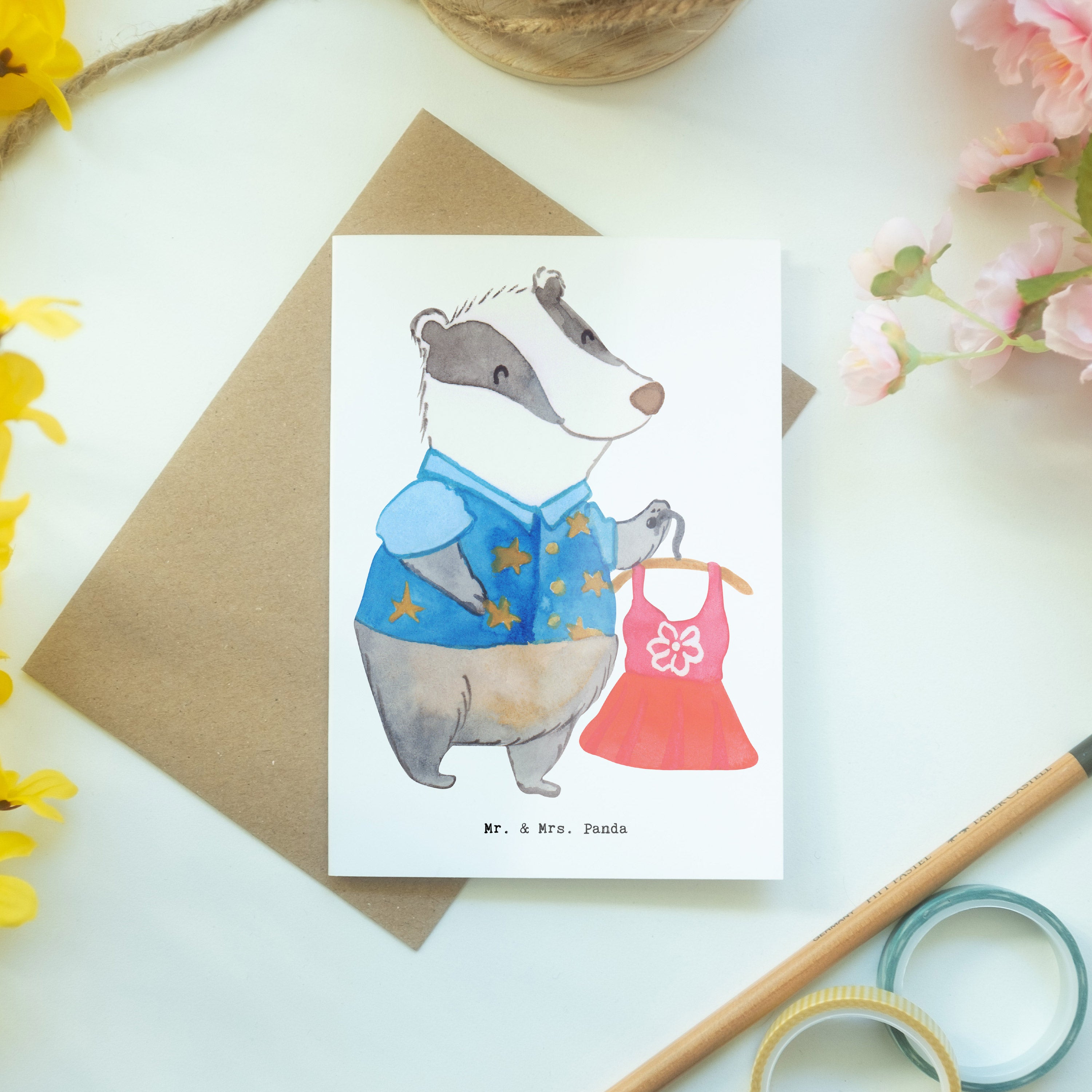 Pflegehinweis: Bewahre deine Grußkarte von Mr. & Mrs. Panda an einem trockenen Ort auf, um die Langlebigkeit und Schönheit des Designs zu garantieren.