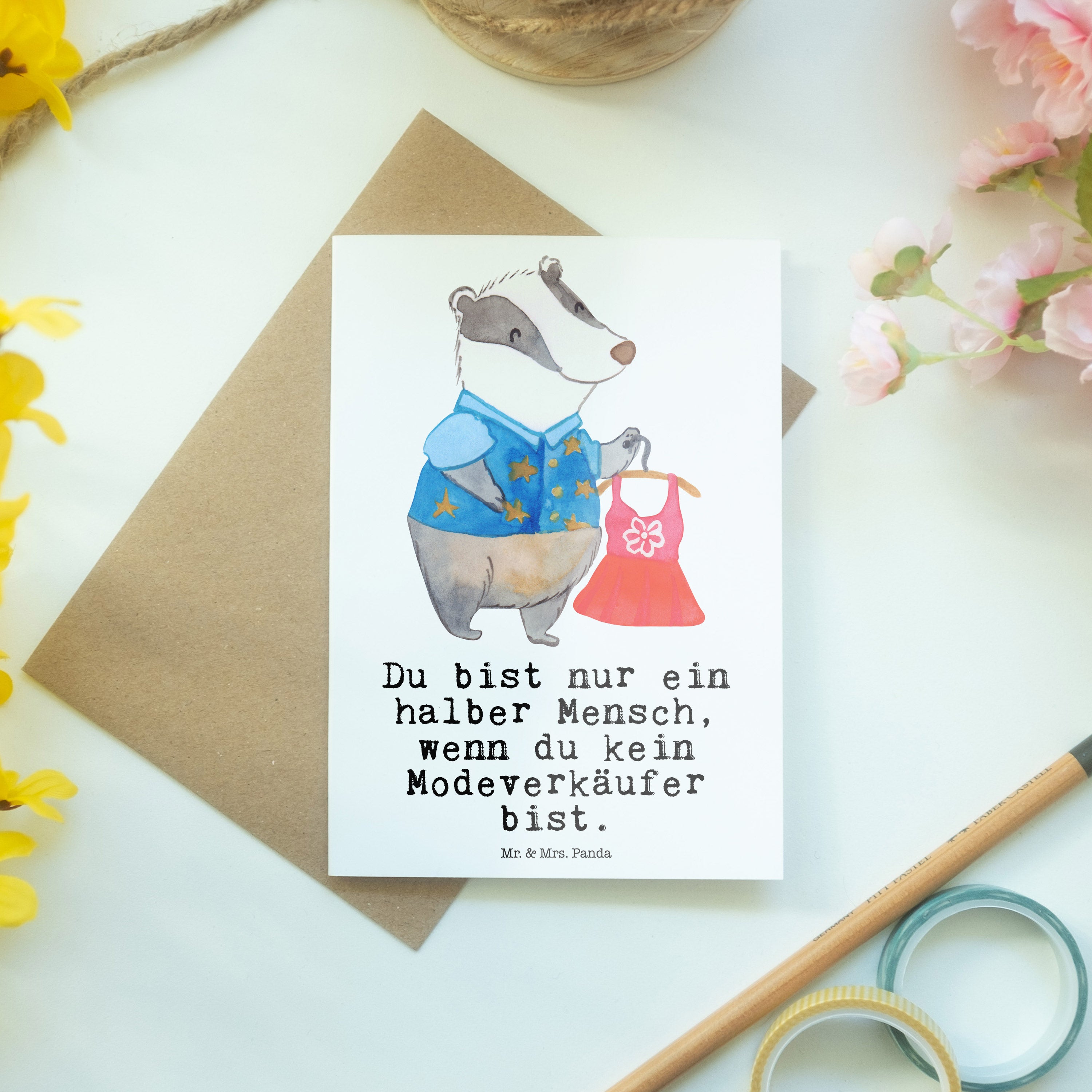 Entdecke die Magie individueller Grüße mit der exklusiven Grußkarte von Mr. & Mrs. Panda. Diese Klappkarte, bedruckt mit liebevollen Sprüchen und süßen Motiven, wird dein persönlicher Botschafter für Zuneigung und Freude. Das Format von 148 mm x 105 mm bietet ausreichend Platz für deine individuellen Worte, während der hochwertige Karton und die hochglänzend veredelte Vorderseite die Karte zu einem echten Hingucker machen. Die matte Innenseite sorgt dafür, dass deine Botschaft leicht aufgetragen werden kann, und der edle Umschlag rundet das Ganze perfekt ab. Ob für Geburtstage, Hochzeiten oder einfach als Zeichen der Wertschätzung – mit dieser Karte zeigst du Gefühl und Geschmack. Die einmaligen Designs von Mr. & Mrs. Panda machen jede Karte zu etwas ganz Besonderem und unterstreichen deine persönliche Note.