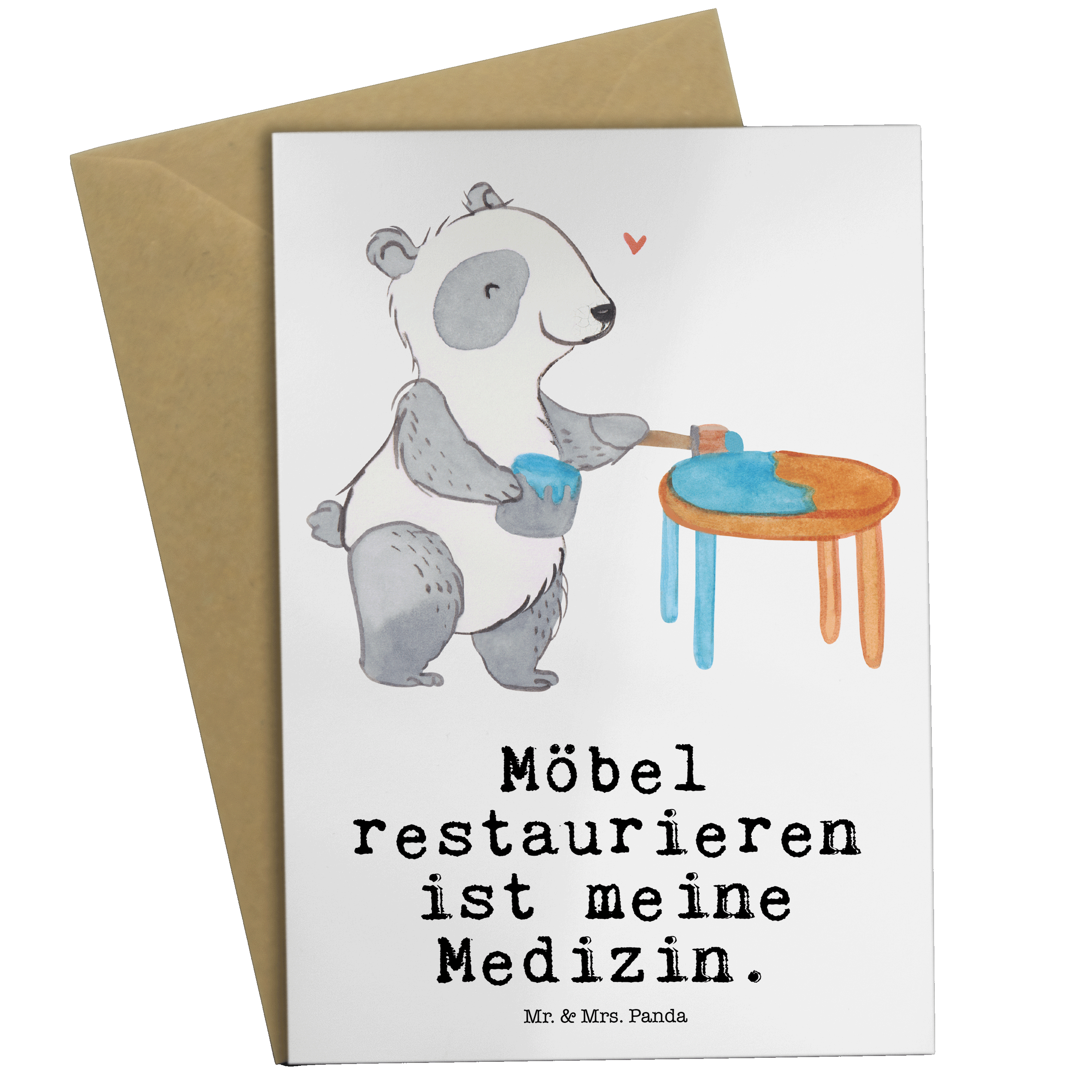 Grußkarte Panda Möbel restaurieren