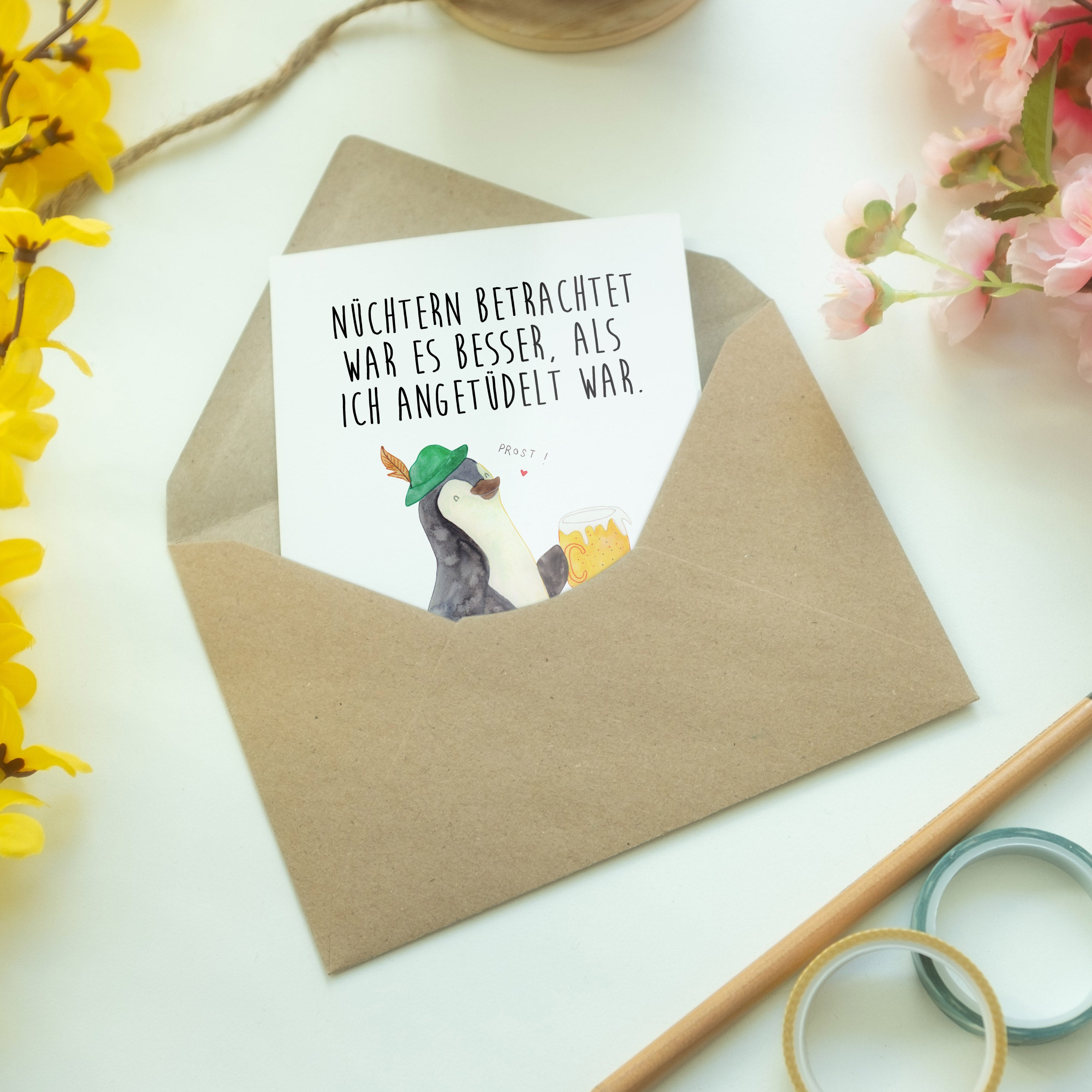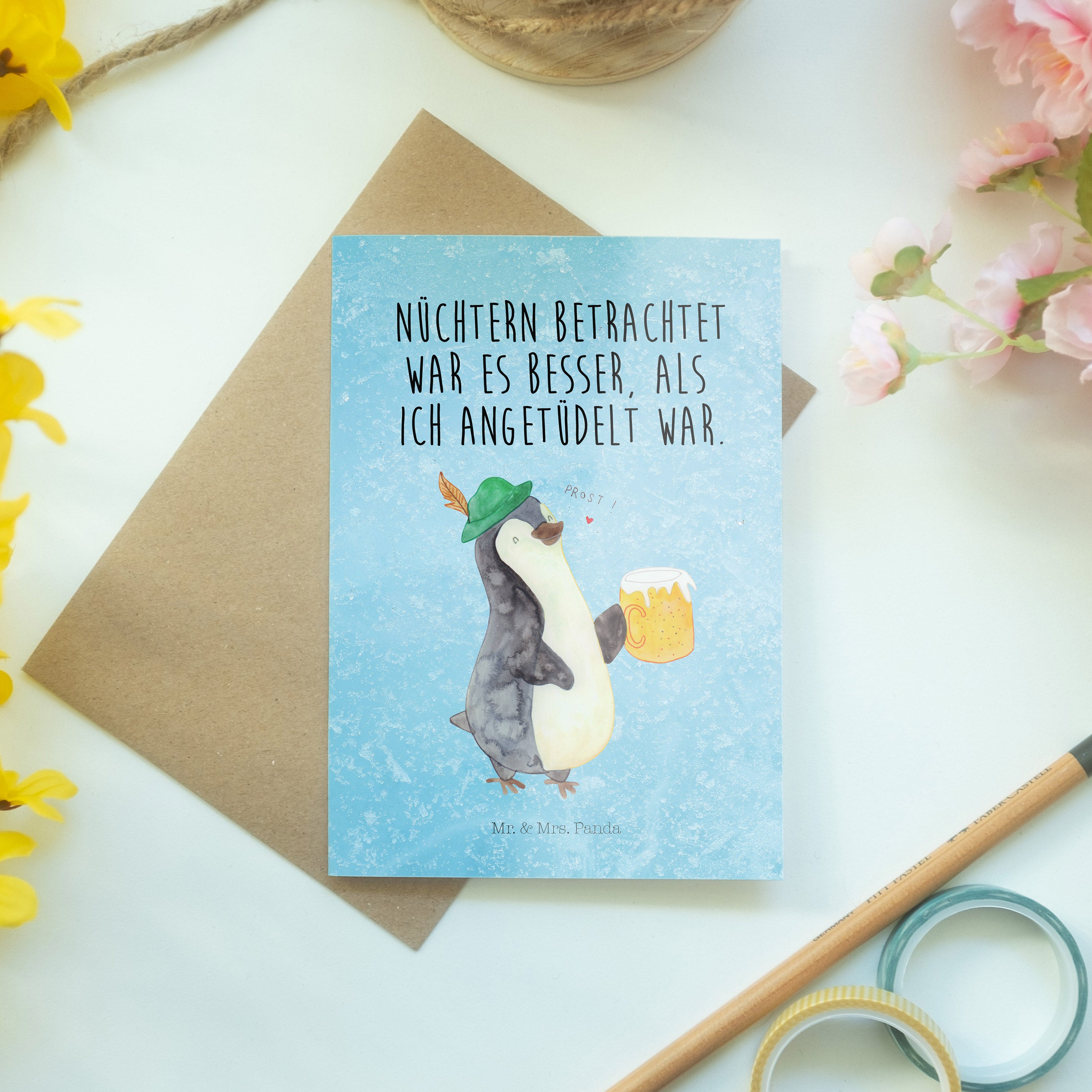 Pflegehinweis: Vermeide langanhaltende direkte Sonneneinstrahlung und Feuchtigkeit, um die Qualität deiner Mr. & Mrs. Panda Grußkarte zu schützen.