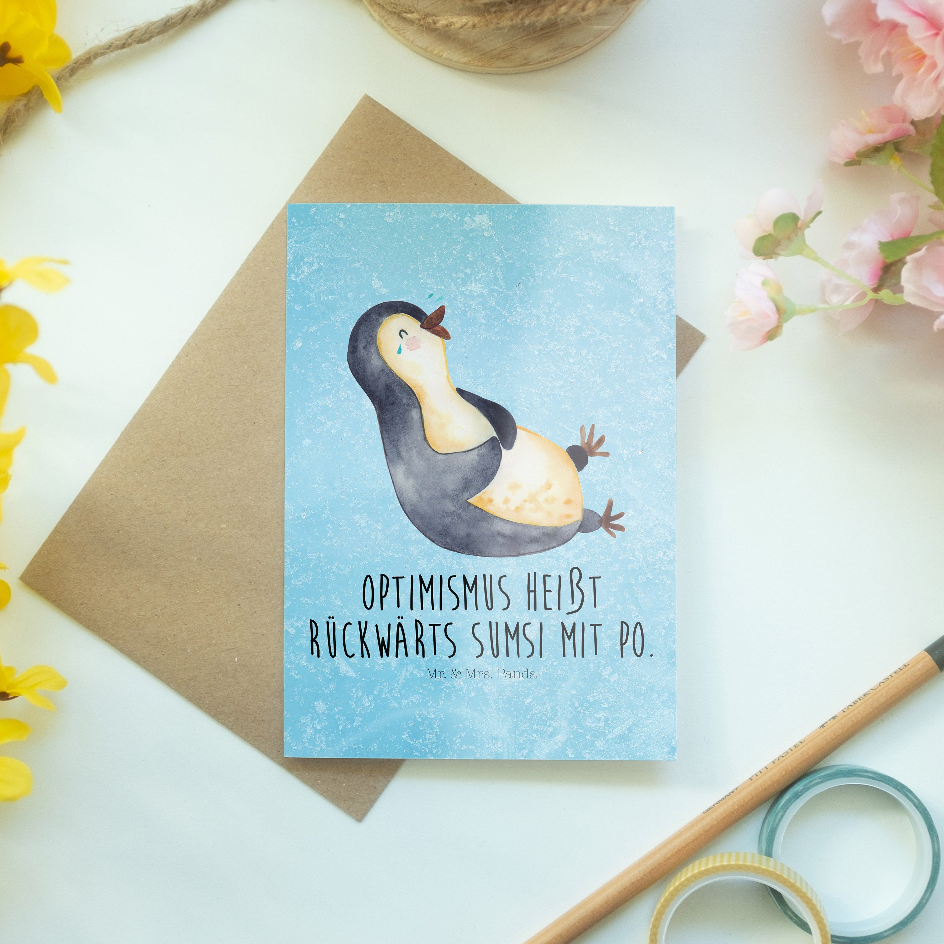 Pflegehinweis: Vermeide langanhaltende direkte Sonneneinstrahlung und Feuchtigkeit, um die Qualität deiner Mr. & Mrs. Panda Grußkarte zu schützen.