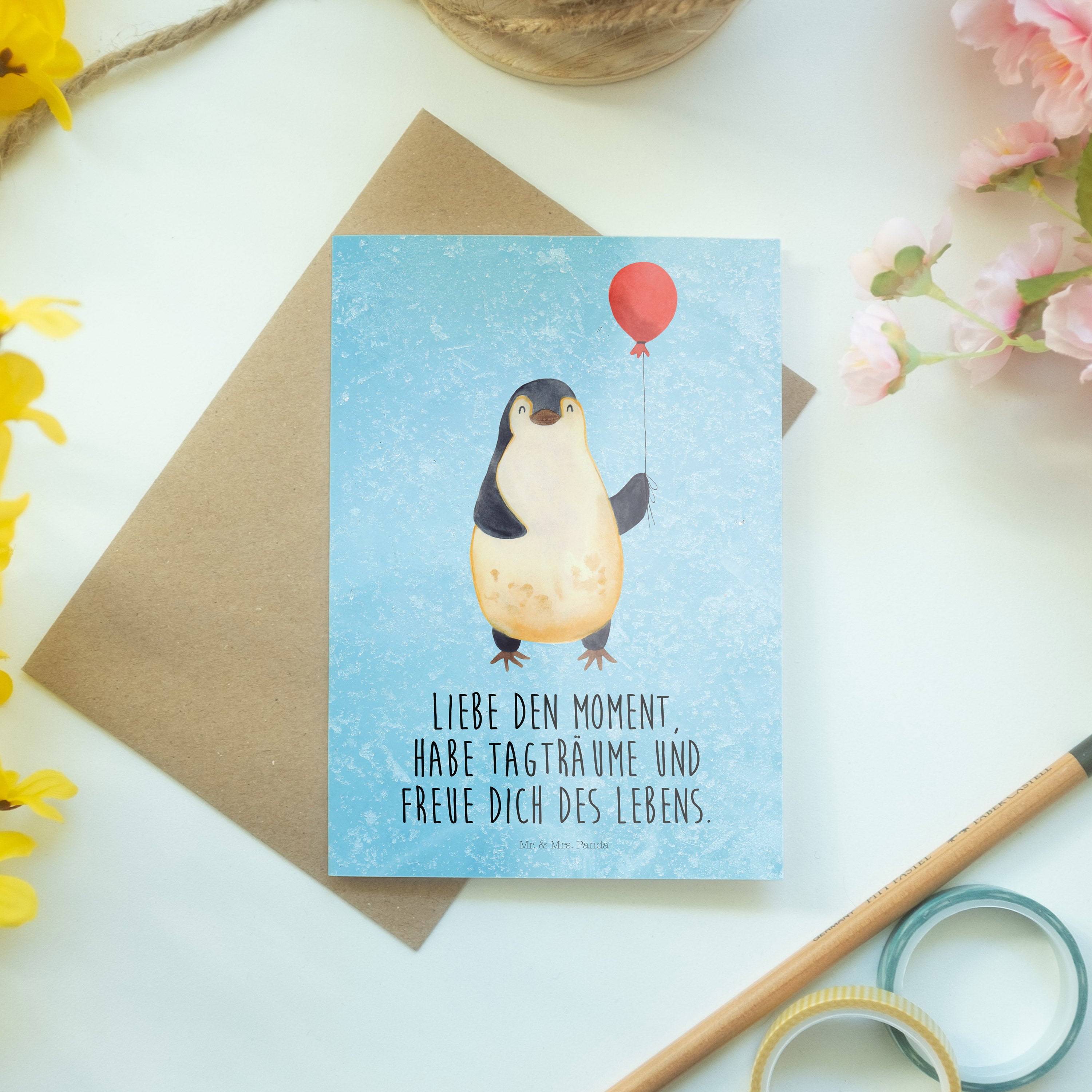 Pflegehinweis: Vermeide langanhaltende direkte Sonneneinstrahlung und Feuchtigkeit, um die Qualität deiner Mr. & Mrs. Panda Grußkarte zu schützen.