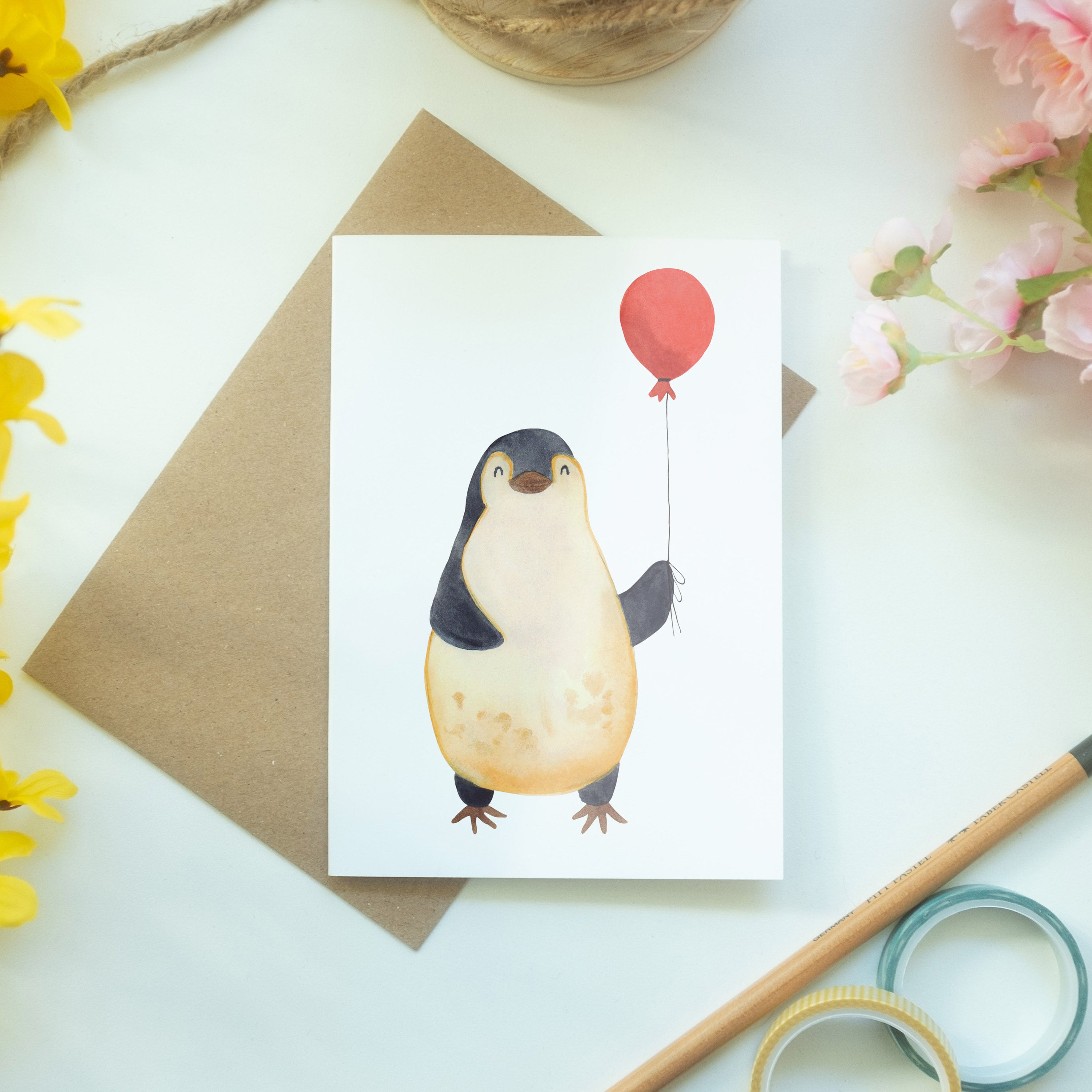 Grußkarte Pinguin Luftballon