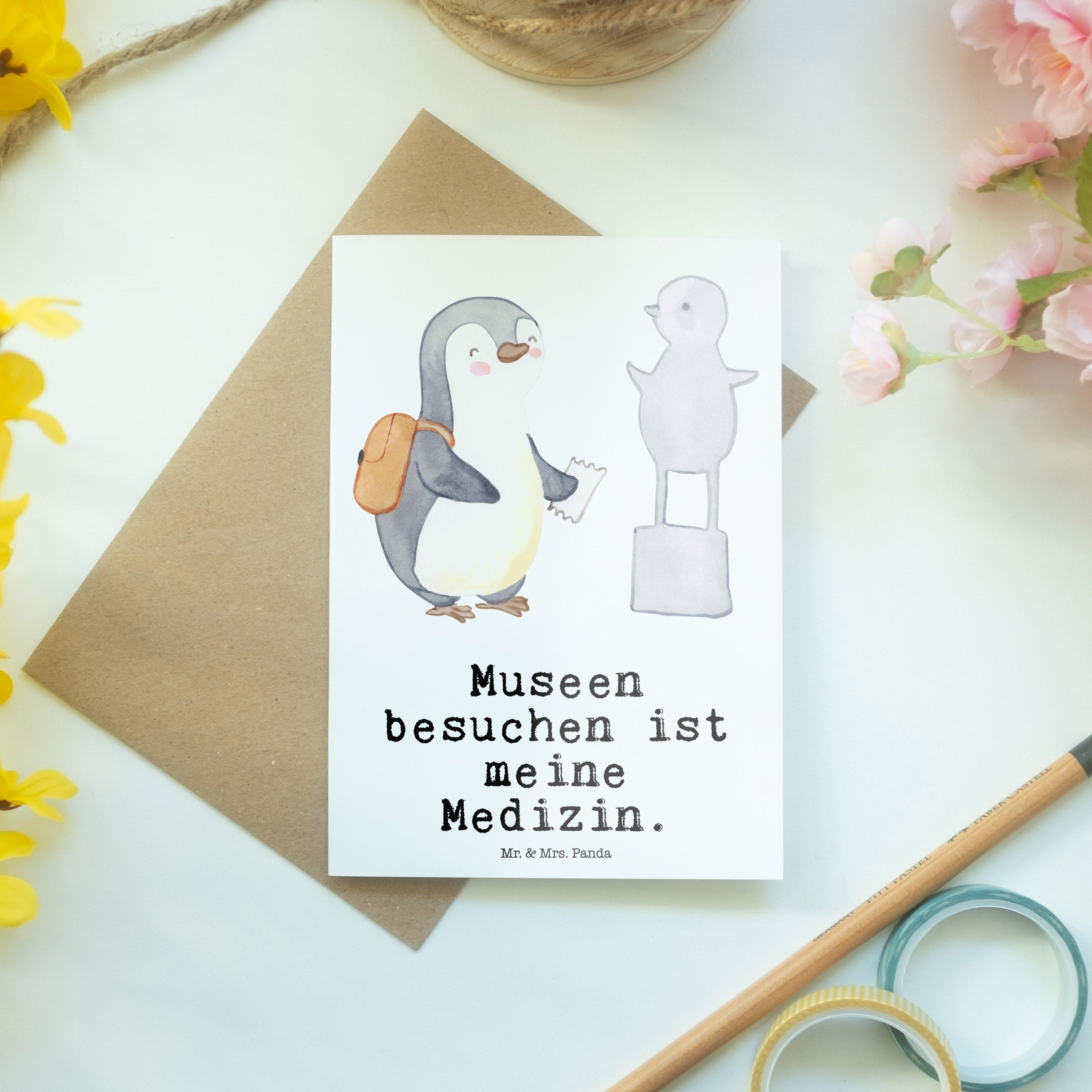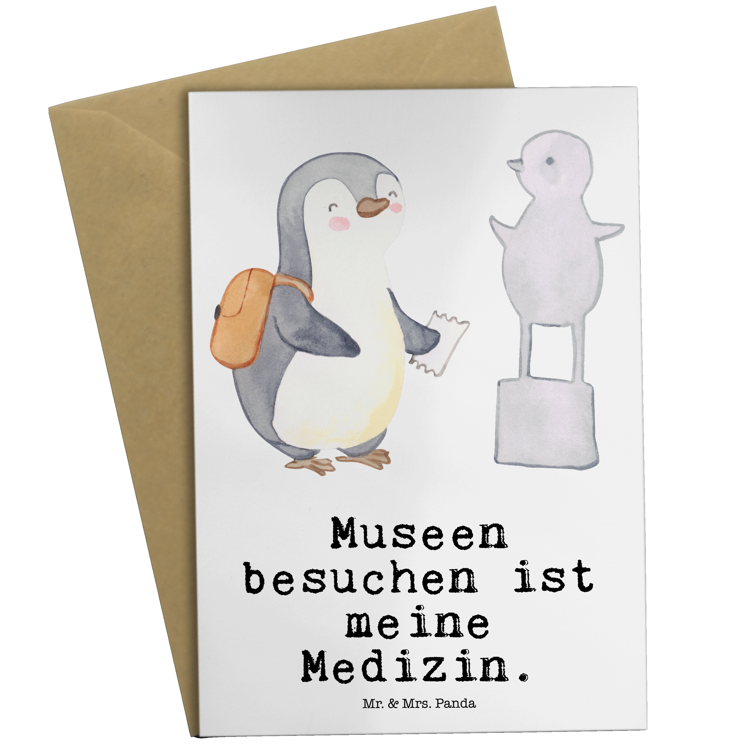 Grußkarte Pinguin Museum besuchen