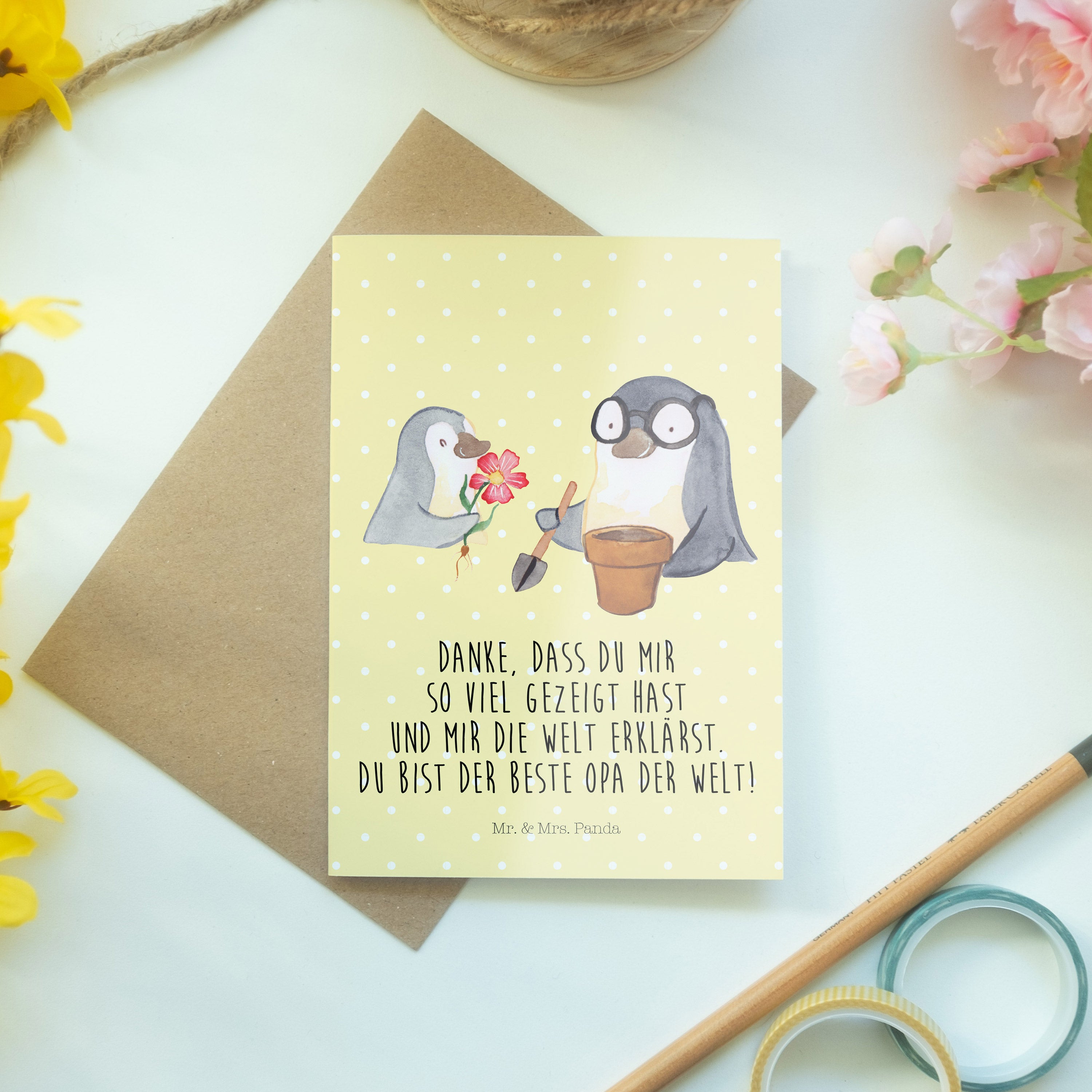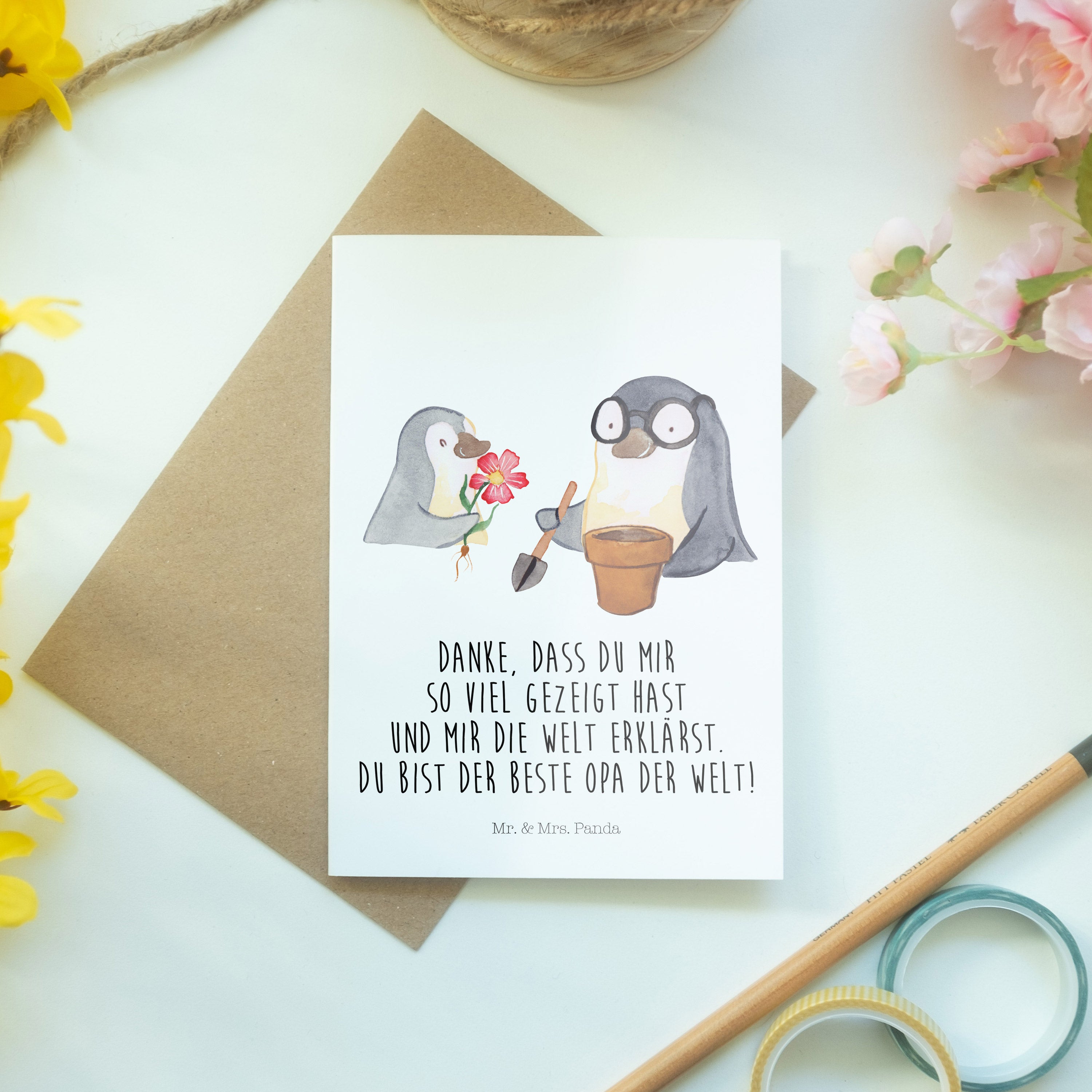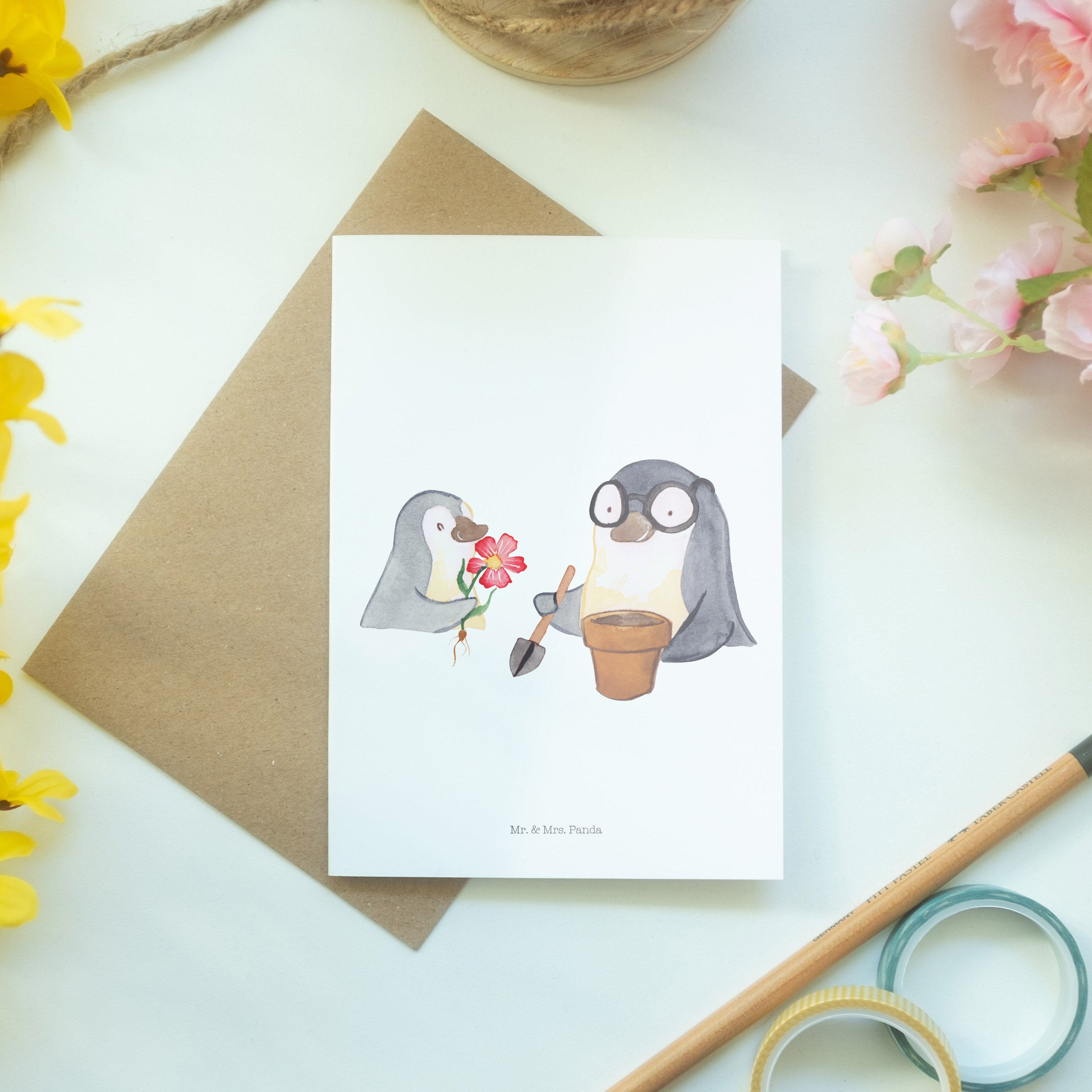 Pflegehinweis: Vermeide langanhaltende direkte Sonneneinstrahlung und Feuchtigkeit, um die Qualität deiner Mr. & Mrs. Panda Grußkarte zu schützen.