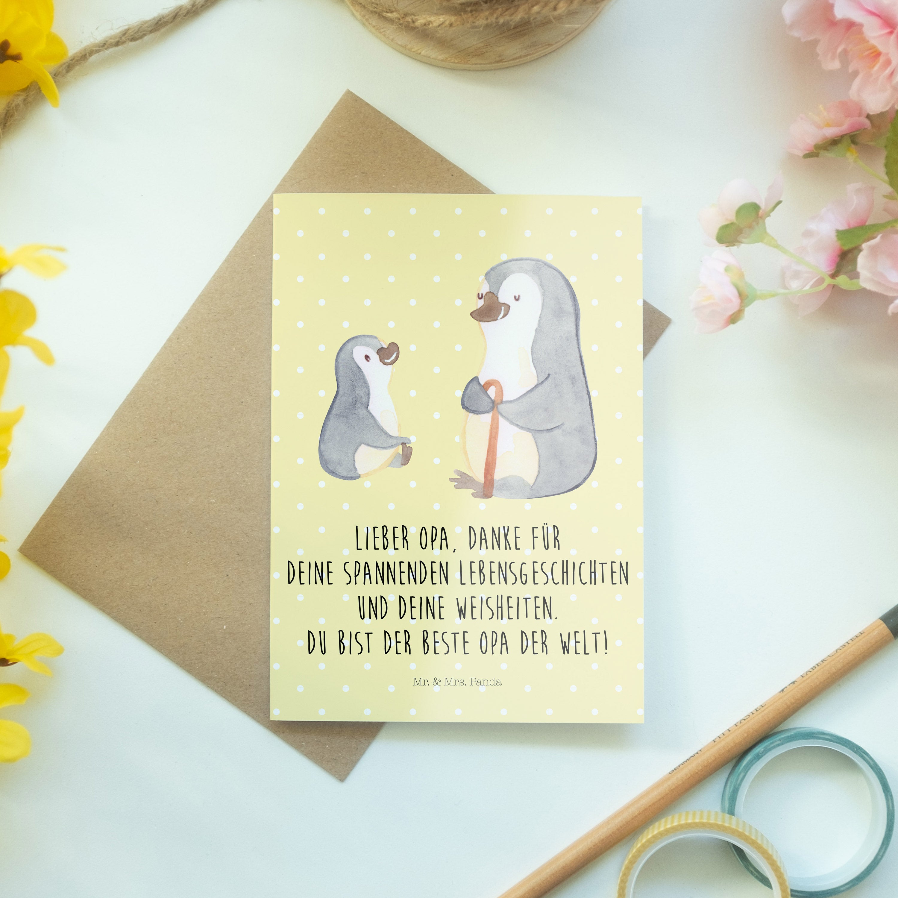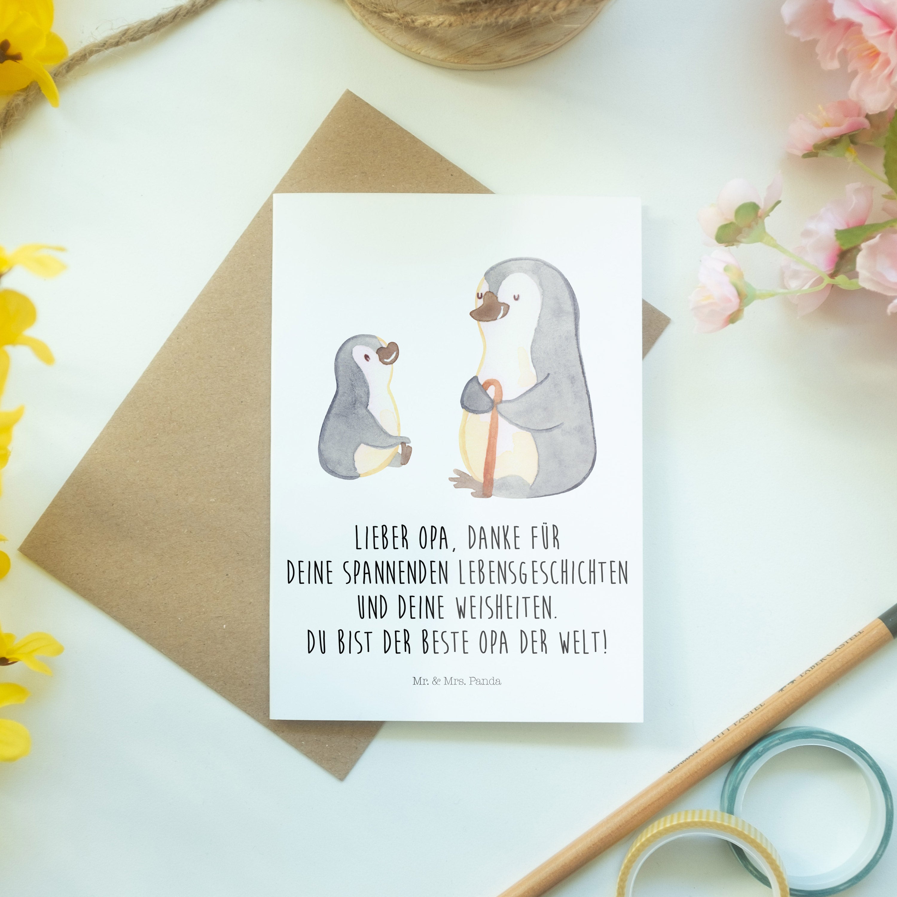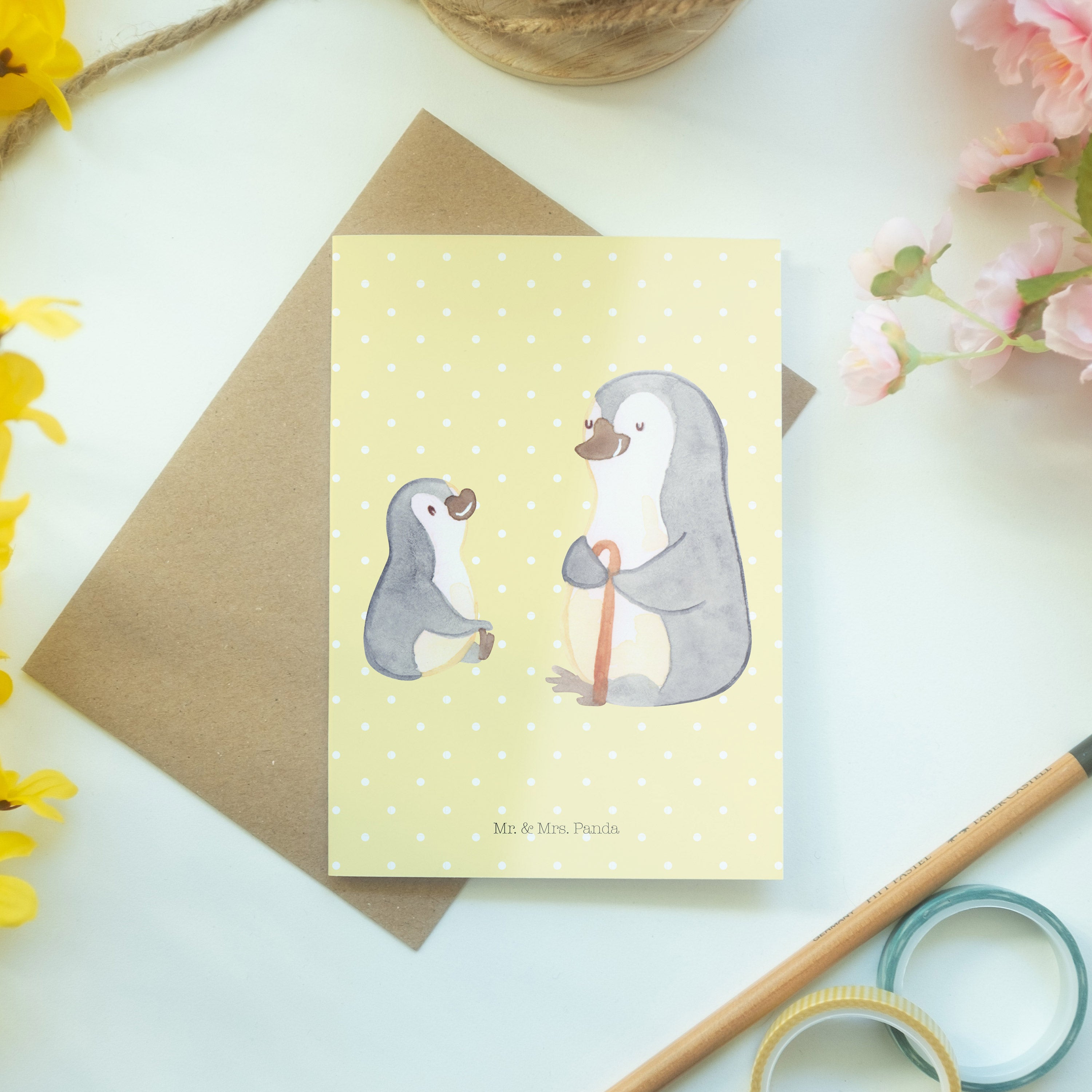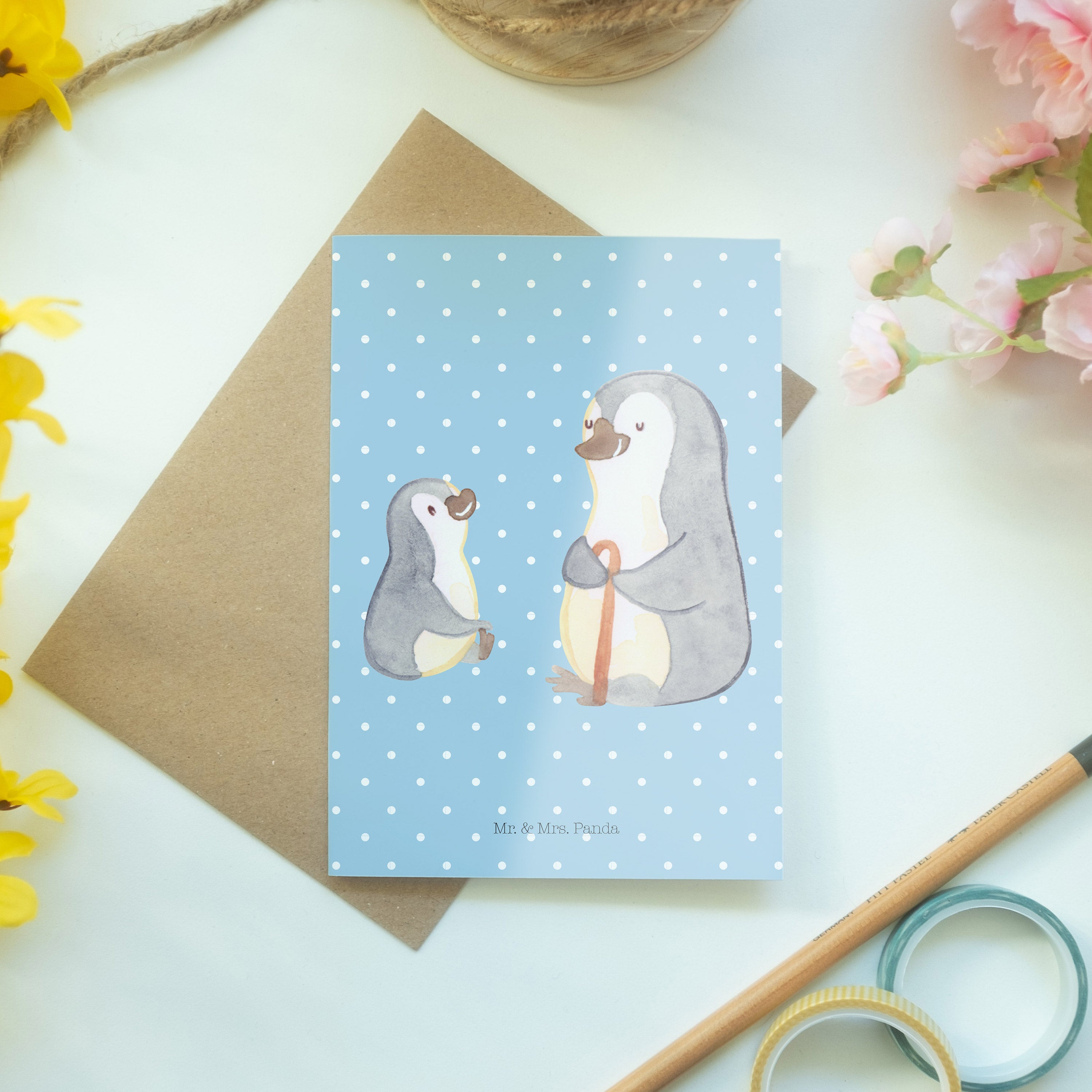 Pflegehinweis: Vermeide langanhaltende direkte Sonneneinstrahlung und Feuchtigkeit, um die Qualität deiner Mr. & Mrs. Panda Grußkarte zu schützen.