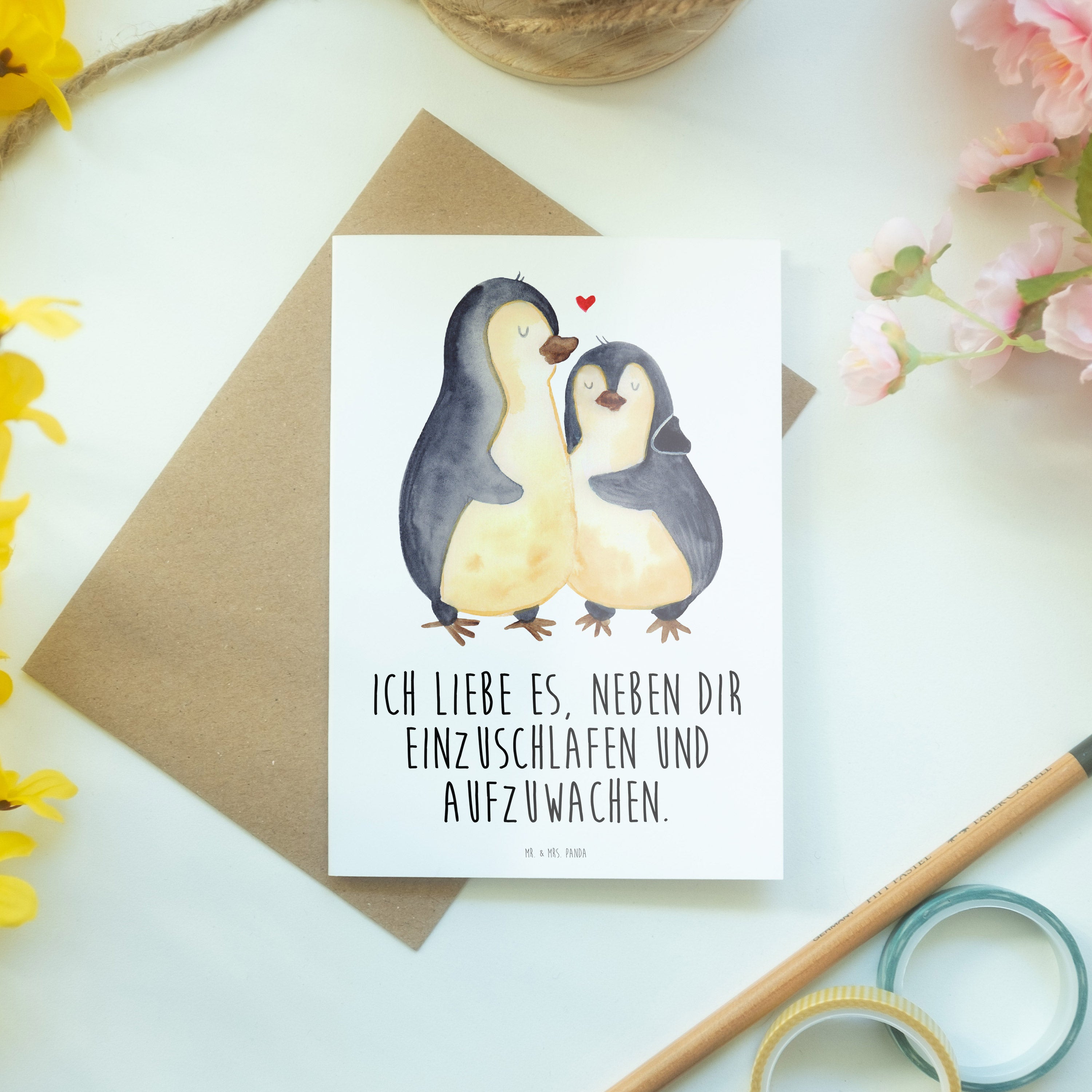 Pflegehinweis: Um die strahlenden Farben und die hohe Qualität deiner Mr. & Mrs. Panda Klappkarte zu bewahren, halte sie fern von direktem Sonnenlicht und Feuchtigkeit.