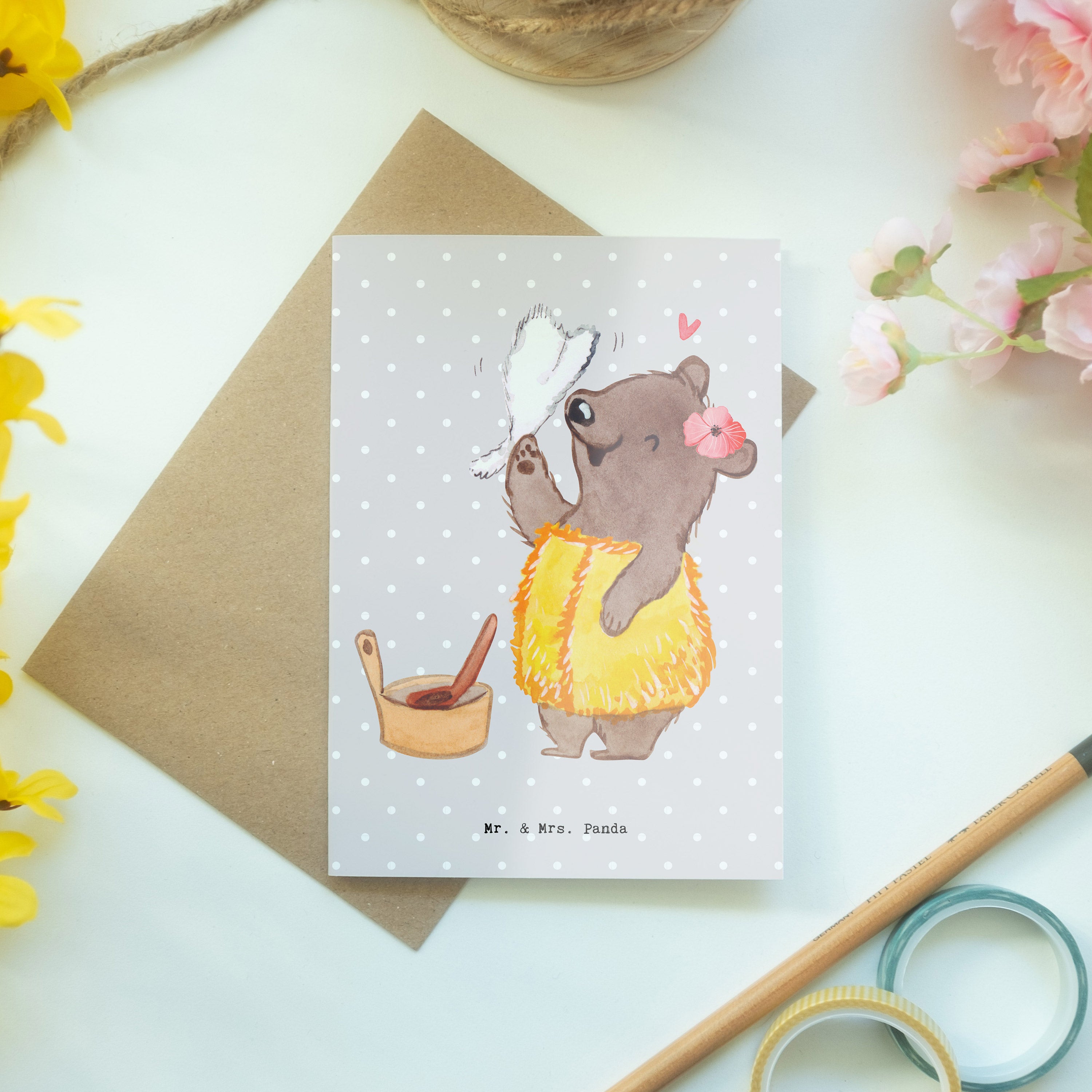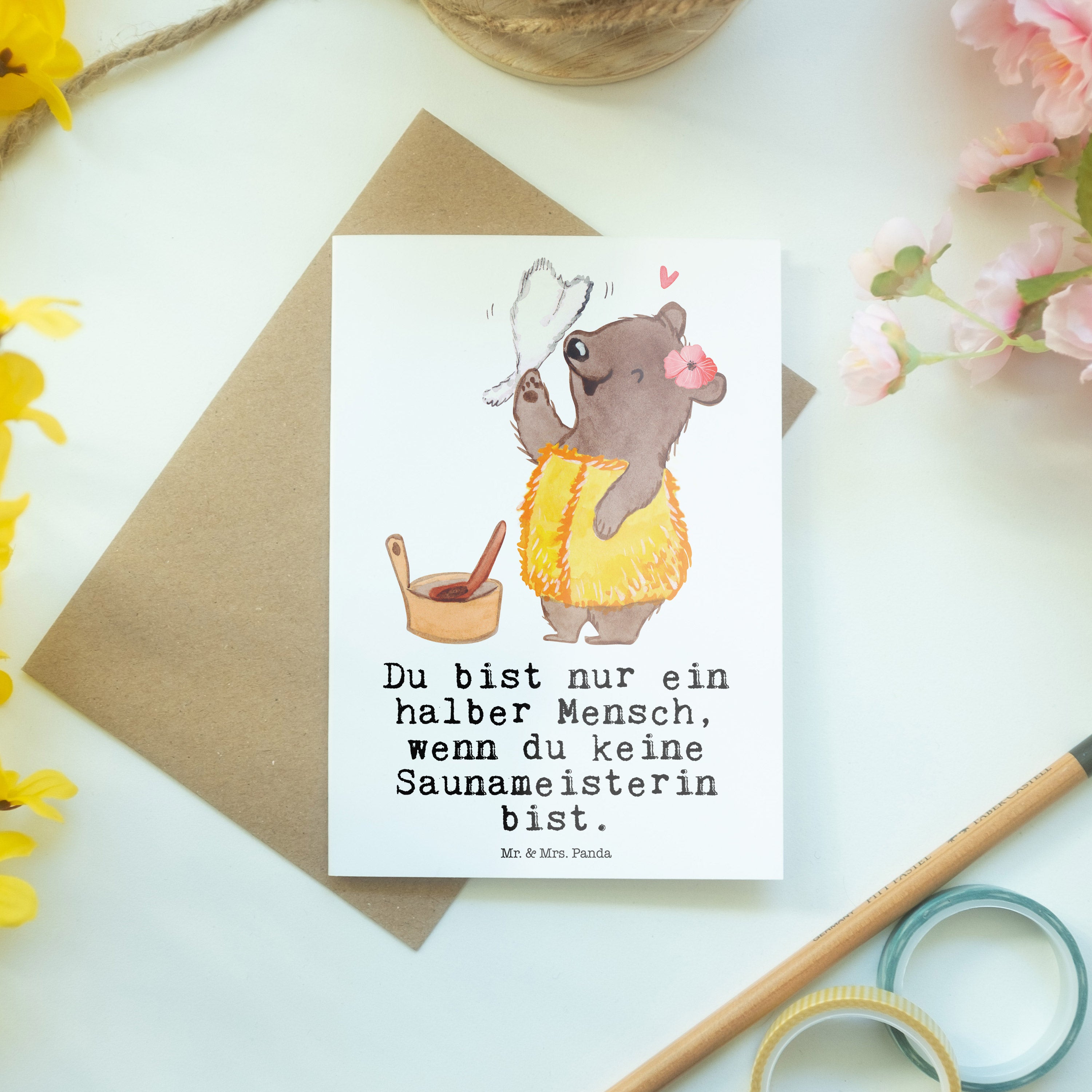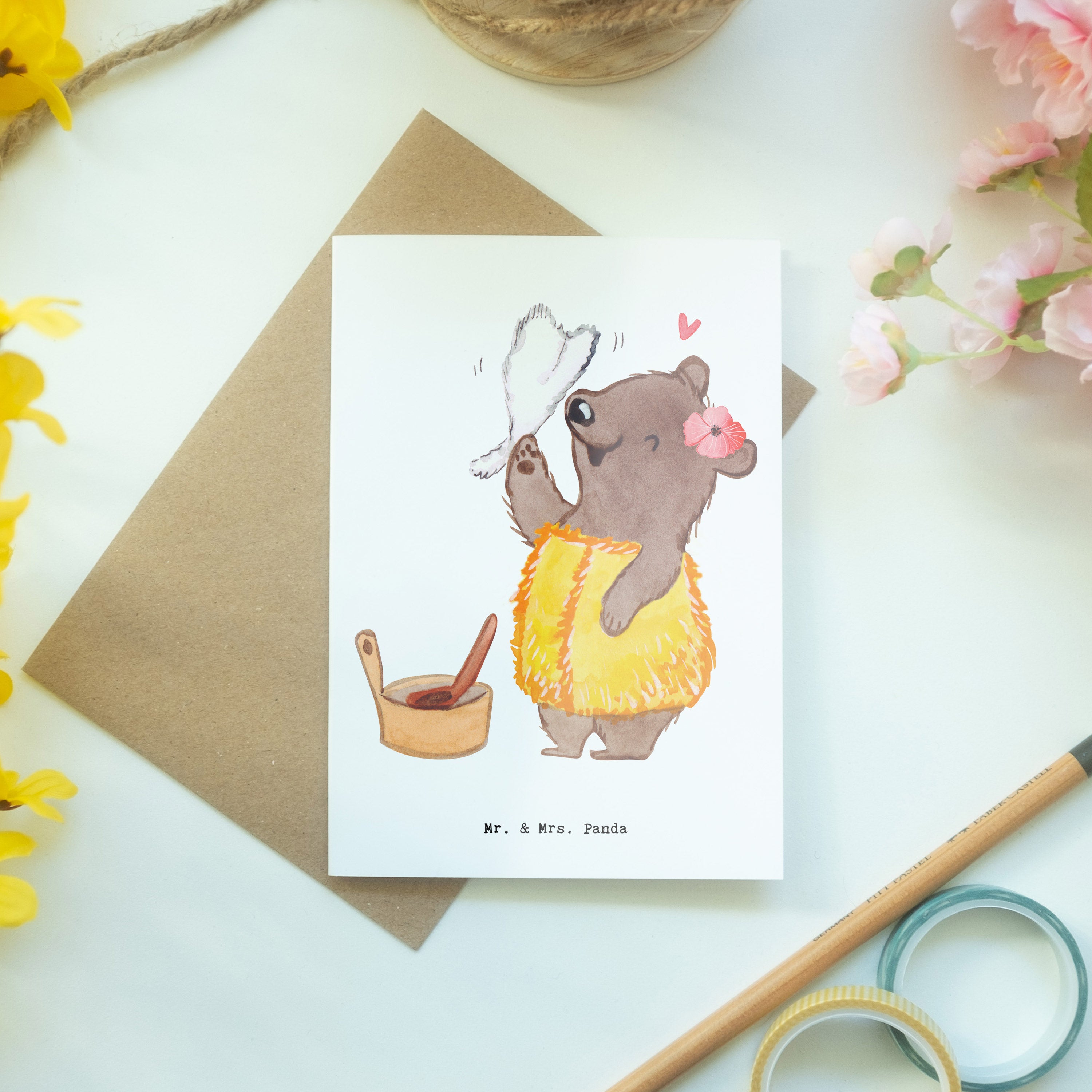Pflegehinweis: Vermeide langanhaltende direkte Sonneneinstrahlung und Feuchtigkeit, um die Qualität deiner Mr. & Mrs. Panda Grußkarte zu schützen.