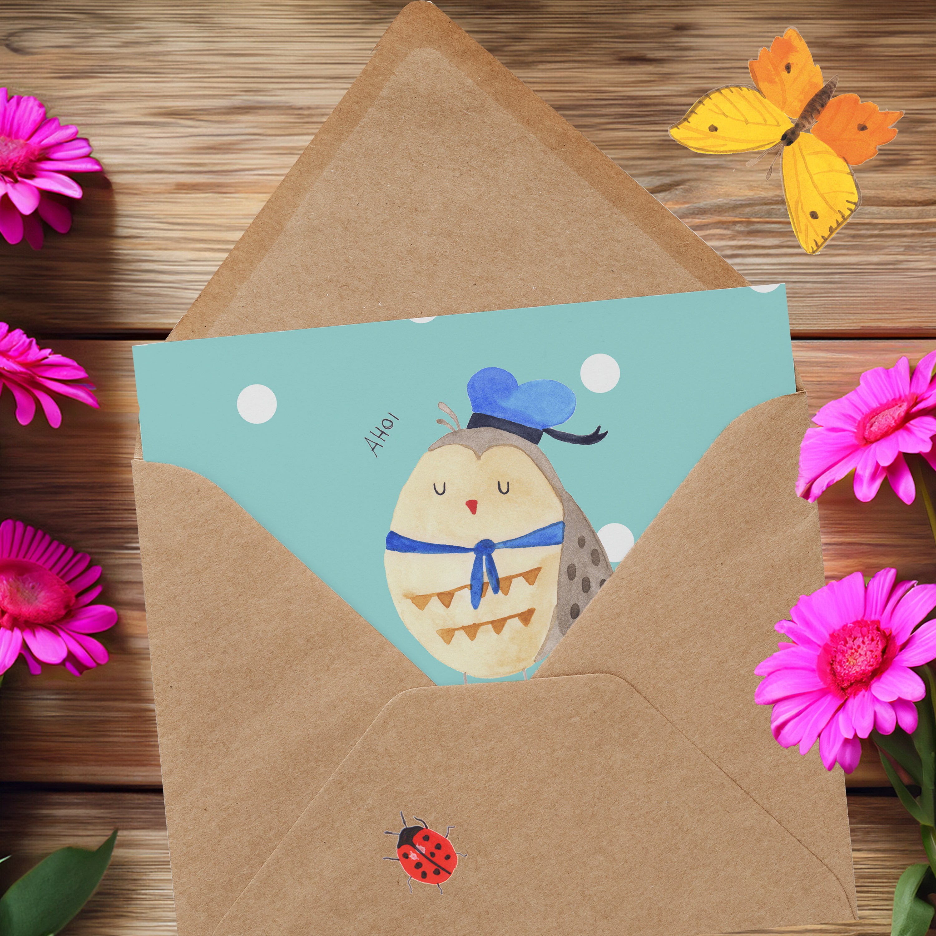 Personalisierte Deluxe Karte Eule Matrose