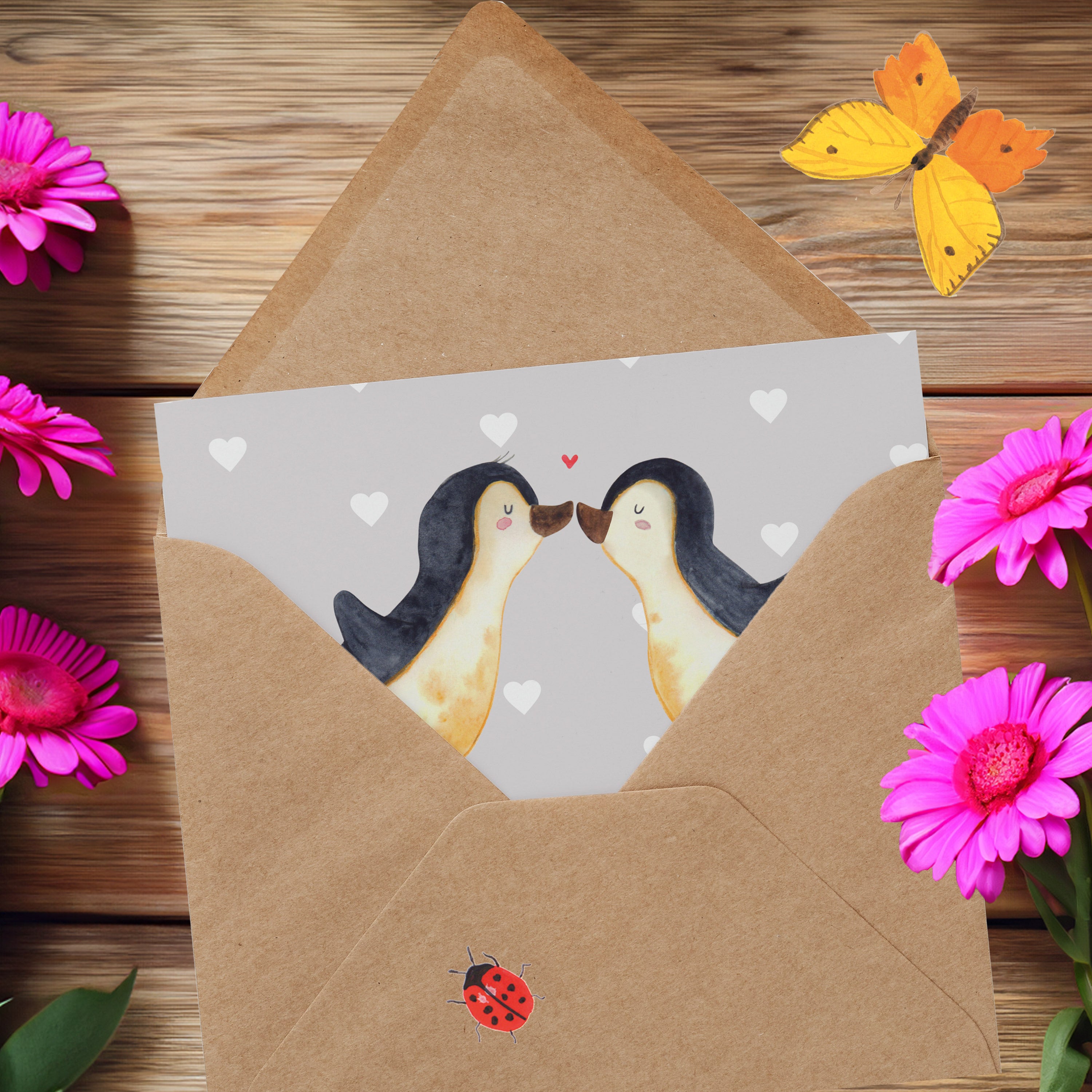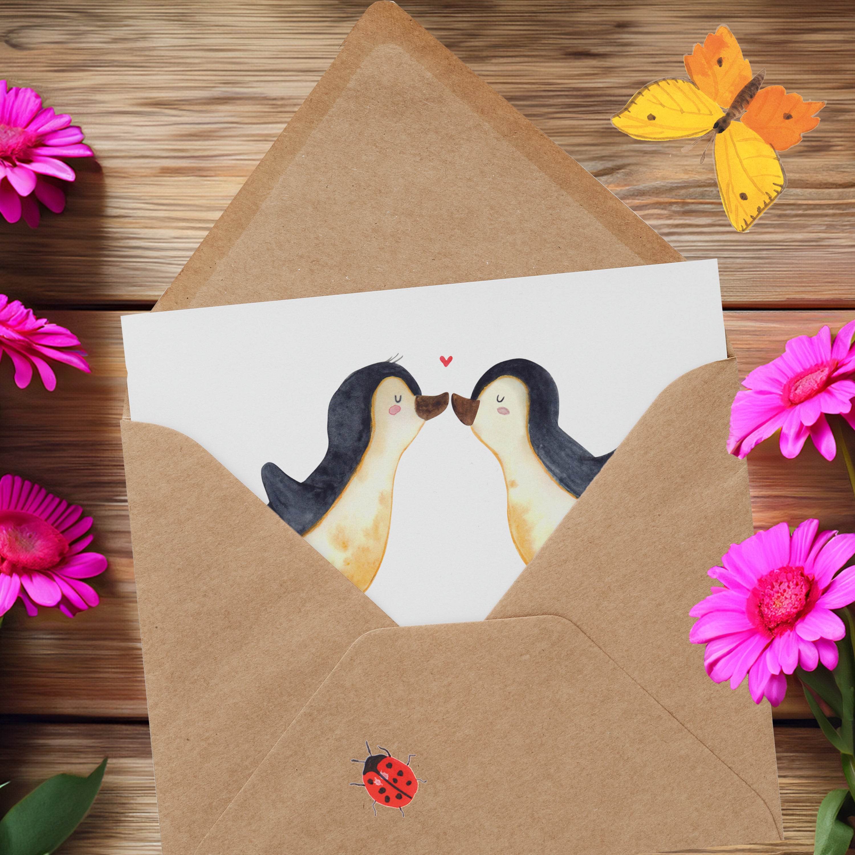 Personalisierte Deluxe Karte Pinguine Kuss