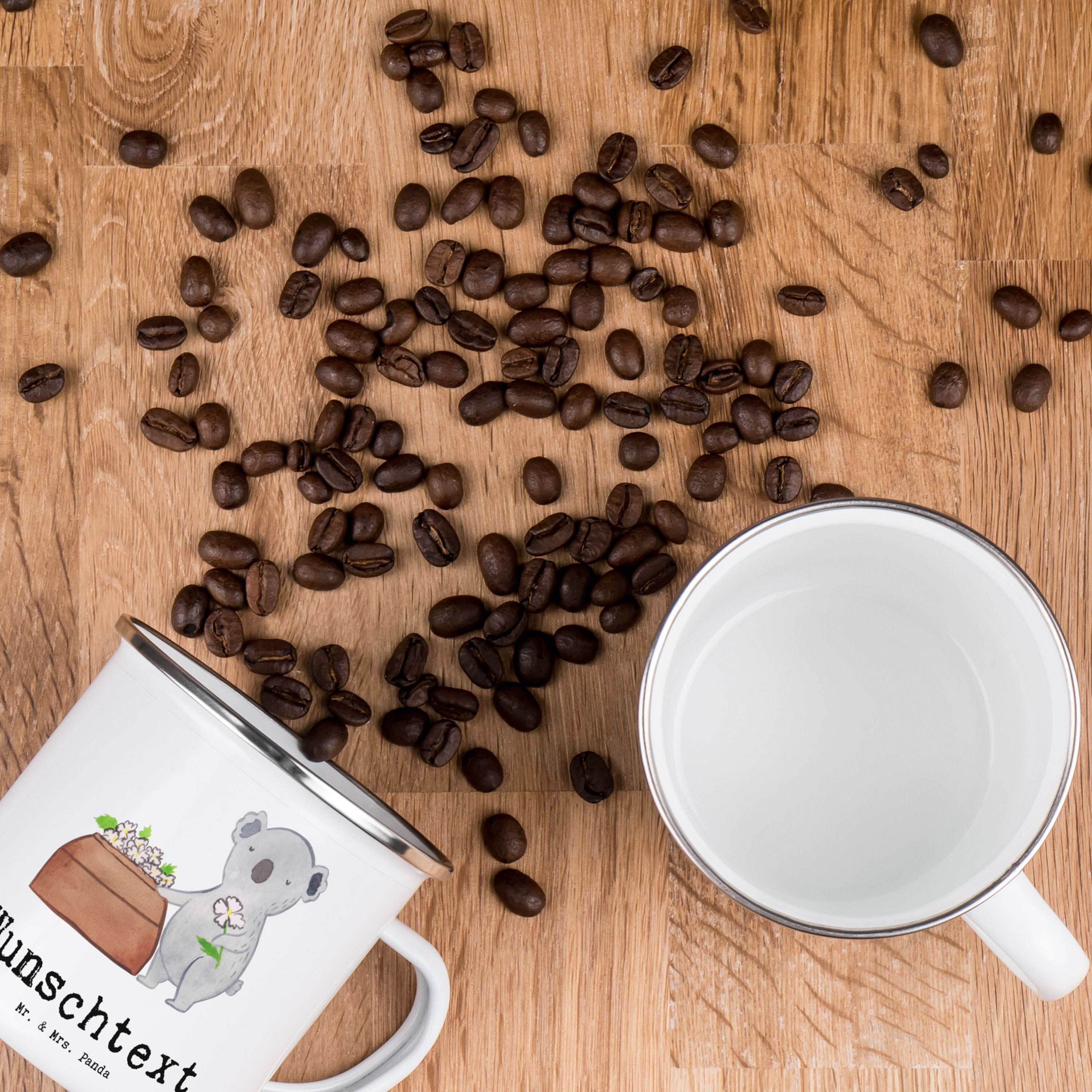 Mache Deine Pause unvergesslich mit einer personalisierten Emaille Tasse von Mr. & Mrs. Panda. Gestalte jetzt Deine eigene!