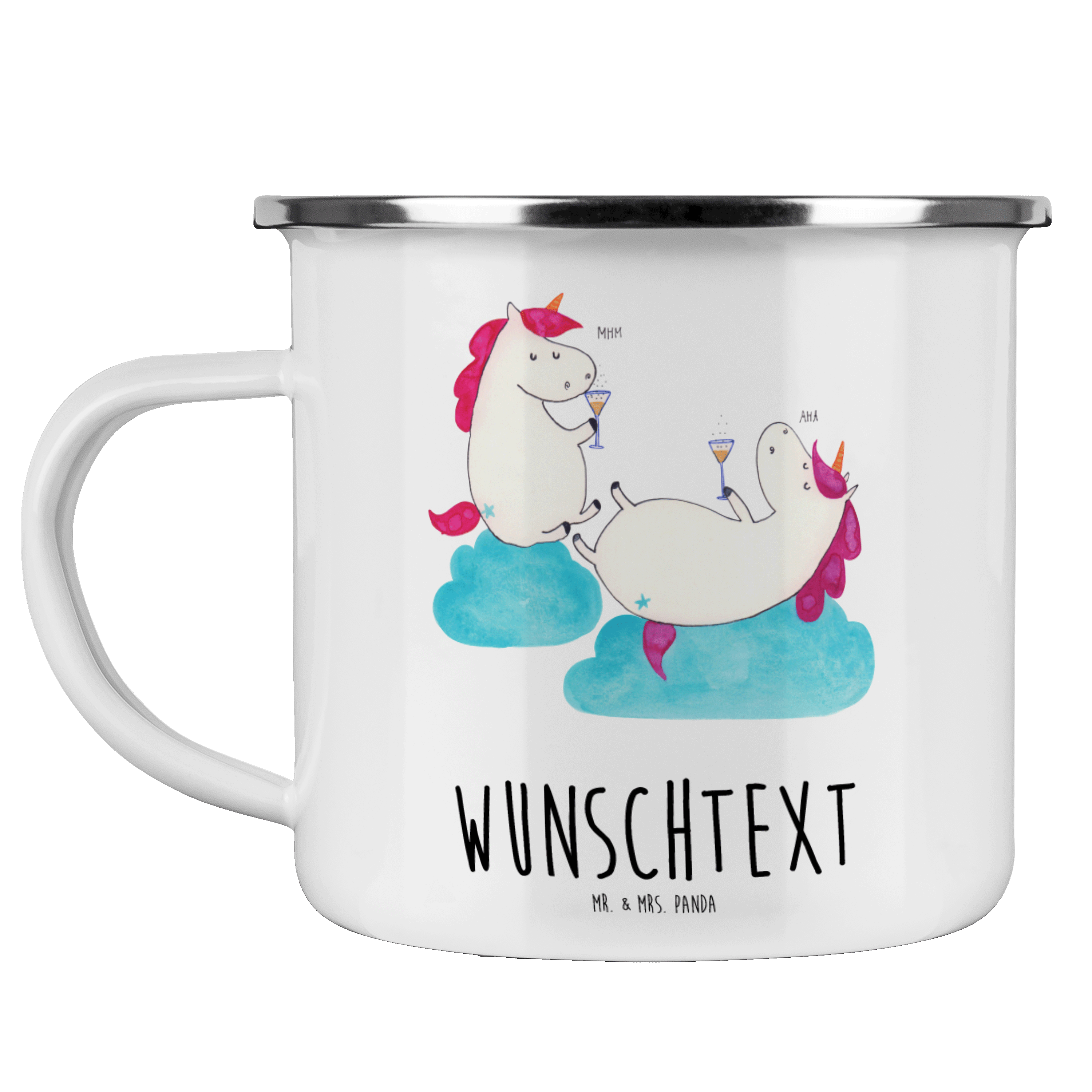Personalisierte Emaille Tasse Einhorn Sekt