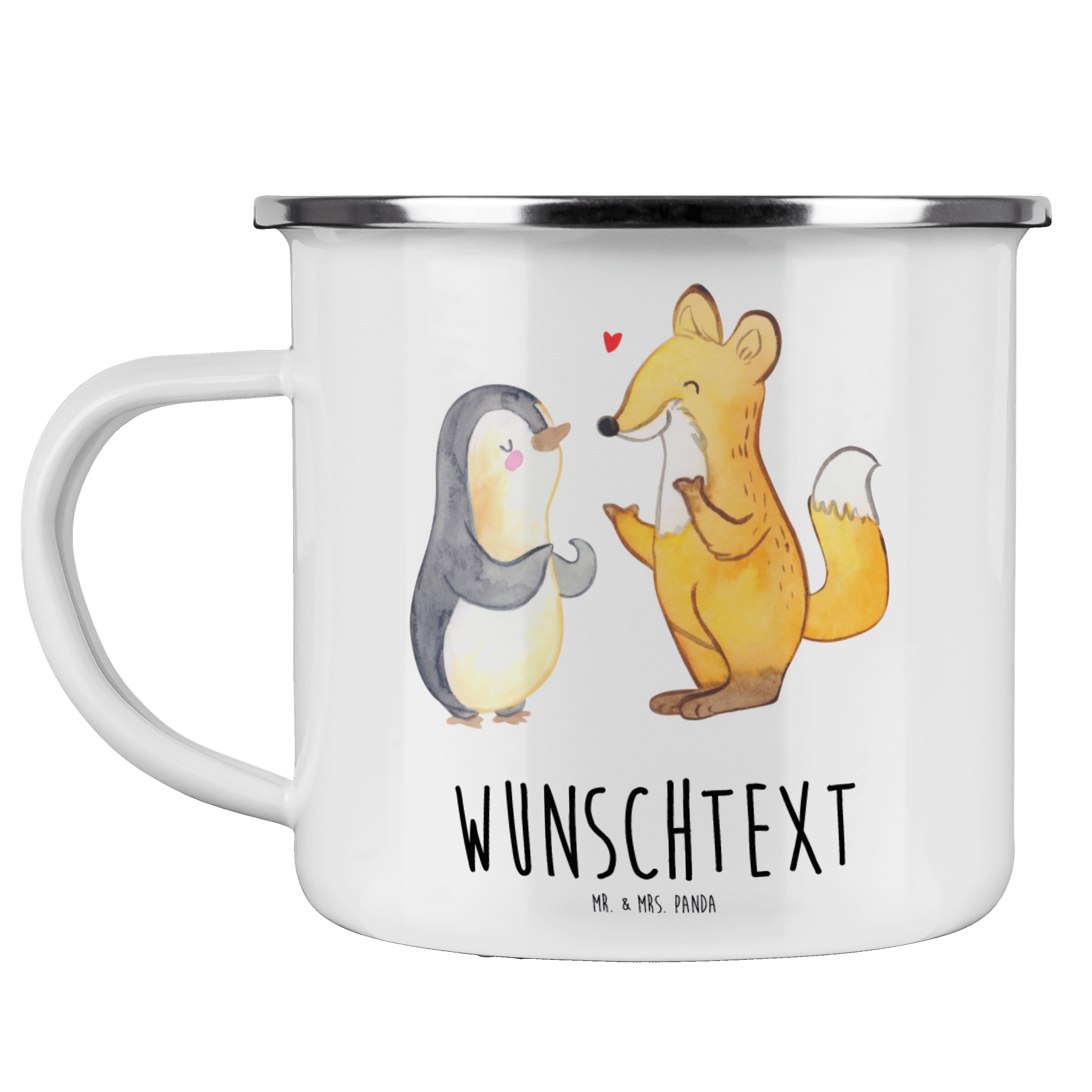 Personalisierte Emaille Tasse Fuchs & Pinguin gehörlos