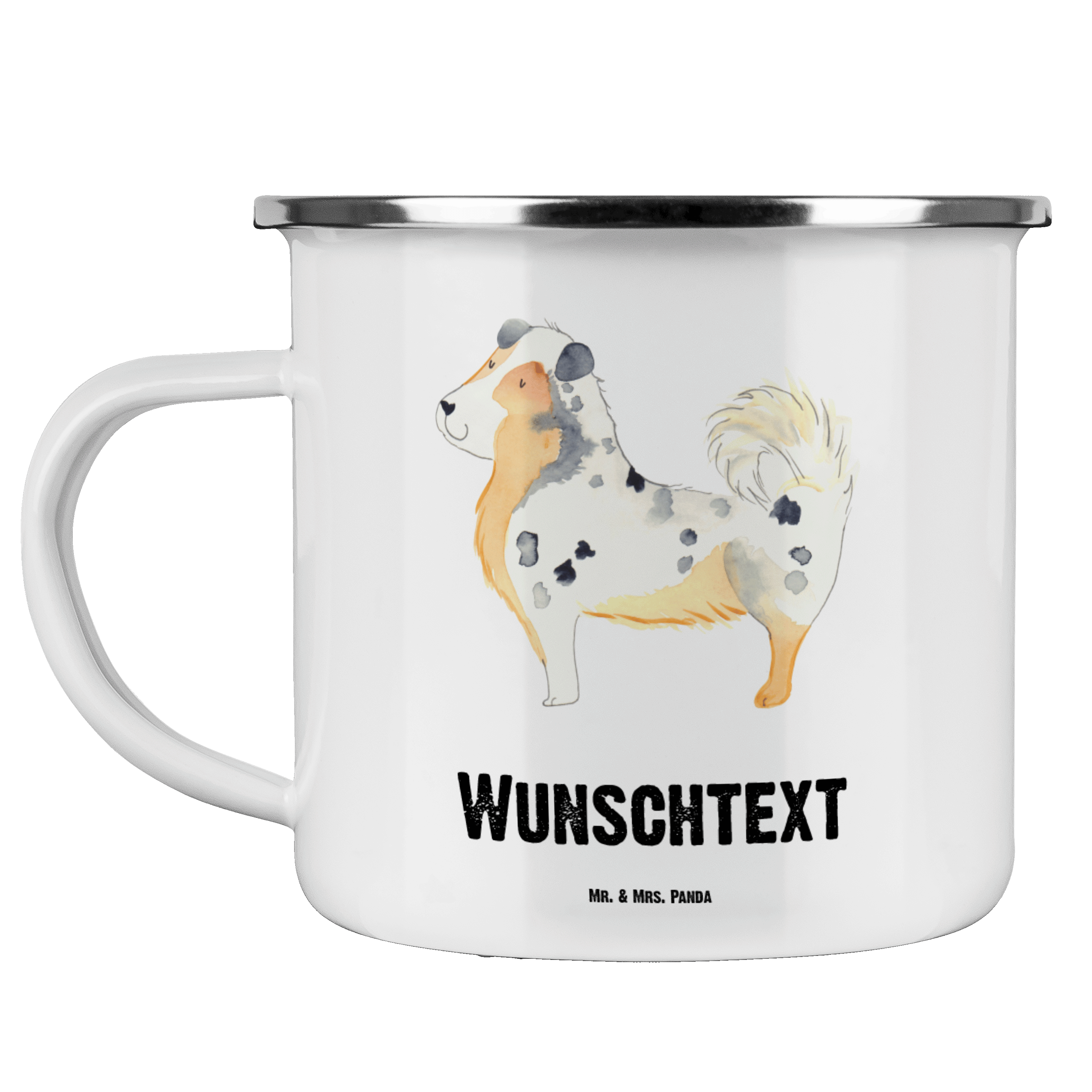 Personalisierte Emaille Tasse Hund Australien Shepherd