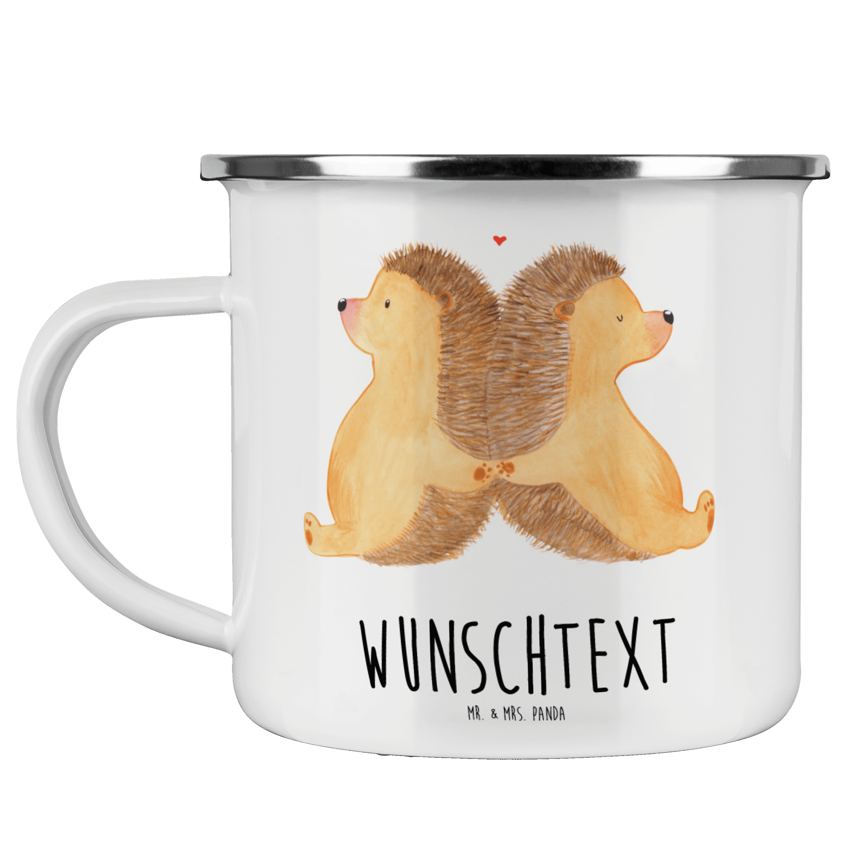 Personalisierte Emaille Tasse Igel händchenhaltend