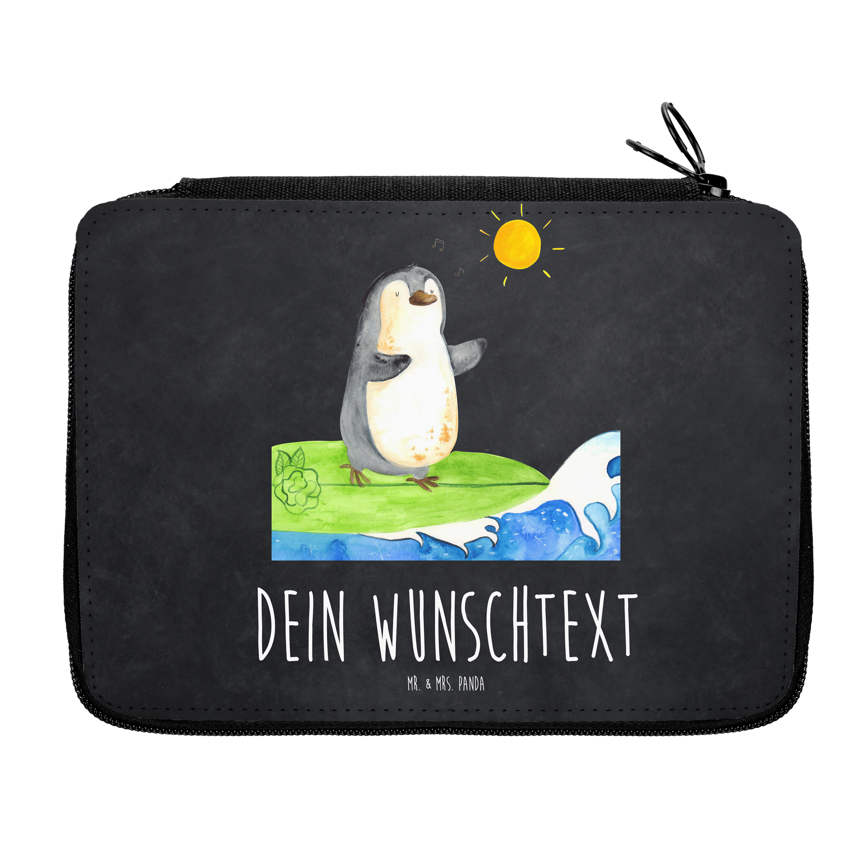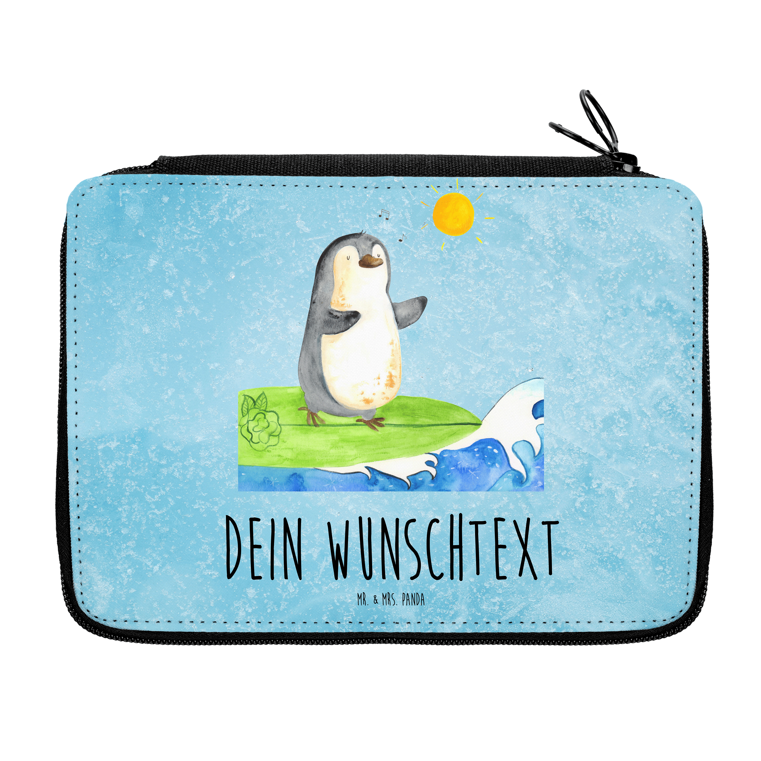 Personalisierte Federmappe Pinguin Surfer