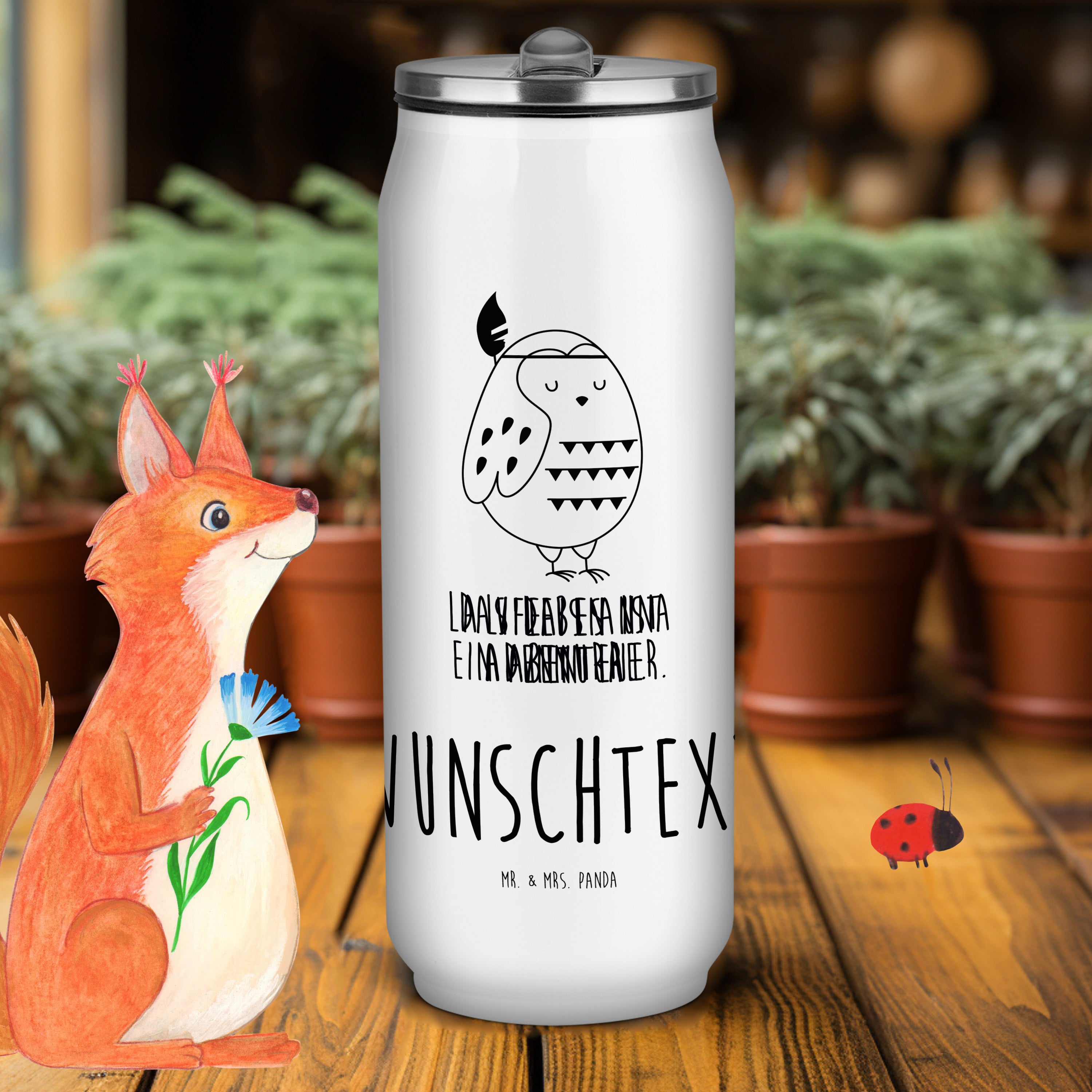 Die Mr. & Mrs. Panda personalisierte Trinkflasche in Getränkedosenform ist das Must-Have für alle, die gern unterwegs sind. Mit 190 mm Höhe, 71 mm Durchmesser und einer Füllmenge von 420 ml bietet sie ausreichend Volumen für deine Lieblingsgetränke. Der eingebaute Trinkhalm und das klappbare Mundstück erhöhen den Trinkkomfort, während der doppelwandige Edelstahl deine Getränke optimal temperiert hält. Personalisiere sie mit einem Namen oder Spruch deiner Wahl.